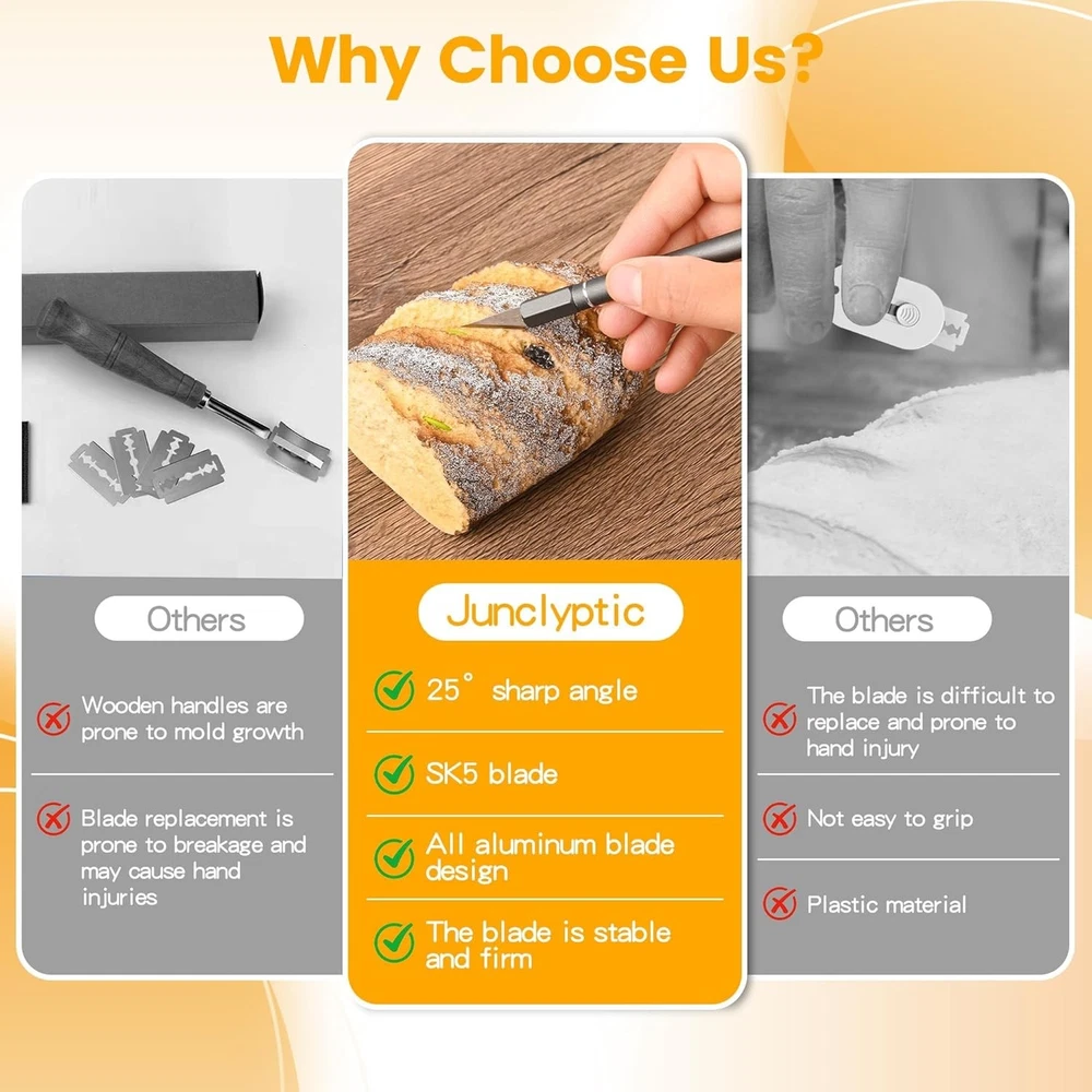 Manufacture Year: 2025 Type: Does not apply Blade Edge: unilateral Set Name: Complete Sourdough Scoring Kit Item Length: 5.4 Inches Color: Gray Material: Aluminum Blade Length: 0.9 Inches Brand: Junclyptic UPC: Does not apply Handle Material: Aluminum Customer Reviews: 4.9/5 Item Weight: 1.6 ounces Blade Color: silvery white gtin13: Does not apply Construction Type: Forged Size: 5.4 Country of Origin: United States Blade Material: High Carbon Stainless Steel Manufacturer: Junclyptic Is Dishwasher Safe: No