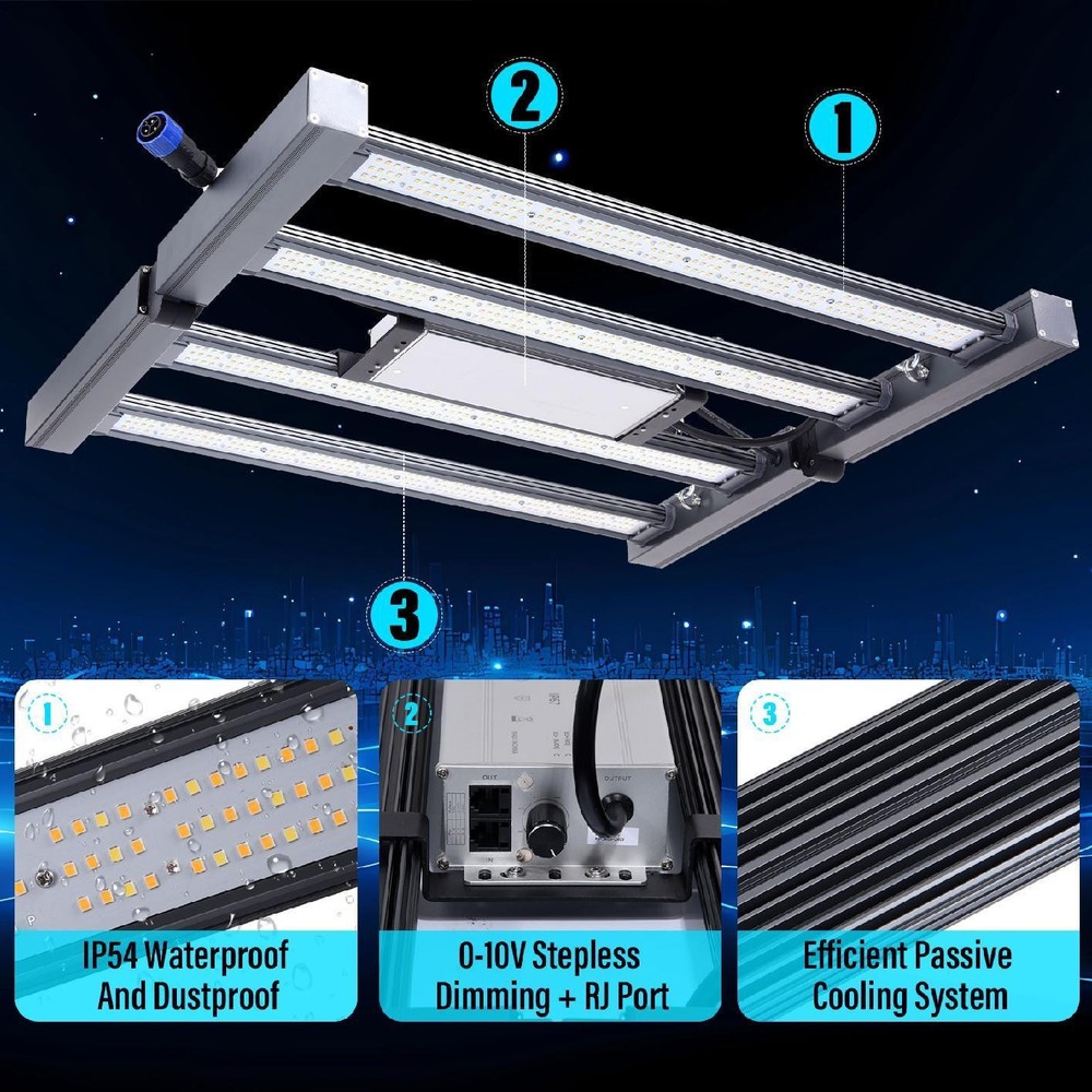Store category Sign Up Now ! You may also like Product Description Bullet Points: Portable Convenience: Constructed with high-grade aluminum alloy, our full spectrum LED grow lights feature a unique folding design that easily adapts to any planting space. The compact design allows for effortless storage and transport, making it a perfect fit for all your indoor gardening needs High-Efficiency Light Source: Easily adjust light intensity to match different plant stages. Provides UVA and white light 3000-5000K, far red light 730nm, and infrared 660nm with 4 efficient LED strips. Dimmable, with a total power of 240W, making it ideal for any indoor farming setup Ensures Optimal Growth Balance: With full spectrum LED technology, our lights promote overall healthy growth and prevent hot spots for uniform distribution, ensuring every plant is nourished equally Advanced Heat Control: With a built-in high-efficiency passive cooling heat dissipation system, our full spectrum LED grow lights feature stable temperature control which extends the lamp's service life. Suitable for a variety of planting scenarios, IP65 waterproof design ensures sturdy outdoor use Simple Installation: Equipped with an adjustable rope hook and a generous 3-meter power cord and signal cable, this full spectrum LED grow light is convenient to install in both hydroponics and soil planting setups. Ideal for flexible indoor planting in any desired location and height Introducing our innovative folding design LED grow light! With multiple spectrums, it promotes overall healthy growth. Suitable for a variety of planting scenes and equipped with an adjustable rope hook for easy installation. Grow your plants like never before with our LED full spectrum grow light! Specifications: Product size: about 58x49cm/22.83x19.29 inches Material: Aluminum alloy Number of light strips: 4 Power: 240W Voltage: 110V Dimming: 0-10V adjustable Waterproof grade: IP67 Spectrum options: UVA light, far red light (730nm), white light (3000-5000K) and infrared (660nm) Temperature rise: 30 (K) Power cord length: 3 meters Signal cable length: 3 meters Packing List: Full spectrum LED grow light*1 Telescopic hooks*4 3-meter power cord*1 3-meter signal cable*1 Brackets*2 Instruction manual*1 Notes: 1. Due to different lighting and screen settings, the item color may be slightly different from the picture. 2. Due to different manual measurements, please allow a 1-2cm difference in size. Payment Delivery details Terms of sales About us Feedback & DSRs Payment Before you palce an order, please kindly make sure that you have a paypal account. We accept PAYPAL payment only. Payment should be completed within 2 days after auction closed, or unpaid dispute will be filed for an closing auction. An unpaid case will be filled after 4 days. Delivery details We ship to your eBay address. Each package will be shipped to US by UPS Regular Parcel with tracking number. Please check your shipping address carefully before checkout, it can't be changed if order completed. All items will be shipped within 1-2 business day upon receipt of payment.Orders placed on weekend will be shipped within 3 days. If you do not receive your item in 7-10 business days.please contact us immediately for further assistance. We will be responsible for any damages or losses incurred in the shipping process. About us We maintain high standards of excellence FIVE STAR and strive for 100% customer satisfaction! Positive Feedback is very important to us. We hope that you contact us immediately Before you give us neutral or negative feedback, so that we can satisfactorily address your concerns. We promise to offer the lowest price and high quality produce. Our working time: From Monday to Friday(9:30 am to 18:00pm), we don't working on holidays ,hope you can understand and know that , thank you. Please always talk to us via ebay Message. We appreciate your business and look forward to growing our e-Bay sales with satisfied customers. Feedback Contact us If you have any questions, please feel free to contact with us by ebay Message during our business hours ( 9:30a.m. to 5:30 p.m.), or email us through eBay, we will try our best to help you to resolve it. For any presale or after-sale questions,please do feel free to email us! Due to the time difference, each email will be replied within 1 working day,and weekend will be delayed a bit. Feedback