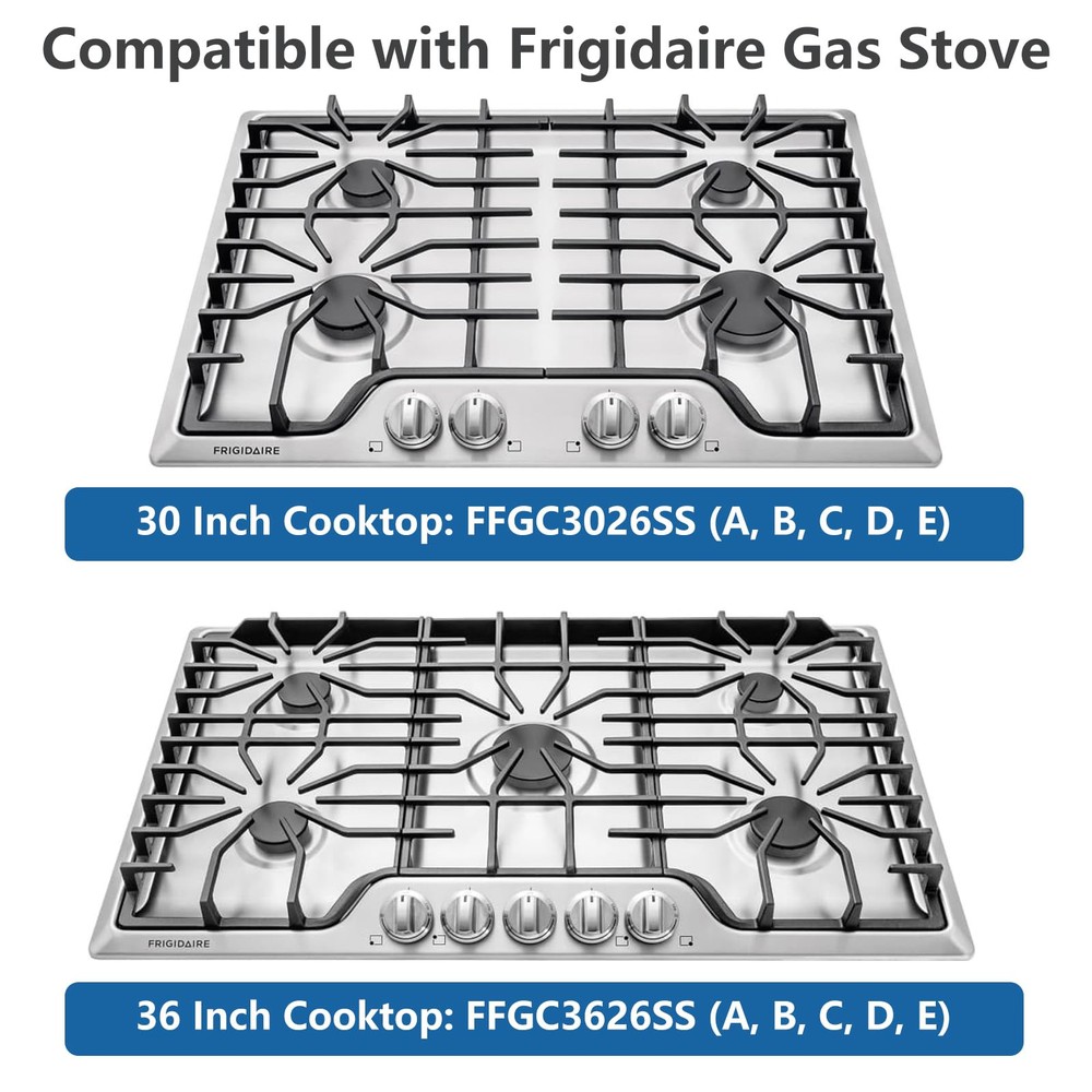 【OEM UPGRADED】Laser Engraving Sign Stove Knob,Clear markings that never falls off ; ABS 749 engineering grade plastic, eliminating the phenomenon of Frigidaire stove knobs fracture. 【Replaces Part Number】 Replaces Stove Part Number: 5304525746, A03546301/02/03, 5304504839, PD00064795, 4960519, AP6997304, PS16227241, EAP16227241 etc. (the "D" size: 0.22*0.24 inch.) 【Fits Frigidaire Appliance】 Compatible with Frigidaire Stove FFGC3026SS FFGC3626SS FFGC3626SWC FGC3047QS etc. (For more suitable stove models, please refer to the details page) 【Strength ODM Factory】 All 5304525746 stove knobs are safety tested and has been certified at home and abroad. Our burner knobs feature heat/corrosion resistant, fire retardant properties. (Accurate Stove knob size) 【2 Years After-Sales Guarantee】We have a professional after-sales team responsible for 5304525746 gas cooktop knobs. If you have any questions about the product, you can leave us a message. We will reply you within 12 hours and give you a satisfactory solution.