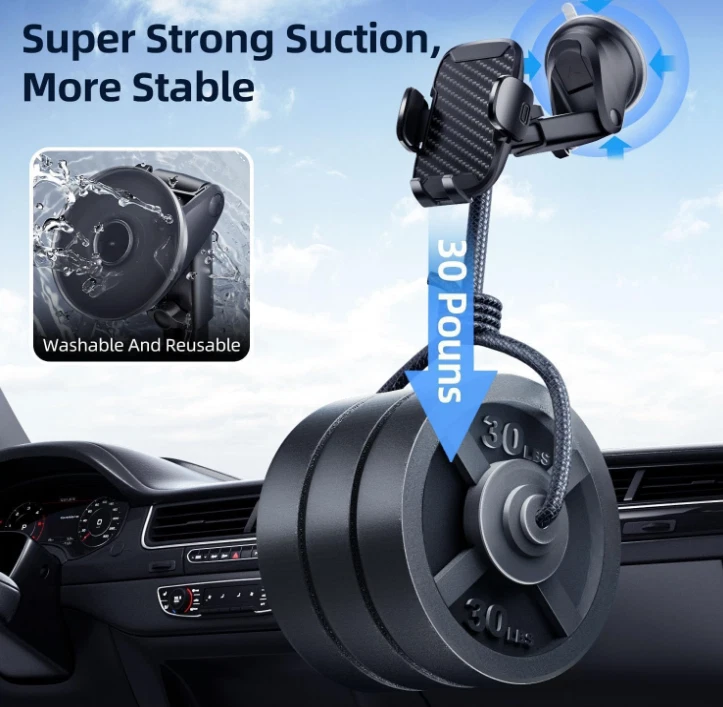 🚗 Multi-Functional Car Phone Holder – The Perfect Companion for Safer Drives! 🚗 Key Features: 1️⃣ Versatile Mounting Options : Equipped with strong adhesive suction cups and a secure air vent clip , this holder easily mounts on the dashboard, windshield, or air vent . 2️⃣ One-Handed Operation : Features an easy one-button release mechanism for effortless operation. Secure your phone or release it in seconds—perfect for on-the-go adjustments. 3️⃣ Flexible Viewing Angles : 360° rotation and an adjustable telescopic arm (extends from 5.1" to 7.5", pivots 270°) let you position your device perfectly. Avoid blocked views and stay focused on the road for safer driving. 4️⃣ Universal Compatibility : Designed to fit most 4.0–7.0-inch smartphones , making it ideal for various devices. 5️⃣ Premium Build Quality : Made of durable, heat-resistant PC material that's eco-friendly and non-toxic. Features non-slip silicone arms to protect your phone from scratches and keep it steady, even on bumpy roads. 💡 Why Choose This Phone Holder? Safe, distraction-free driving Sturdy and long-lasting materials Sleek design with universal fit