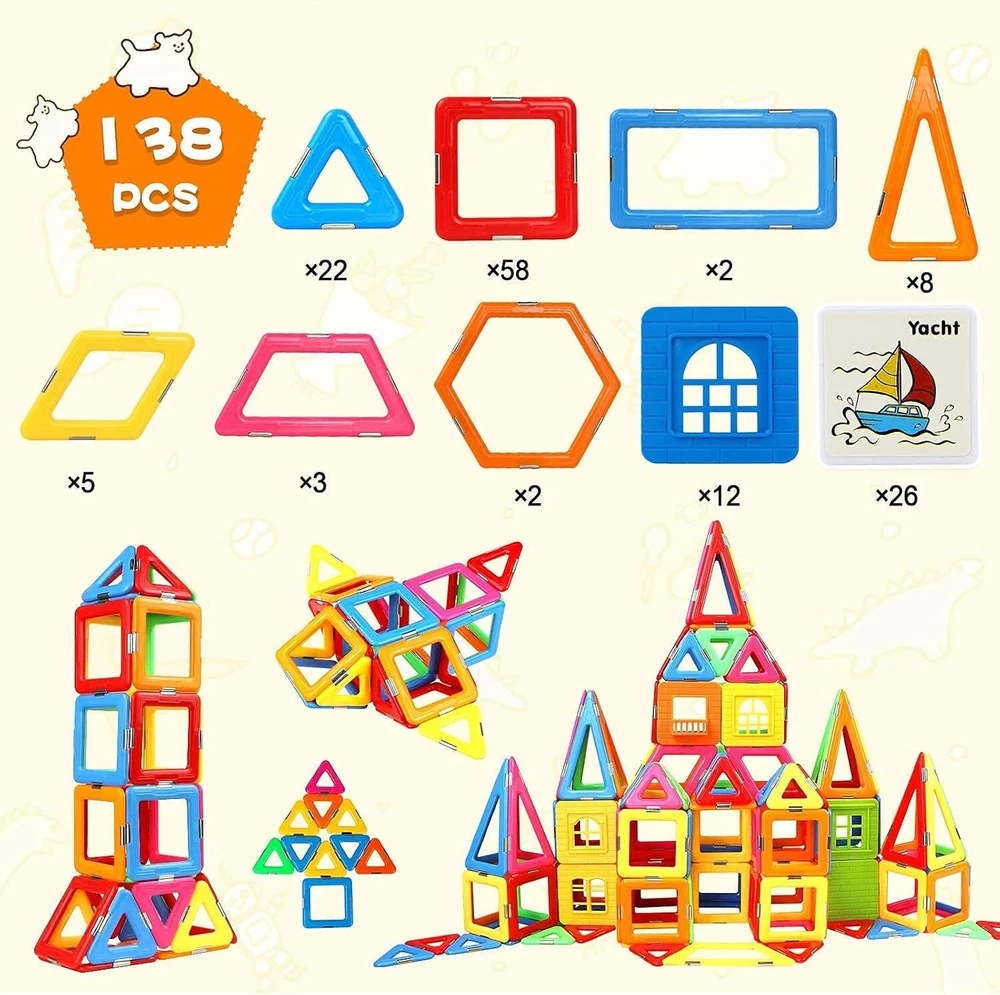 Product Description Upgraded Magnetic Blocks 138PCS Magnetic Building Tiles STEM Toys for 3+ Year Old Boys and Girls Learning by Playing Games for Toddlers Kids Compatible with Major Brands Building Blocks 【ADVANCED SET OF 138PCS TOTAL】 Package includes 138 magnetic blocks, an idea booklet and a storage bag. Refill your existing magnetic blocks or even building blocks of other brand to expand model opinions. More pieces, more possibilities. 【COMPATIBLE WITH MAJOR BRANDS】Necessarily, magnetic blocks are compatible with major brands in markets. You can extend your existing magnetic blocks set by adding more building tiles. This time, magnetic blocks with stainess steel security and stronger magnets will be a safer and more reliable option for you to consider. 【STEM LEARNING】 Besides being appropriate for both indoor and outdoor activities, this Magnetic Blocks set is also a highly regarded educational resource. Children can develop math, science, spatial, and tactile skills while learning how to problem-solve and work as a part of a team. Suitable for ages three and up. 【LEARNING WITH CREATIVE FUN】 In today’s world, we are all looking for ways to educate our children and keep them busy. Why not accomplish both with an educational and hands-on magnetic construction toy set that allows them to express their inner creativity? We Encourage Children to Be the Makers of Their Own Worlds. Anything they can dream, they can create! 【PERFECT BOREDOM BUSTERS & MEMORY MAKERS】Keep these magnetic building tiles in your special boredom buster cabinet. Every time your toddler say “I'm bored”, take them out and then he/she will pick an STEM activity to do for hours. We highly recommend parent-to-kid bonding play on weekends. About Us We are a reputable seller with many years of experience selling on eBay. Our goal is to provide high-quality products and excellent customer service. Payment 1.We accept PayPal only. 2.All major credit cards are accepted through secure payment processor PayPal. 3.Payment must be received within 7 business days of auction closing. 4.We ship to your eBay or Paypal address. Please make sure your eBay and Paypal address is correct before you pay. Feedback will be left automatically after we receive your feedback. Please contact us before leaving a Negative feedback or Neutral feedback. We would try our best to help you solving any problem. Shipping Items will be shipped within 1-3 business days when we received payment. (Orders are not processed on weekends & holidays) Tracking information will be sent once item is shipped. Delivery time depends on destination and other factors Item is shipped to ebay address. Leaving correct address can minimize delay. For international shipping and shipping to Guam, Hawaii and Alaska, Please contact us before placing the order. International buyers please note: Import duties, taxes and charges are not included in the item price or shipping charges. These charges are buyer’s responsibility. We will try our best to reduce the risk of the custom duties. Local pick-up is unavailable at the moment. Returns For any issues with Defects, Return, Item Exchange request, please contact us first and send us a message first before opening any type of case or request. We devote ourselves making EVERY CUSTOMER in 100% Satisfactory and resolve any problem. We highly value and appreciate your business. Thank you. No returns will be accepted without an RMA number. Please contact us for the RMA number. Return is acceptable within 30 days of delivery. Return for replacement or money back is optional. Returned items must be in the brand new, unaltered and resalable condition. Seller is not responsible for any labor cost, expense in a dealer store, or damage due to wrong installation. Contact Us We reply any email messages within 1 business / working days(off-duty at weekend). If you do not get a response from us, then please check your junk or spam mailbox. Our Business hours: Mon-Fri 9:00-18:00, UTC/GMT +8 hour s . Please contact us either by clicking "contact seller" in the "purchase history" section or simply click "ask a question" at the bottom of this page. If you are unsatisfied with our item or service, please contact us before leaving any feedback. We are committed to resolve all issues in a friendly and satisfactory manner. To provide you with better service, please provide the following information in your email: Your ebay ID Order problem, order number For product questions, the eBay article number, the product URL or the product SKU Unfortunately, the eBay guidelines do not allow us to provide a phone number. But if you'd rather call please send us an email.