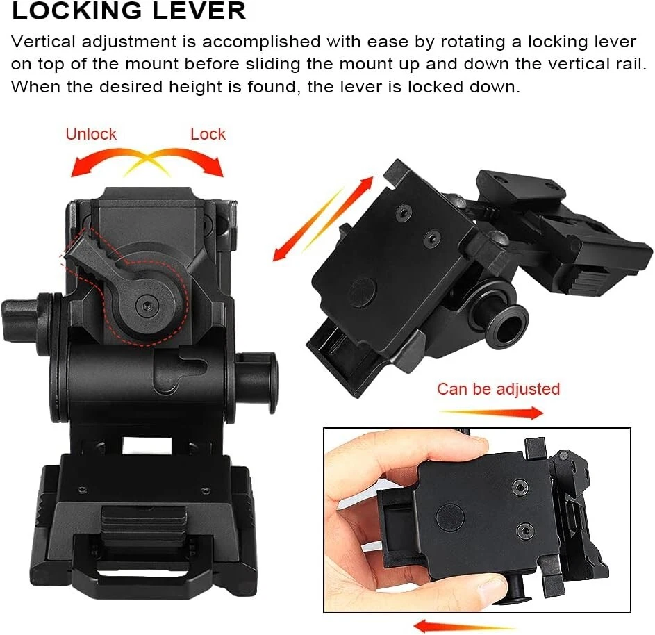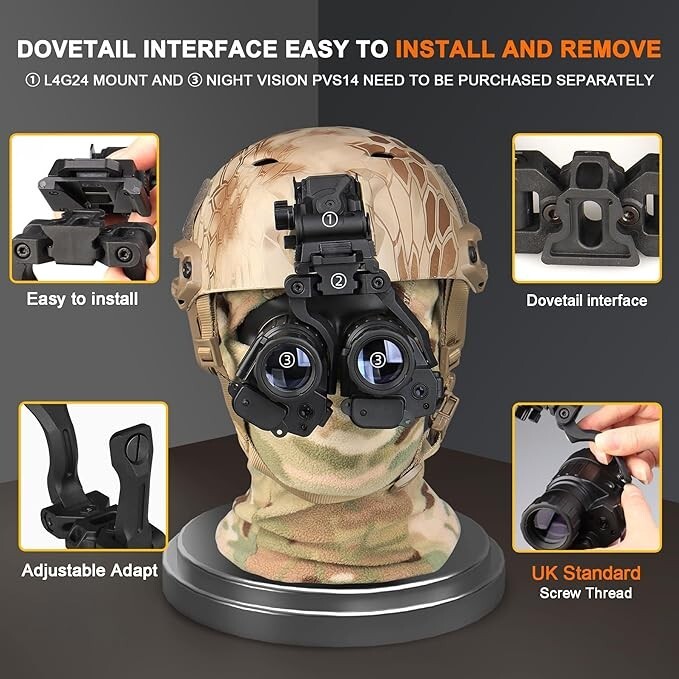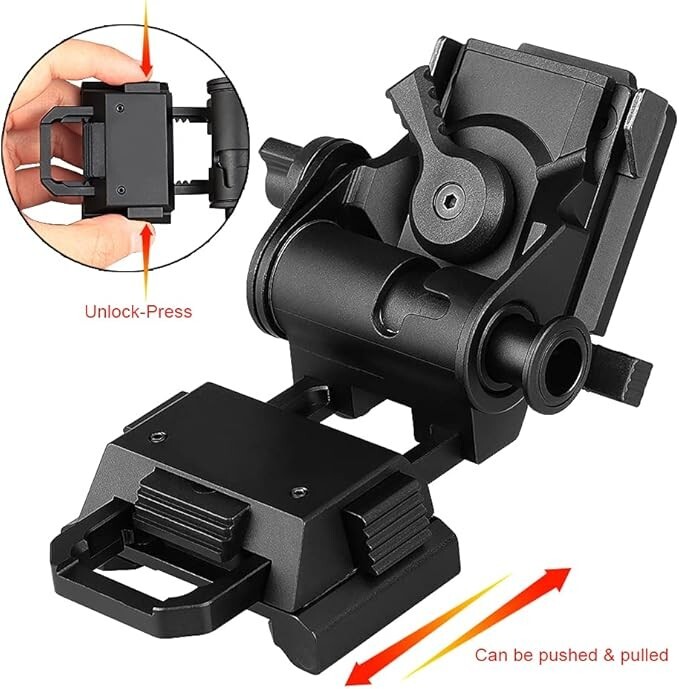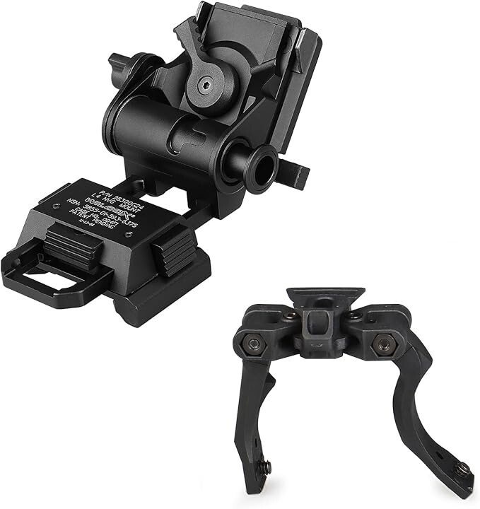 New Metal L4G24 Night-Vision arms Mount+POM Reinforced Upgraded Version NVG Bridge for pvs14 Support 2 Optical or 1 Digital Night Vision (UK Standard) 1.Material: L4 G24 mount is made of high-quality aluminum, while Night Vision Bridge is made of high-quality POM. It has strong load-bearing capacity and is not easy to break due to external force. It can firmly connect two night visions. 2.Well designed: L4 G24 mount and Night Vision Bridge mount combination is suitable for night vision pvs14, which can perfectly match the installation and is not easy to fall off, suitable for novices and outdoor activities. 3.Easy to carry and store:L4 G24 mount is designed to flip up and down and can be folded when stored. Night Vision Bridge is compact in design, lightweight, takes up no space and is easy to carry. 4.Interface standard: The interface of L4 G24 mount is a dovetail groove interface, and the thread interface standard of the Night Vision Bridge is the British standard. When purchasing, you need to choose according to the interface standard. 5. Suitable for pvs14: The combination of L4 G24 and Night Vision Bridge is used in the night vision device PVS14. 6. Well-designed: L4 G24 mount is designed to flip up and down. It flips up for the resting state and flips down for the use state; Night Vision Bridge can be used left and right when connected to an optical night vision, but only supports the left eye when connected to a digital night vision. 7.Oxidation process: The surfaces L4 G24 mount and Night Vision Bridge adopt good anti-oxidation process, so that the mount will not be oxidized due to environmental factors during use, so as to achieve a durable effect. 8.Tips for use: During installation, you need to firmly buckle l4 g24 buckle into the bracket slot. The installation is successful only when the buckle is stuck. For new products or after being used for a long time, the bracket will loosen, you need to use a screwdriver to tighten the screws. 9. New upgrade: A groove is added inside Night Vision Bridge , which not only increases the appearance, but also increases the stability of the bracket, which can support the weight of two night visions without shaking. 10.If you encounter any problems during the purchase process, you are welcome to contact customer service directly to solve the problem.