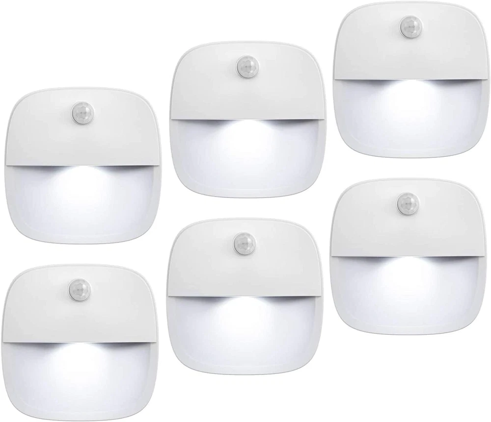 Upgraded Motion Sensor Light, 6 Pack Battery-Powered LED Night White
