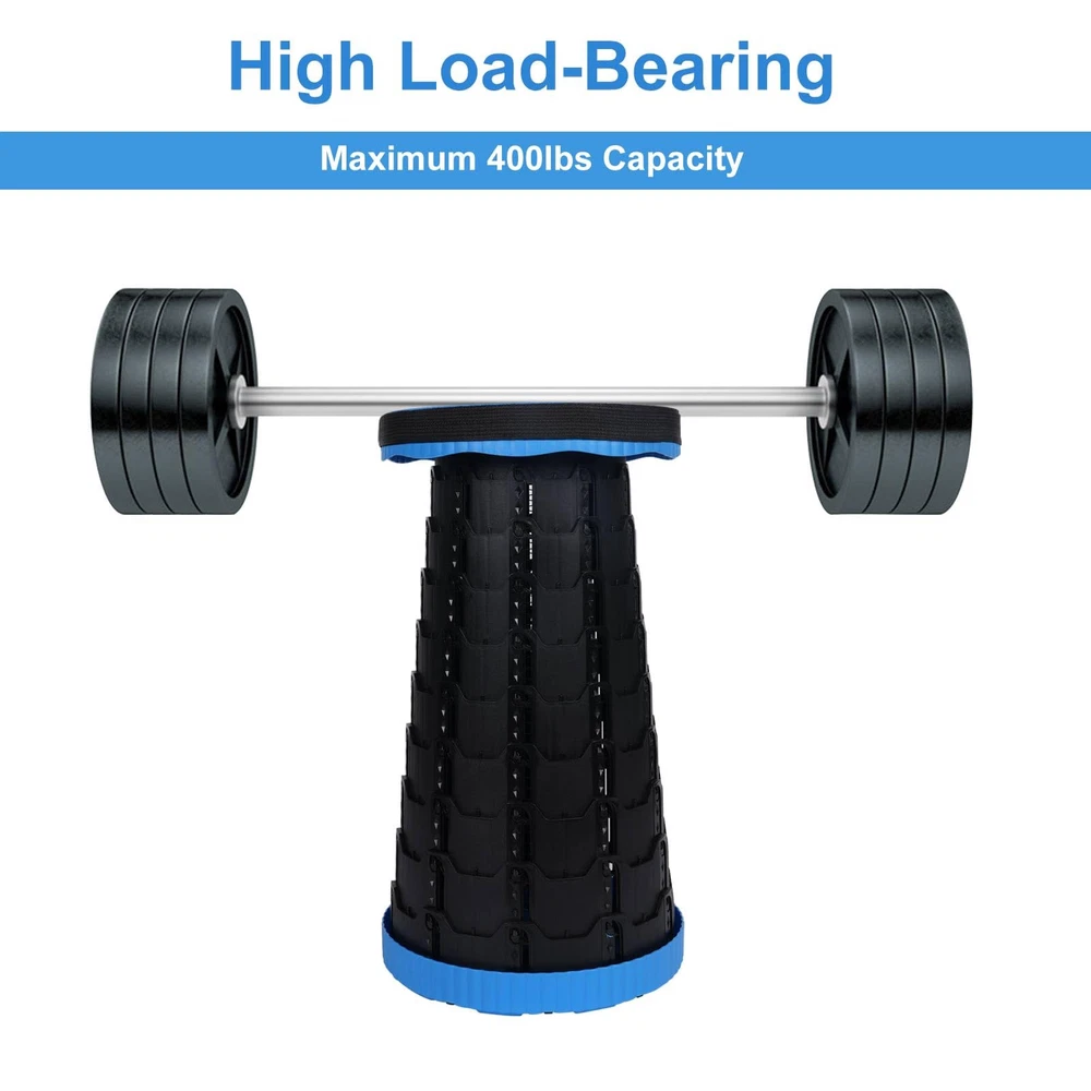 PORTABLE DESIGN: This portable collapsible stool is only 2.54 pounds, with a diameter of 9.7 inches/25cm, and can be folded into 2.4 inches, which is easy to carry and store. The adjustable shoulder strap makes it easy to carry or hang over the shoulder. You can fold the collapsible stool up and put it in your bag. No matter where you go, you can sit anytime, anywhere. MORE COMFORTABLE: This newly upgraded portable collapsible stool is made of high-density thickened PP material, which is hard, stable, scratch-resistant, and wear-resistant. The bottom of the portable stool has a non-slip design, and the side support and anti-tilt ability have also been strengthened, making the stool more durable and safe. Easy To Open And Use: The interior of this portable collapsible stool is designed with stiffeners to hold it in place, making the stool stronger and easier to open and close. The top and bottom of the collapsible stool are designed with two holes, you need to hold the two holes, stretch and turn them clockwise/counterclockwise, and easily open and close them. Height Adjustable/Retractable: The telescoping stool adjustment range: is 2.4inch - to 17.5inch, you can adjust the height according to your needs, this adjustability makes it suitable for adults and children. The telescoping stool is a great gift for anyone looking for a portable stool and a telescoping stool. Wide Application & Satisfaction Guarantee: Portable telescoping stool is very suitable for indoor and outdoor, such as living room, bedroom, office, camping, travel, fishing, leisure, grilling, gardening, etc. The beauty, functionality, durability, and portability of the telescoping stool make it the best choice for friends and family for holidays or any occasion.