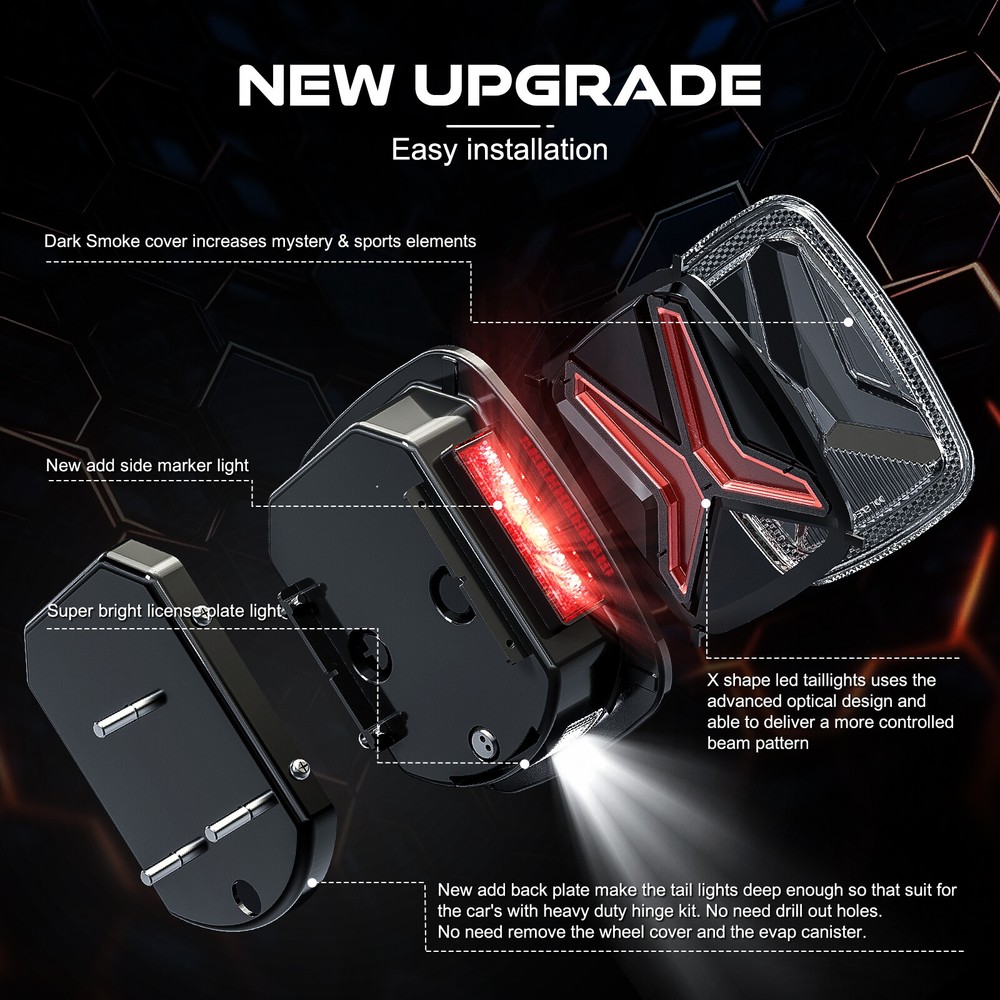 Newest Smoked Led Tail Lights w/ Side Lamps For Jeep Wrangler TJ 1997-2006 Pair Features: ---"X" Design LED Tail Lights. (Exclusive Patent) Unique Appearance,Bring you an unparalleled visual experience! Driver Side and Passenger Side are included. ---Reliable Quality.The main material is durable High-grade ABS. Polished surface treatment, first-class craftsmanship, allows the product to arrive in your hands in perfect condition with excellent texture.100% Waterproof,Dustproof, Anti-shock. High light efficiency, low power consumption, energy saving !Extend the life to more than 70,000 hours. ---Plug N' Play. SPL LED Tail Lights are a direct replacement for your stock tail lights. These rear LED lights are completely compatible with your electrical system.The wiring of our taillights comes in four colors: black, white, yellow and red. Easy to connect and identify, more convenient to use! ---Perfect Service.We‘re 100% real source seller.The price is the factory price . According to your delivery address, intelligently match the fastest shipping , Providing you convenient shopping experience :-) Package Included: 2PCS LED Tail L ights (Newest Upgrade) Fitments: For CJ5 1976-1983 tail lights, For CJ7 1976-1986 tail lights, For CJ8 1981-1985 tail lights, For Wrangler 1987-1995 YJ tail lights and For Wrangler 1997-2006 TJ tail lights Please check if it fits your vehicle before buying.Any questions, please feel free to contact us. We will reply you within 12 hours Descriptions: Power: 30W Voltage: DC 9-32V Housing Color: Black Material: Durable ABS+ PC Lens Waterproof: IP 67 Lifespan: 70,000+ Hours Light Color: Red(running/Brake),Red(turn signal),White(reverse) Warranty: 5 Year Payment Delivery details Terms of sales About us Contact us Payment 1. We often use PayPal as a form of payment. 2.PayPal enables you to send payment quickly and securely online. 3.Please note: taxes and remote address (DHL NOT SHIP) charges are not included in the item price or shipping charges. These charges are the buyer's responsibility. Thank you very much for your cooperation Delivery details 1.Your PayPal address MUST MATCH your Shipping address. We only ship to confirmed PayPal addresses. 2.We try our best to make you get desired products as soon as possible.In case you receive wrong products due to shipping error,please contact us for exchange or refund.If it is damaged,please refuse to accept and contact us as soon as possible. 3. NOTE: Additional shipping fee will be charged for buyers from Puerto Rico , Hawaii , Alaska, Guam, the U.S. military address of the United States and The nonnative American address Please contact our customer service for the details of extra shipping fee,thanks . 4. For domestic economic shipping,It normally takes 2-8 days for delivery.we mayship your order(s) from different warehouses for expedited delivery as weutilize altemative warehouse across the Continental United States.You may upgrade to UPS 3-day Selected which delivery time is typically 1-3 business day. 5. We try our best to make you get desired products as soon as possible.In case you receive wrong products due to shipping error,please contact us for exchange or refund.If it is damaged,please refuse to accept and contact us as soon as possible . Terms of sales 1. Condition of sales payment should be received within 3 days from the end of the auction. 2. Products without any quality problem can not be refund. 3. Products with quality problem in 7 days can be returned and refund. 4 . Products with quality problem in 30 days can be returned and refund. 5. Products with quality problem in 1 year can be returned and refund. 6. Please keep the original package after your purchase and we will appreciate it if you send the item back with the original package. Notice : Please keep it in good condition,thank you very much. About us 1.Spl-light focus on exploiting car lights area.Over so many years.Spl-light always abides by "Light up the way,light up the world,light up the future" as a core value. 2.For more than 100 countries and regions to provide high-quality LED series Motor car lighting products. 3.No matter what's kind of weather or what's happened on the road, spl-light determineds to accompany every spl-light user in safety. Contact us 1.Dear buyers, we appreciate your business. Our goal is to make sure you are a happy buyer and pleasant shopping with us. 2.If you have any questions, please contact us for a resolution firstly . Our working time is (GMT+8) Monday to Friday, 9:00-18:00 . We will respond your email as soon as we can . 3.We understand the concerns you might have, and will do our best to resolve the issues. Please give us the opportunity to resolve any problem. Lifespan 70,000 Hours Features DOT-Certified, SAE-Certified, Sealed Assembly, CAPA-Certified, ISO-Certified, OE-Certified Manufacturer Warranty 5 Years Quantity (Right & Left) 2X LED Tail Lights Fitment-02 For Jeep Wrangler YJ 1987-1995 Custom Bundle No Waterproof Level IP 67 Vintage Part No Fitment-03 For Jeep Wrangler CJ 1976-1986 OE/OEM Part Number TJ-YJ-CJ-REAR-LAMP Voltage 12 V Fitment Type Direct Replacement Lighting Technology LED Country/Region of Manufacture United States Material Durable ABS+ PC Lens Lens Color Clear & Red Interchange Part Number "X" Shape Led Tail Lights Color Temperature 3000K Light Color Red 3 Functions Red(running/Brake) Red(turn signal),White(reverse) Number of Bulbs 2 Placement on Vehicle Rear, Left, Right Wattage 30 W Housing Color Black EMC Built-in Yes Application Reverse / Brake / Turn Lights Finish Polished Bulb Shape Code USA Version Manufacturer Part Number TJ-X-0009706 Brand SPL Package includes 2 Pieces Stop Turn Tail Light Fitment-01 For Jeep Wrangler TJ 1997-2006 Type Tail Light Assembly Items Included Bulbs, Ballast