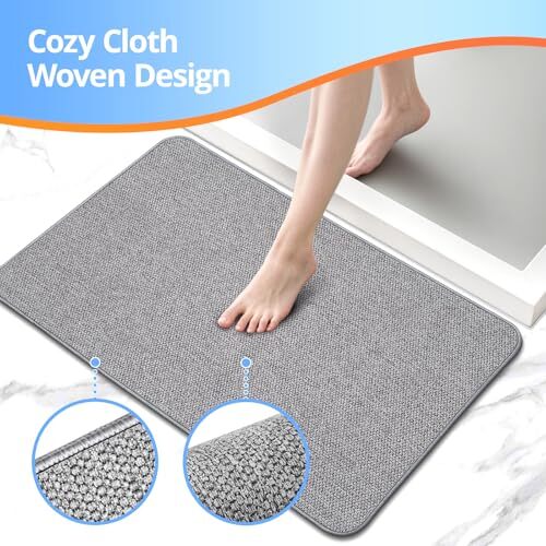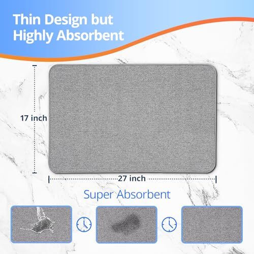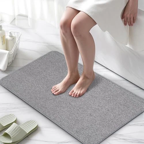 Upgraded Thin Super Absorbent Grey Bath Mat 17x27 for Modern Bathrooms