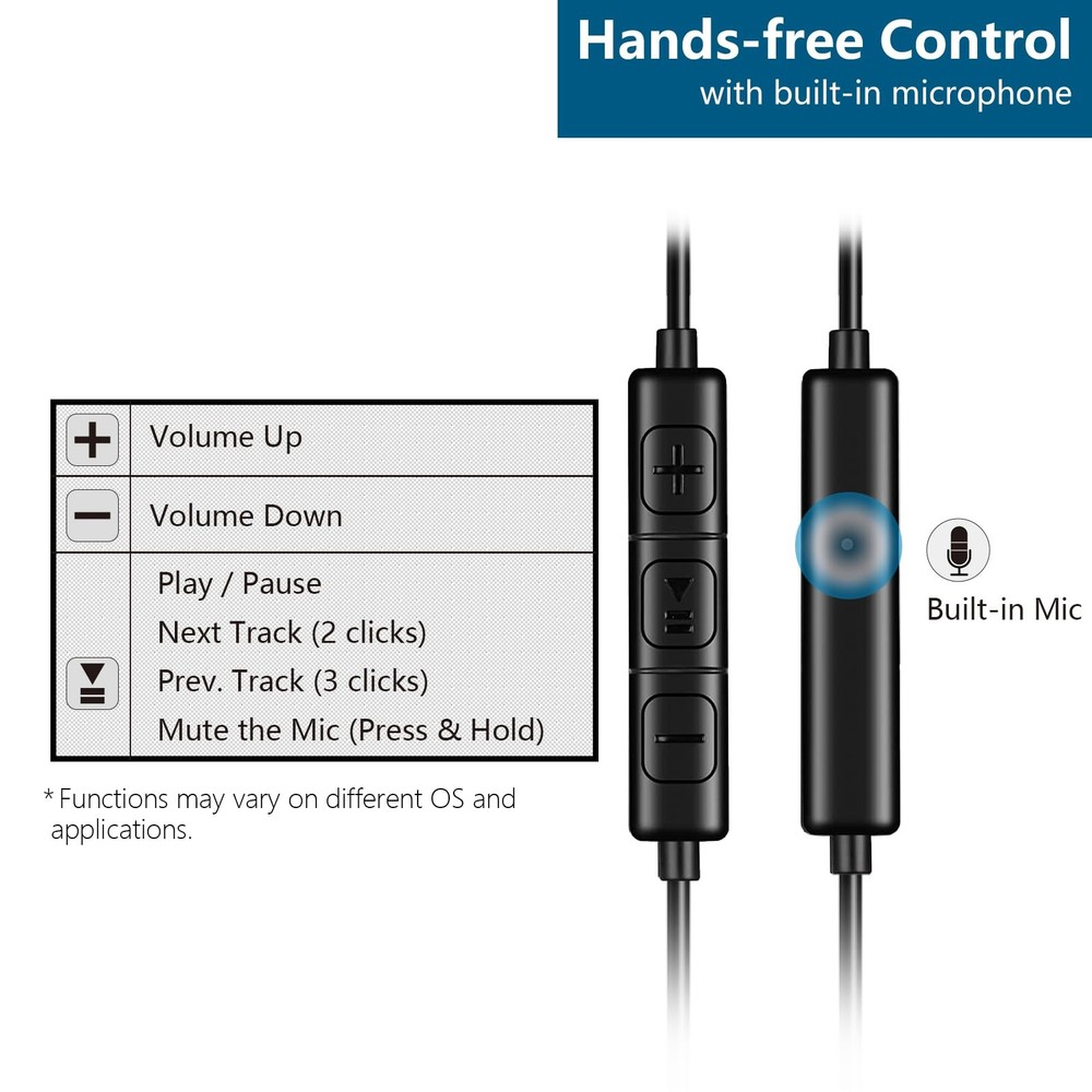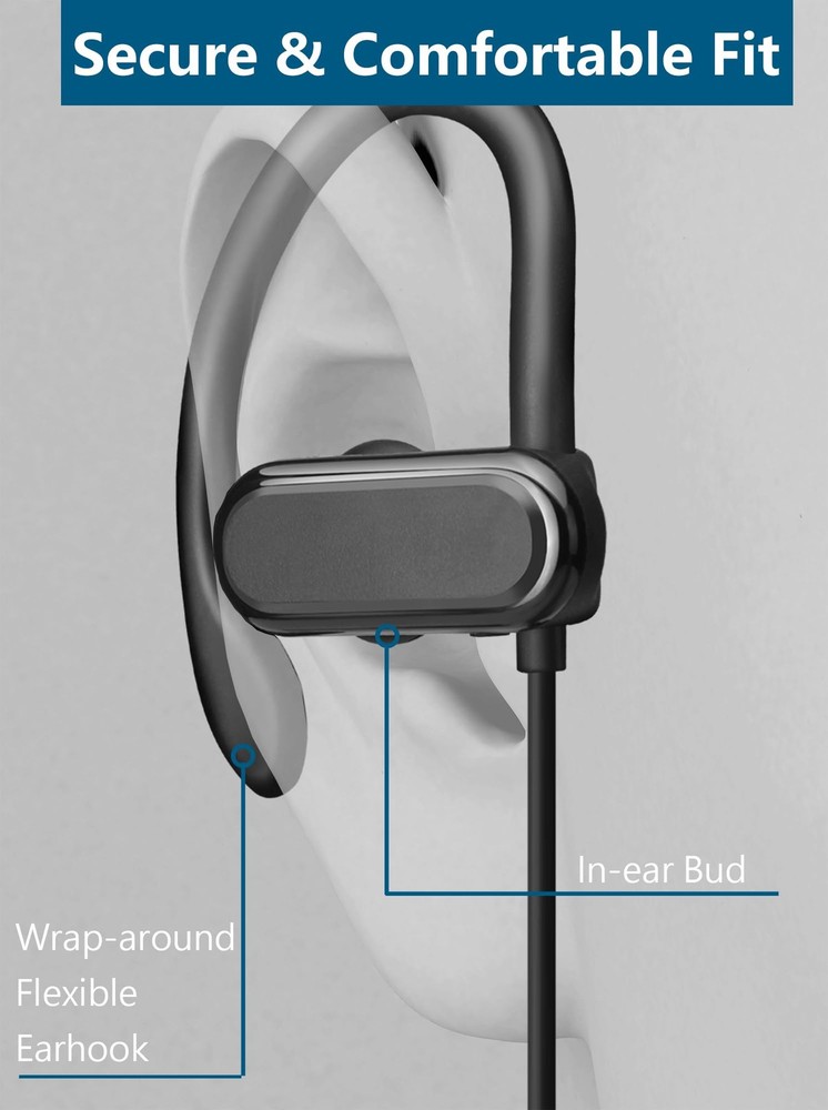 Wired Headphone with Classical Earhooks. Perfect for Sport. Crystal Voice Powered by 2*10mm engineered speakers with Nd-Fe-B magnet brings you superb sound experiences. Snug and Comfortable Wearing The well-designed silicone earhooks fit your ears perfectly. Free of burden for your ears in a long time using. Better Than Bluetooth No battery troubles. Stable connection. Easy to use. Excellent sound quality. Dynamic MIC and Multifunction in-line Control Built-in dynamic high sensitive microphone ensures a reliable, smooth and clear . 3-keys control is easy to access to Track shift Play / Pause Volume + / -, Answer or reject calls Wake up the voice assistant SPEC Frequency Range: 20Hz-20KHz Speaker Sensitivity: 100 +/-3dB Microphone Sensitivity: -42 +/-3dB Imdedance: 16Ohm +/-15% Length: 120cm ChanGeek will be responsible for all issues with this product in 12 months COMFORTABLE & SECURE FIT: This tailor-made wired in ear headphones is not only perfect for working, learning and entertainment, but also ideal for jogging, bicycling or doing exercise in gym. Just wrap the flexible silicone ear hooks around your ears, then you'll never worry about the falling off anymore. It is designed for fitting most people's ear, even for girls and kids' small ears, it can also fit snugly. SUPERB SOUND & NOISE-ISOLATION: 2pcs of 10mm NdFeb speakers provide crystal clear sound, the balanced bass, alto and treble can fulfill most consumers' preferences. Equipped with 3 sizes of ear tips, you can choose one best fitting your ear to block out most ambient noise for better concentration. HANDS-FREE & BUILT-IN MIC: The in-line hands-free button enables you to control the volume up / down, play / pause, skip to next / previous tracks just in seconds [Compatible with iOS & Android]. A high quality built-in microphone ensures clear communication. Every word you said will be heard clearly even in the noisy enviroment. GREAT COMPATIBILITY: The 3.5mm (1/8'') standard audio plug is widely compatible with the most smartphones, tablet PCs, laptop & desktop computers, game players and other audio players. SOLIDLY MADE & WORRY-FREE PURCHASE: Every piece is 100% inspected before shipping. Comes with 12-month waranty for free-.