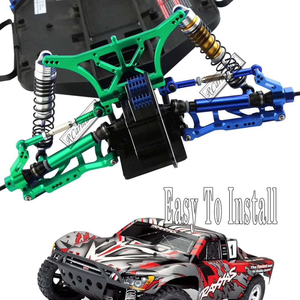 Upgrades Part for 1/10 Slash VXL 2WD,Stampede VXL 2WD,Rustler VXL 2WD,Ford F-150 Raptor,Alloy Caster Block & Steering Blocks & Rear Stub Axle Carriers Hops up,Green 【with】:The RC Upgrade Parts for 1/10 Slash 2WD/Slash VXL 2WD,Stampede VXL/Stampede VXL 2WD,Rustler VXL/Rustler VXL 2WD,Ford F-150 Raptor,Replace 3632 3736. 【High-quality Material】: The Alloy Caster Block & Steering Blocks & Rear Stub Axle Carriers are anodized aluminum, precision CNC machined, lightweight and durable, increasing crash resistance and long-lasting durability. 【Long-lasting Performance】:The upgrades part is durable enough,improves the overall performance of the rc car.Specially designed strengthening cut-outs for increased crash resistance. 【What You Get】:2 x Front Steering Blocks Knuckles (L&R) ; 2 x Front Caster Blocks (c-hubs);2 x Rear Knuckle Arms Carriers stub axle; also comes with screws for easy install. 【Tips】:In order to make the product more stable and make the screws not easily separated from the upgraded accessories, please stick screw glue on any metal-to-metal connection. Especially the position of various screw holes.