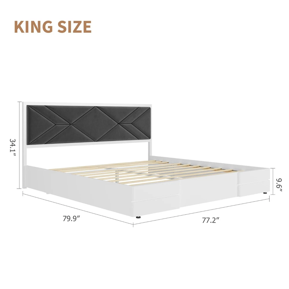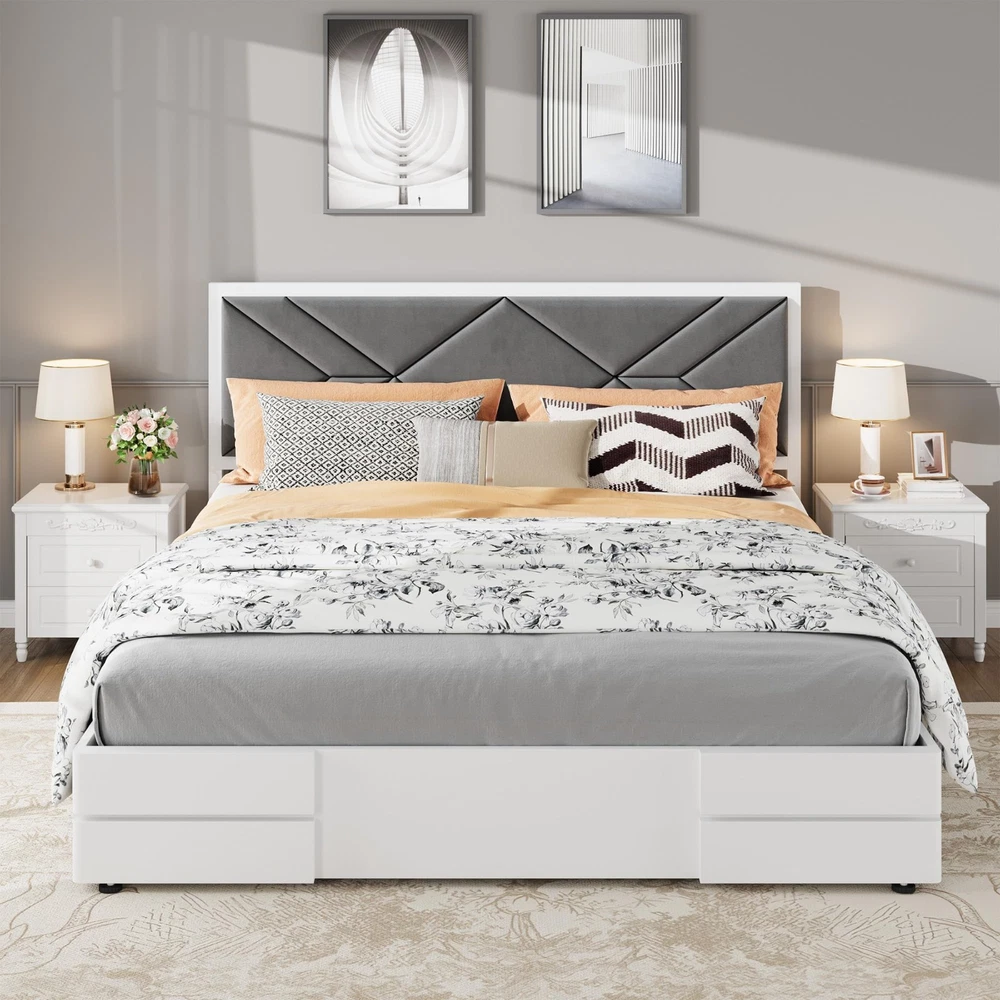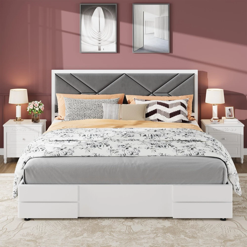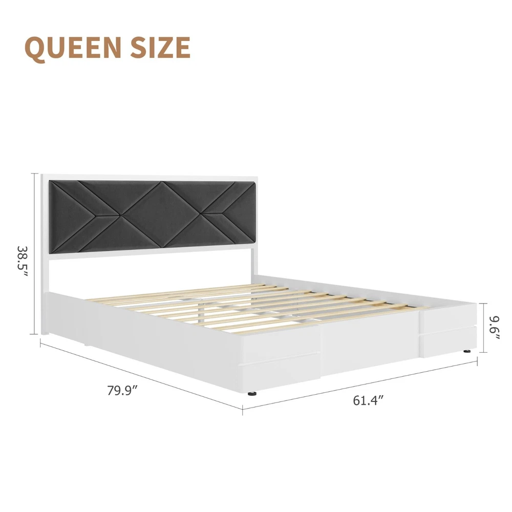 Bed Frame Queen Size, Queen Bed with Headboard and 4 Drawers, 1 USB Port and ...