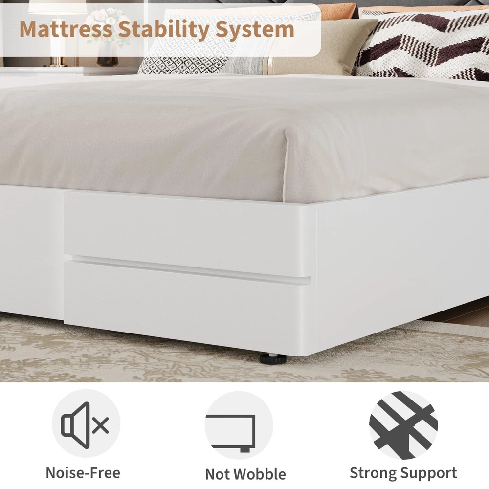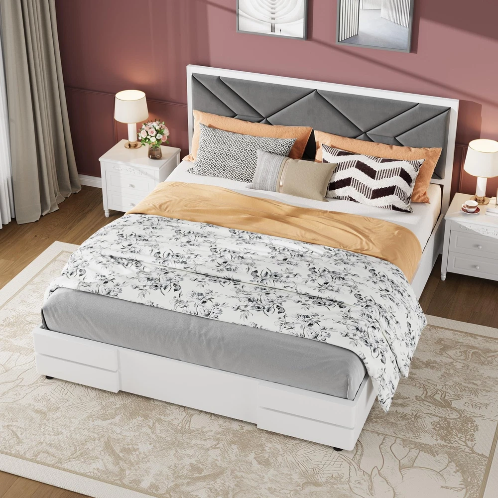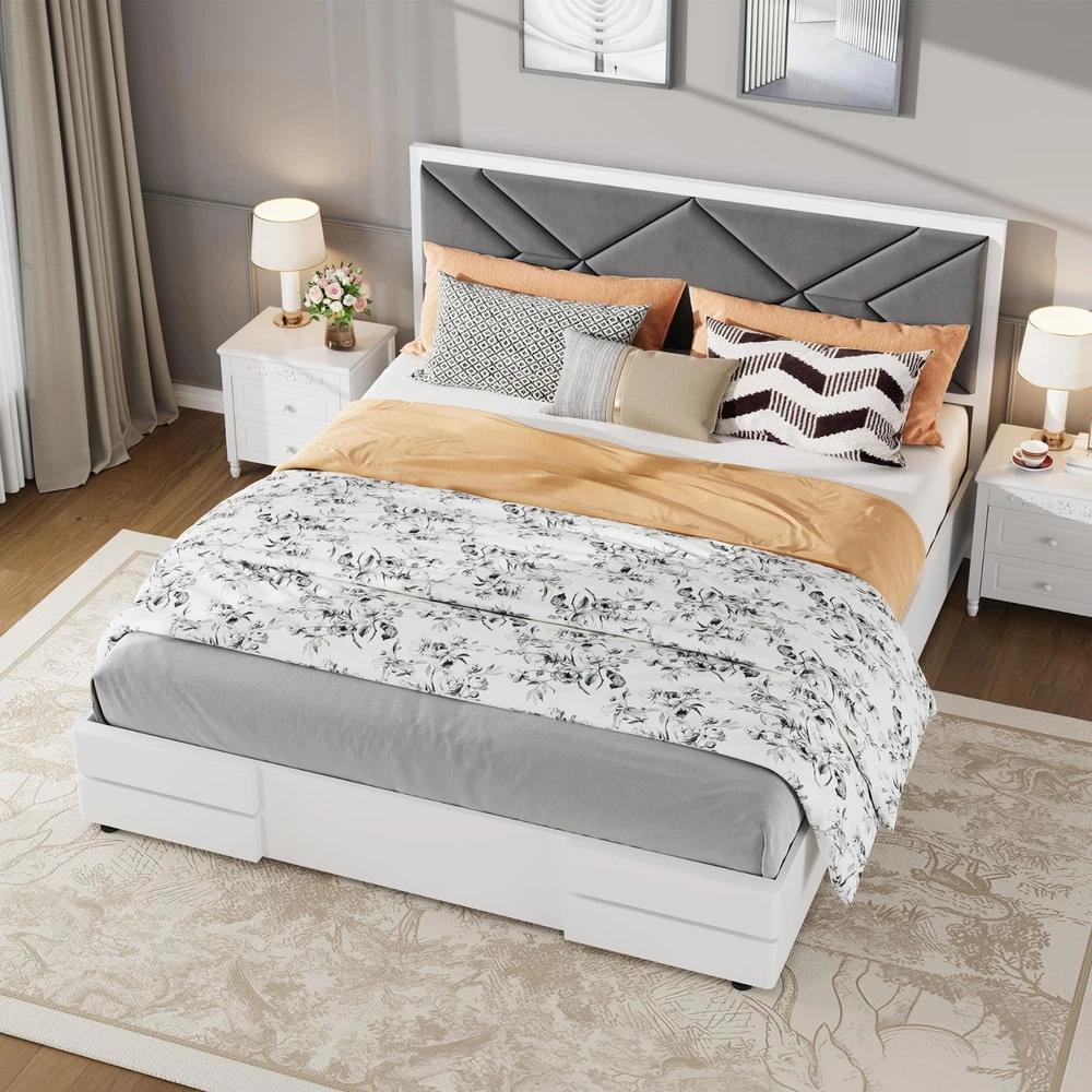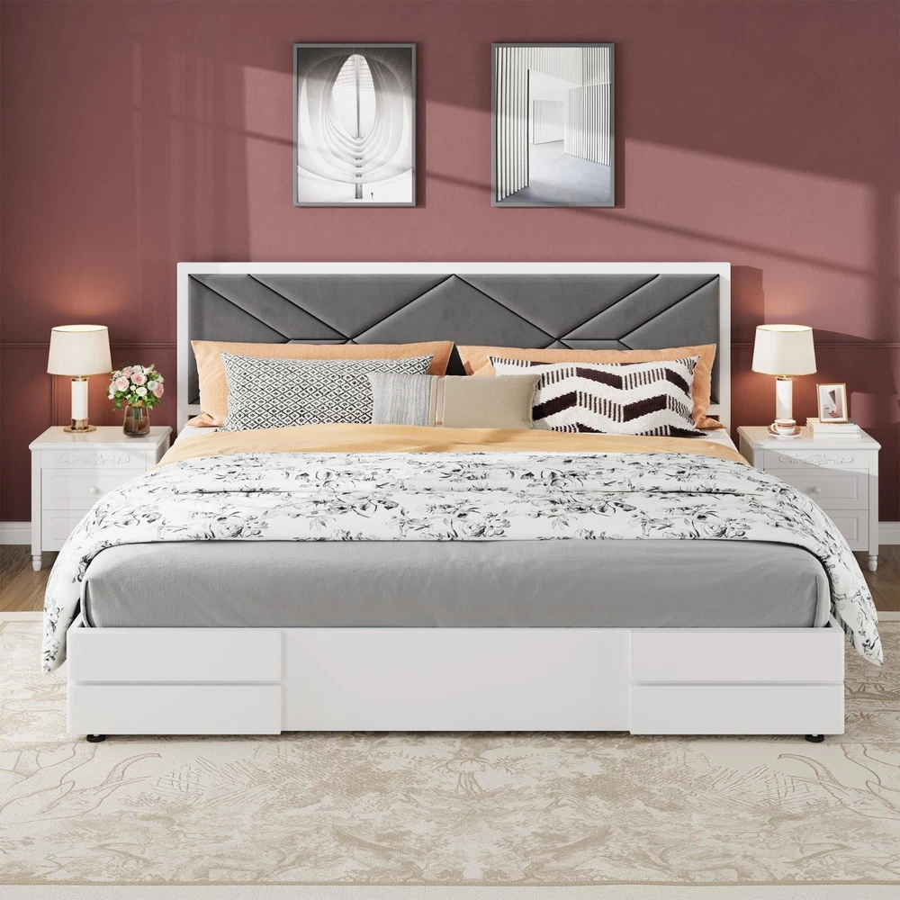 Bed Frame Queen Size, Queen Bed with Headboard and 4 Drawers, 1 USB Port and ...