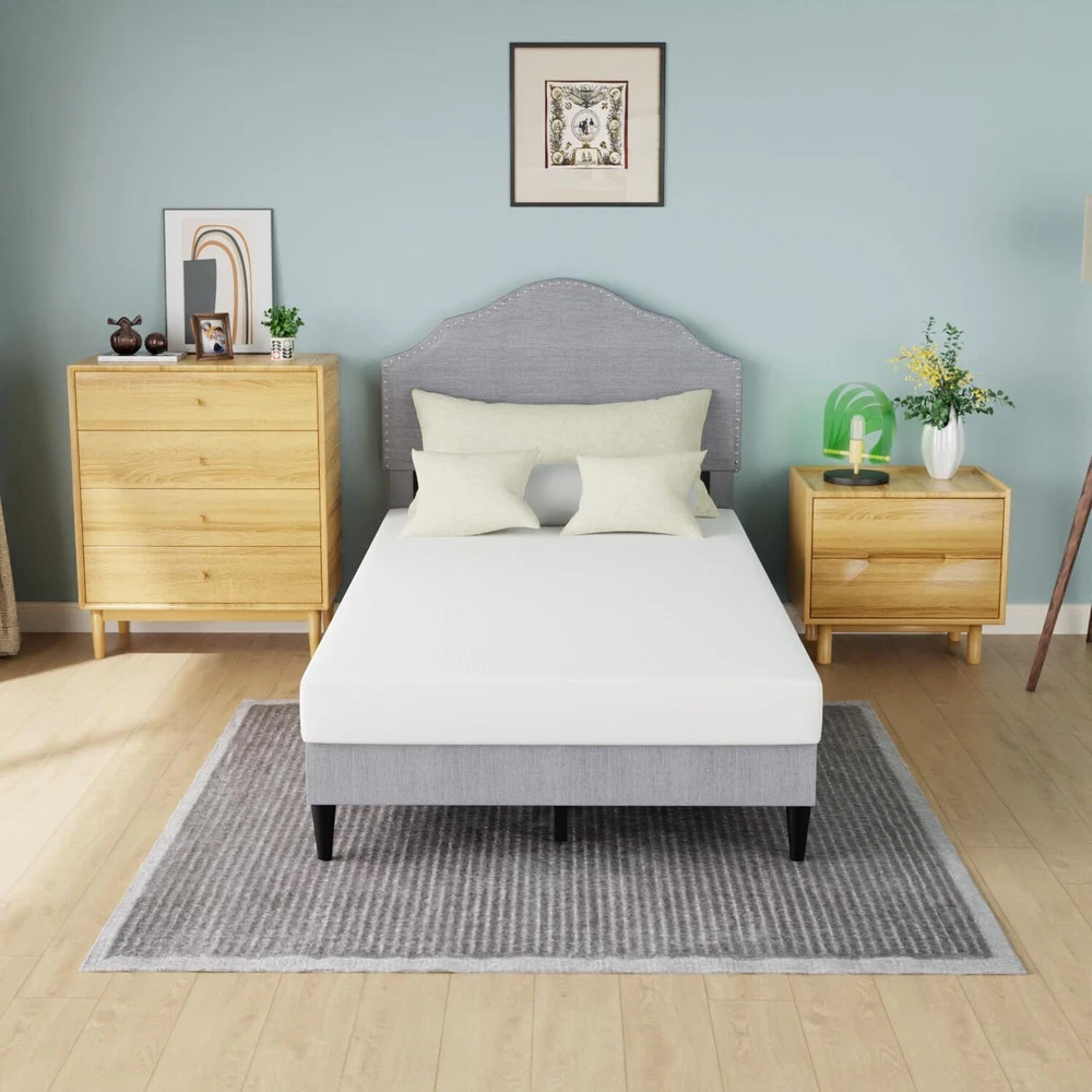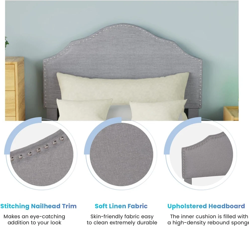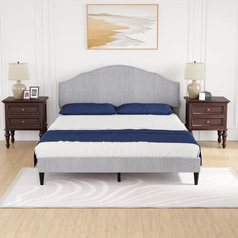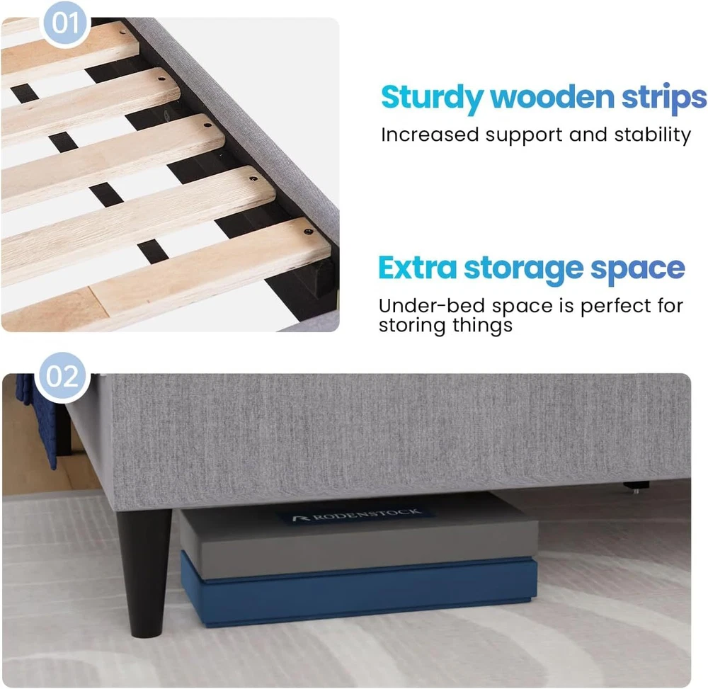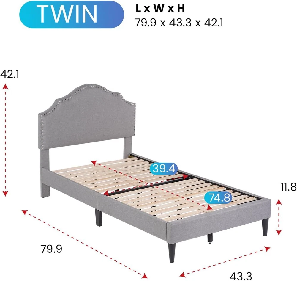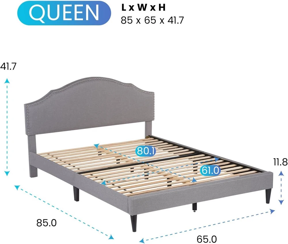 G IVING QUALITY SLEEP: The Upholstered Platform Bed headboard is made of high-quality linen fabric in appearance, with a built-in memory sponge with high resilience, which satisfies the matching of space, gives the room a warm and modern atmosphere, and is a unique color of the room. NO BOX SPRING NEEDED: This sturdy and durable Upholstered Platform Bed Frame is a classic design that works perfectly for any bedroom or guest room. Dependable wood slats support will extend the life of your memory foam, latex or spring mattress without the need for a box spring. STRONG & STURDY: This platform bed frame is made of premium wooden for ultimate strength, strongly supporting your mattress and bedding. Its foam-padded upholstery offers supportive comfort while relaxing. QUALITY ADVANTAGE: Abandoning the complicated decoration, our bed frame adopts concise lines and a classic finish to create a simple and stylish appearance. This platform bed comes with wooden slats, so you don't have to worry about finding a separate box spring or base. HEAVY DUTY BED FRAME: The solid wood slats and the center support legs can firmly stabilize the frame, have a strong load-bearing capacity, greatly prolong its service life. This well-designed upholstered bed frame can be used for many years. Best Upholstered Platform Bed : · The unique anti-slip strip design helps stabilize the mattress and eliminate squeaks. · Durable wood slats support and extend the life of your latex, memory foam or spring mattress without the need for a box spring. · Sufficient ground clearance for future dust cleaning. The cleaning robot can pass freely, making it easy for you to clean this cushioned platform bed. Sleek cloth decor gives you a perfect finishing touch, Impress your loved one with a deluxe modern bed frame. Sufficient under bed space is ideal for storing excess debris. Helps to keep the room clean and tidy. Designed with strong wood slats support, it does not require a box spring or any other additional foundations. Strong wooden slats and durable steel structures of this wingback bed make it lasting without shaking. We have adopted a humanized design, and anti-skid foot mats can prevent scratching the floor Our bed frame installation is simple and provides instructions that can help you complete the installation in the shortest possible time Listed by Frooition Frooition | No-js Template | eBay design, eBay store design, eBay shop design, eBay template design, eBay listing design, eBay Listing Tool (ver:froo_no_js)