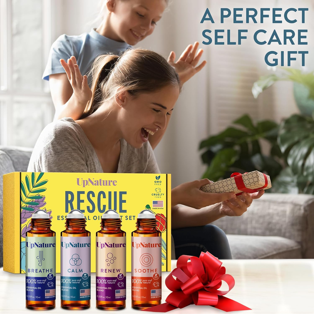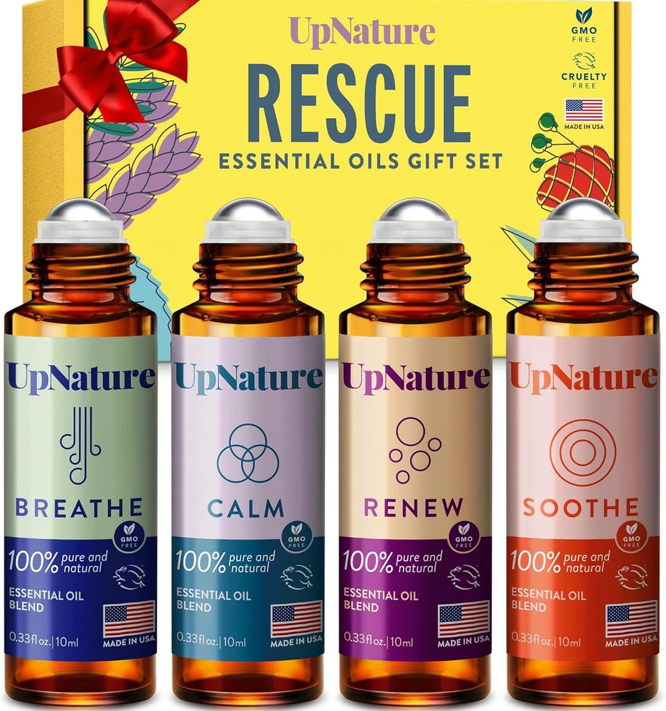 Store New Arrivals Add to Favorite View Feedback Contact Upnature Essential Oils Roll on Set (Pack of 4) Stress Relief Gift Aromatherapy Oil - Self Care Gifts for Women Description Special Feature Aromatherapy, Pure Product Dimensions 4.26 x 0.95 x 4.18 inches; 6.38 ounces Country of Origin USA Scent Relaxation Roll On Set Product Benefits Stress Relief,Aromatherapy Seasons Winter, Summer, Fall, Spring Is Discontinued By Manufacturer No Brand UpNature Manufacturer UpNature Relaxation Aromatherapy Set - 4-pack of essential oil roll-ons designed to bring calm and serenity. Includes soothing blends like lavender and peppermint for a relaxing experience Self Care Gifts for Women - Provides a spa-like experience for relaxation and stress relief. These essential oil roll-ons are perfect for unwinding anytime, anywhere 100% Pure & Natural Ingredients - Crafted with steam-distilled, non-GMO essential oils and safe carrier oils for a toxin-free, premium-quality experience Perfect Self-Care Gifts for Women - An essential addition to any self-care routine, this set of essential oils is ideal as a stocking stuffer or small gift for the holidays Easy to Use, Anytime - Roll onto pulse points for soothing relief. Portable and convenient for use at home, work, or while traveling. Patch test recommended Product Description The video showcases the product in use. The video guides you through product setup. The video compares multiple products. The video shows the product being unpacked. hero-video Merchant Video 1 Breathe Roll-On 2 Calm Roll-On 3 Renew Roll-On 4 Soothe Roll-On How should I apply the UpNature Rescue Essential Oils Roll-On Set for stress relief? Roll gently onto pulse points (wrists, neck, behind ears) anytime for quick relaxation. Perfect for use before sleep or during stressful moments. Are these essential oils 100% pure and natural? Yes, each blend is carefully crafted with pure, natural ingredients, ensuring an authentic aromatherapy experience. Can these roll-ons aid sleep? Yes, blends containing calming oils like lavender and peppermint help promote deep relaxation and restful sleep, making them perfect additions to bedtime routines. How long will the scent last after applying? Usually several hours; reapply throughout the day as needed for continued relaxation. Is this roll-on set pregnancy-safe? Although natural, always consult your healthcare provider if pregnant or nursing. Explore More from UpNature Add to Cart Add to Cart Add to Cart Add to Cart Customer Reviews 4.4 out of 5 stars 2,564 4.4 out of 5 stars 21,234 4.5 out of 5 stars 6,783 4.6 out of 5 stars 2,991 4.5 out of 5 stars 16,899 Price $19.97 $ 19 . 97 $8.48 $ 8 . 48 $12.98 $ 12 . 98 $8.46 $ 8 . 46 — 100% Skin Safe ✔ ✔ ✘ ✘ ✘ Made in the USA ✔ ✔ ✔ ✔ ✔ 100% Pure & Natural ✔ ✔ ✔ ✔ ✔ Cruelty Free & Non-GMO ✔ ✔ ✔ ✔ ✔ Giftable ✔ ✔ ✔ ✔ ✔ ABOUT US We offer the best prices around on high quality products. Our E-store includes media such as books, movies, music and games while offering electronics, toys, sporting apparel, clothing, tools, general home, garden items and more. SHIPPING We are always working hard to ensure your package arrives as soon as possible. Please understand that some factors like weather, high postal traffic, and the performance of shipping companies are outside of our control. We offer free shipping to the lower 48 states and ship within 2 business days of payment, usually sooner. We do not accept P.O. Boxes. Please provide a physical address. RETURNS We offer a 30-Day Return Policy on items which you are not completely satisfied with. You have the option for a full-refund or an exchange of the item. No returns are available on items shipped outside of the USA. PAYMENT We accept PayPal. CONTACT US This page content is yet to come Please ad us to your favorite seller and visit again later Thank You CUSTOMER SATISFACTION We try our very best to make sure every customer is completely satisfied. If there's a problem, message us! We're happy to help.