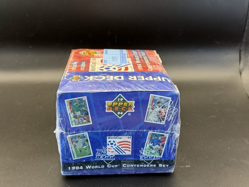 The Upper Deck 1994 World Cup Contenders Set is a collection of sports trading cards featuring soccer players from the FIFA World Cup. Manufactured by Upper Deck in the United States, the set includes standard-sized cards made of card stock. The base set includes original cards in English, making it a sought-after item for collectors of sports trading cards from the 1994 season. While the cards are not autographed, they are still licensed by Upper Deck, adding to their authenticity and value for fans of soccer memorabilia.