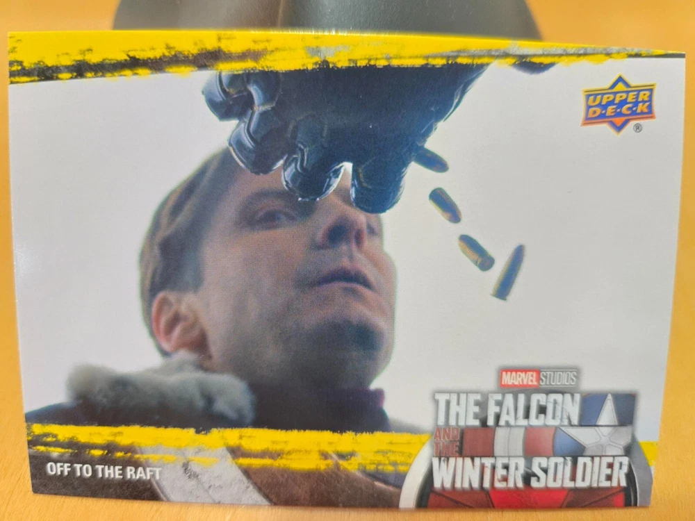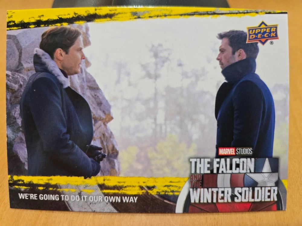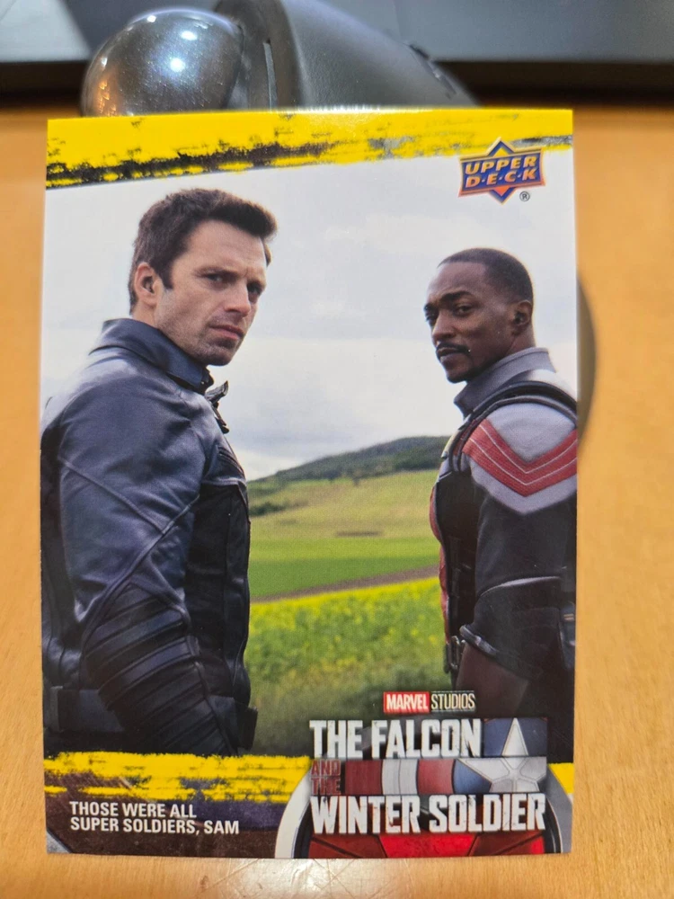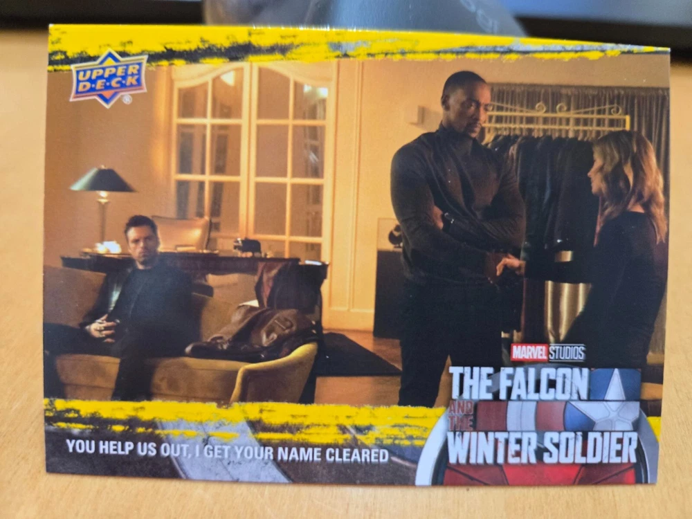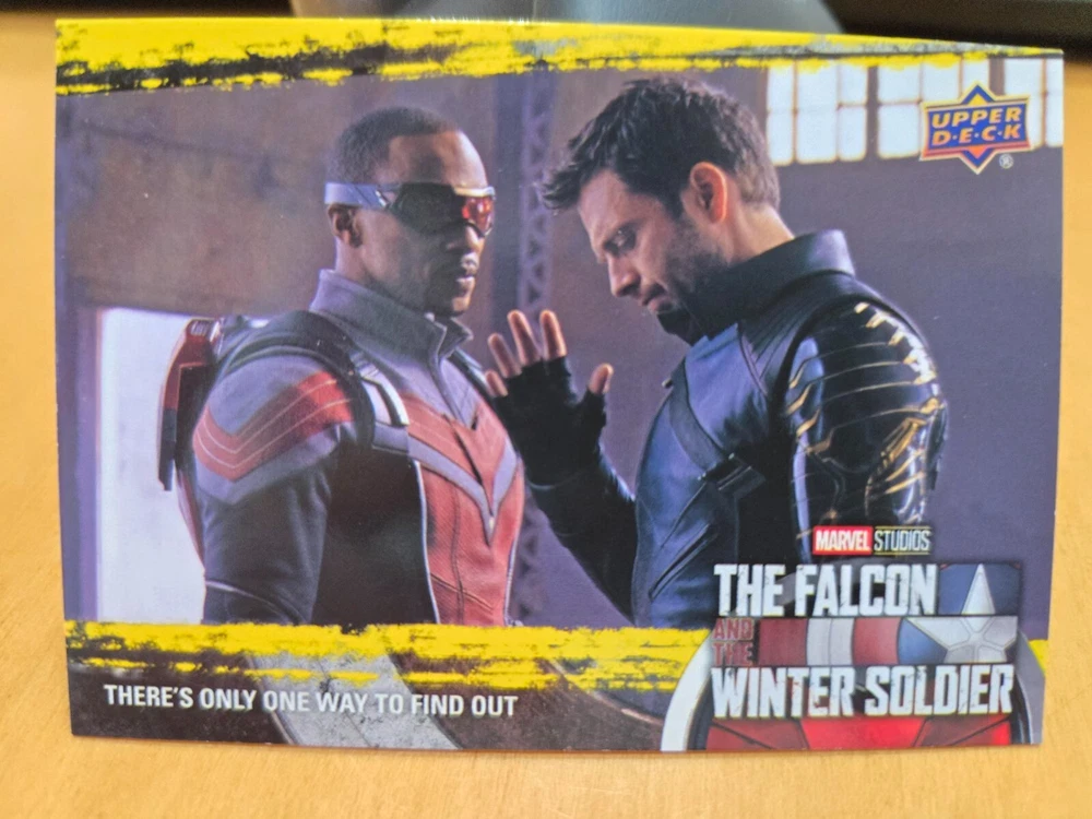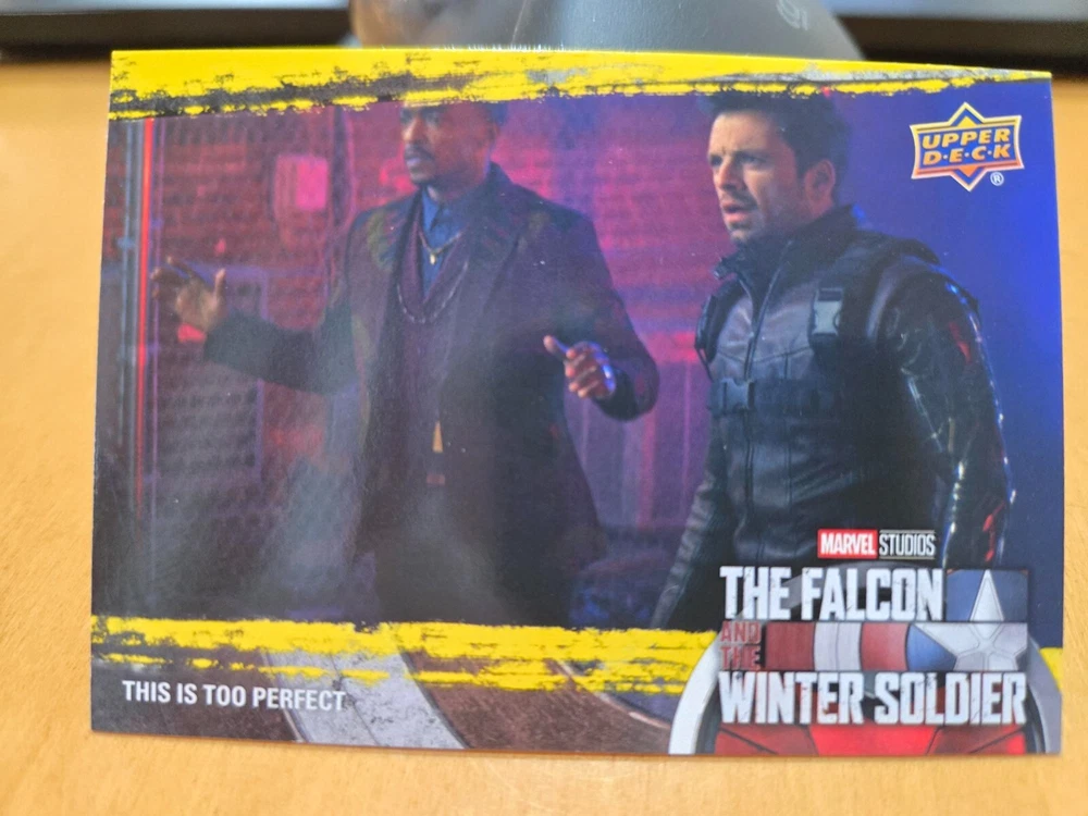 This Upper Deck Falcon Winter Soldier Yellow Parallel card is a must-have for collectors! The vibrant yellow border makes it stand out, and the artwork is crisp and detailed. Perfect for Marvel fans looking to add a unique piece to their collection. Highly recommended!