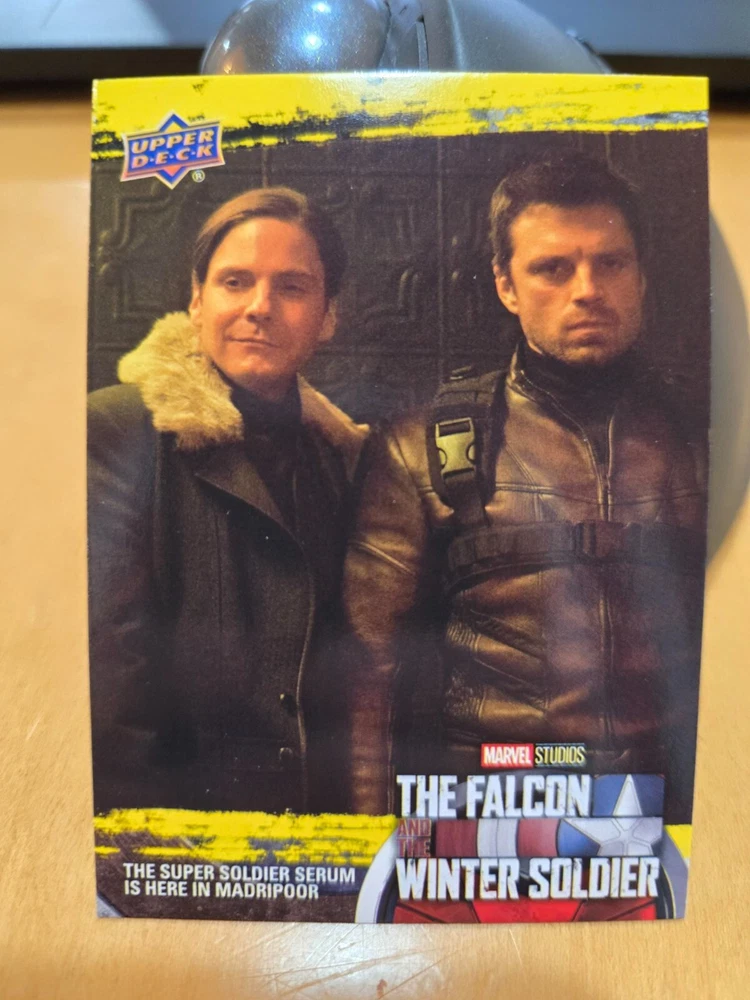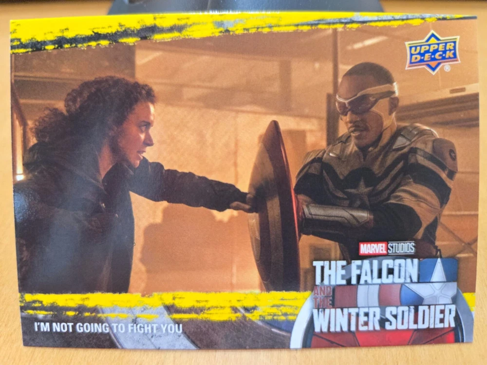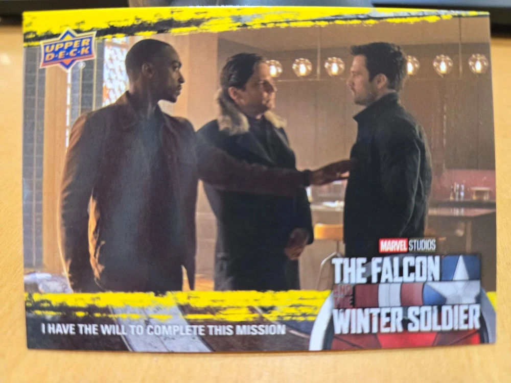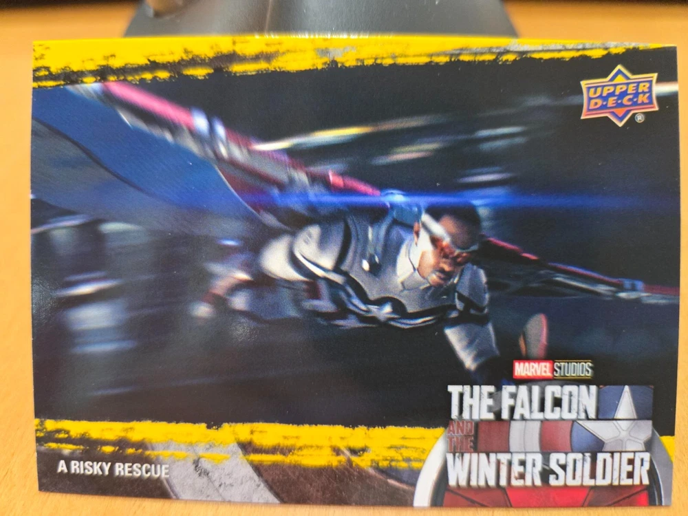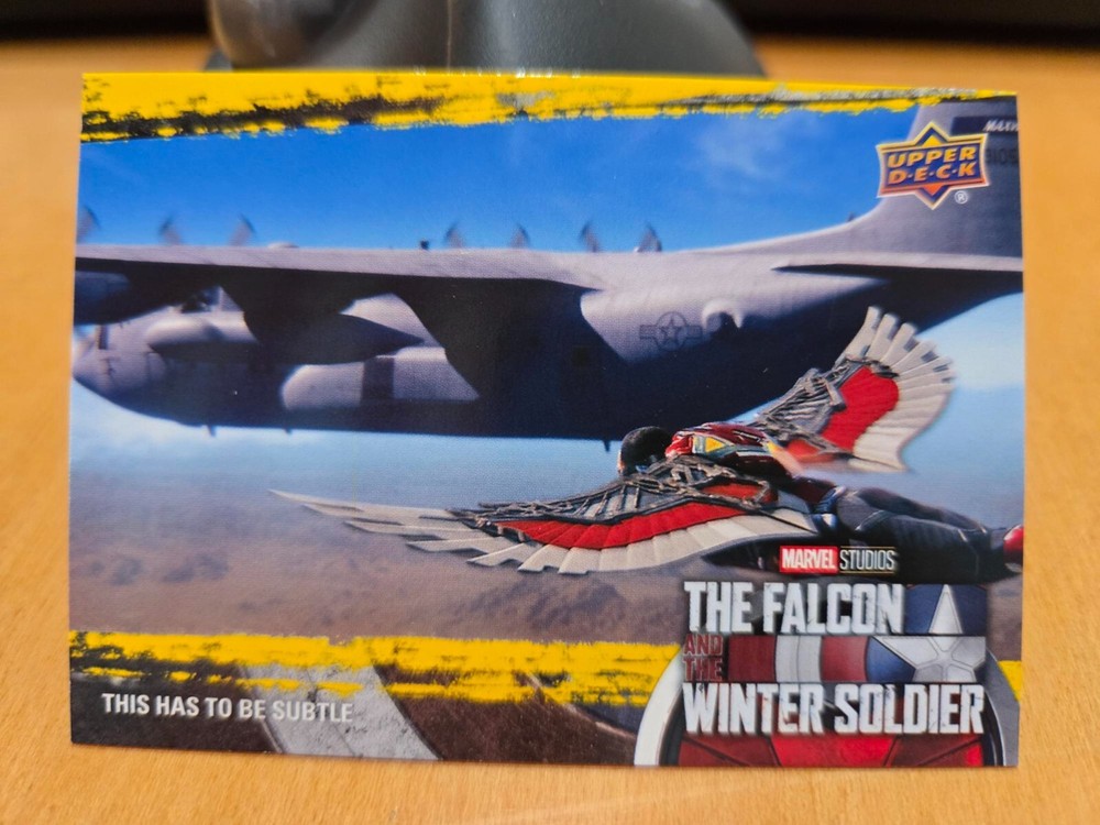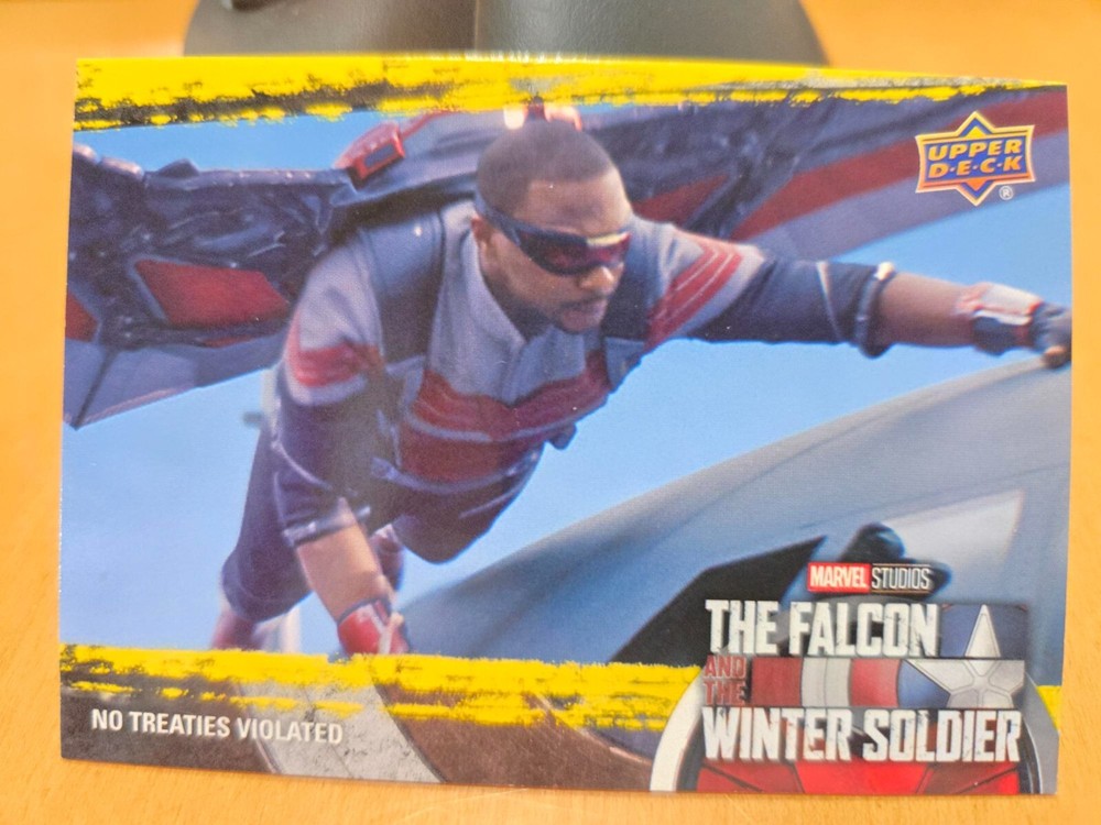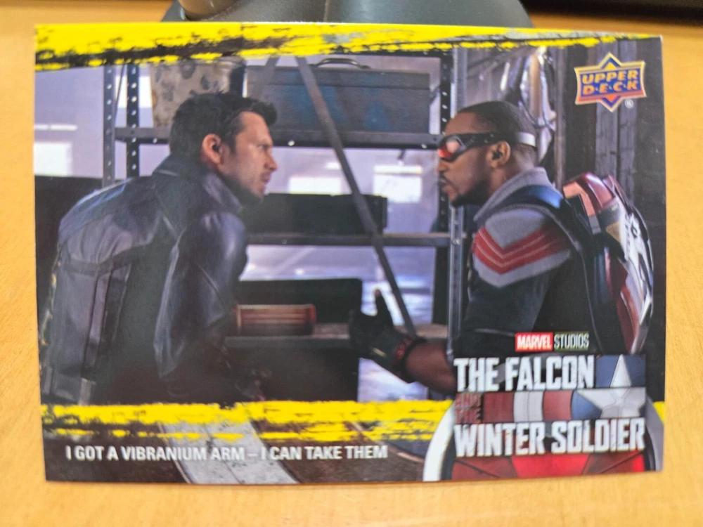This Upper Deck Falcon Winter Soldier Yellow Parallel card is a must-have for collectors! The vibrant yellow border makes it stand out, and the artwork is crisp and detailed. Perfect for Marvel fans looking to add a unique piece to their collection. Highly recommended!