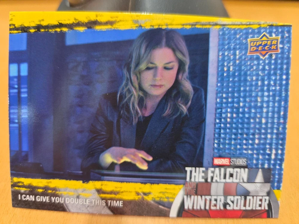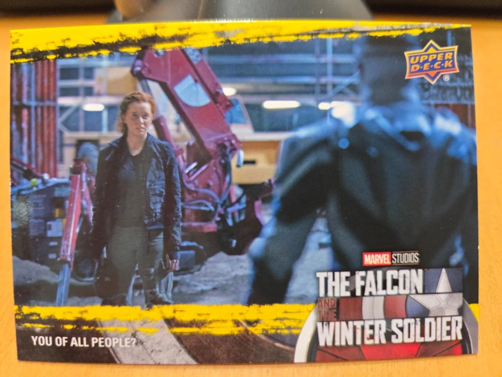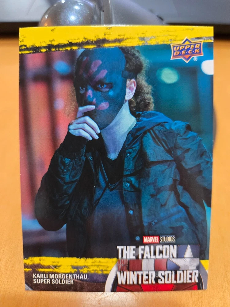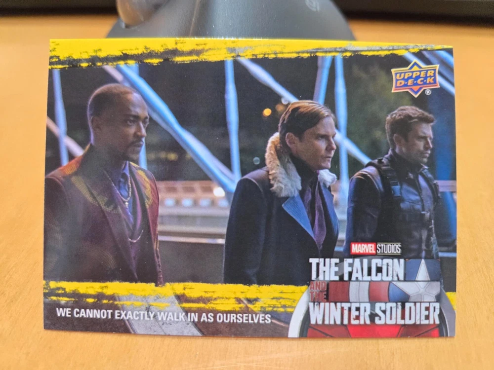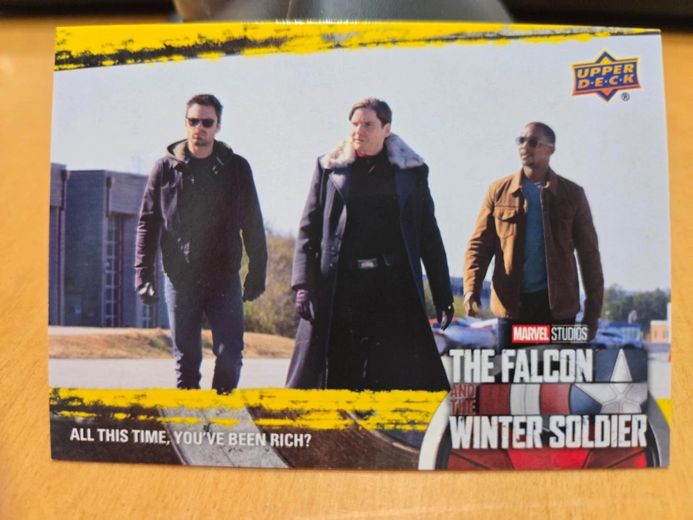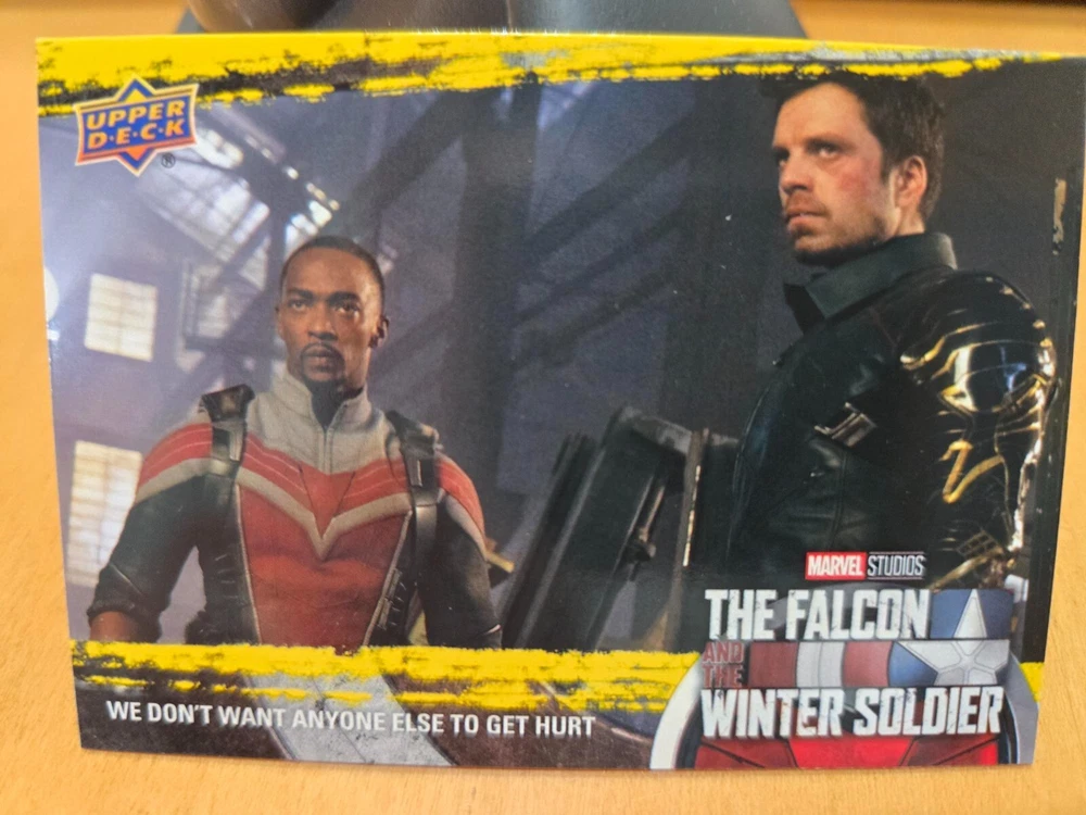 This Upper Deck Falcon Winter Soldier Yellow Parallel card is a must-have for collectors! The vibrant yellow border makes it stand out, and the artwork is crisp and detailed. Perfect for Marvel fans looking to add a unique piece to their collection. Highly recommended!