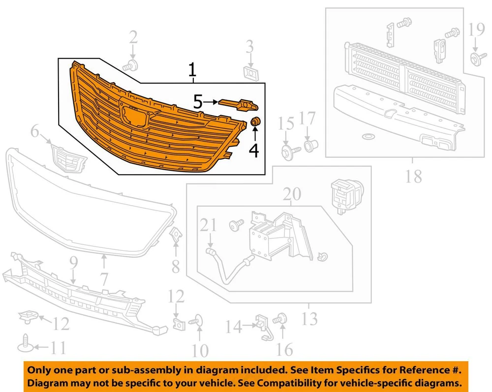 Store Home About Us Customer Resources Feedback Contact Us Upper Grille 23349901 Fits 16-18 CT6 Plug-in Hybrid 2839496 Schram Auto - Grille Section - 90 Day Warranty Description Maintain Your Vehicle's Style with a Distinctive Grille Section! Schram Auto and Truck Parts - Grille Section Discover the perfect Grille Section to maintain or enhance your vehicle's aesthetics. Our range of grille sections offers versatility and style, ensuring your vehicle looks great. Ensure you make the right choice by referring to our 'FITMENT GUIDE' and 'Conditions and Options' sections to select the correct grille section for your vehicle. Remember, don't rely solely on images when deciding. Fog lamps are not included. Normal use might result in minor scuffs, scratches, and rock chips. Please note that the paint finish is not guaranteed . Anticipate that repainting might be necessary to achieve a perfect match. If you have inquiries, reach out to us. While we're not a professional body shop, we're here to assist. This item is designed for professional body shops. If you're not one, consulting a professional is advisable for advice on fitment and damages. Understanding Abbreviations and Fitments Here are some common abbreviations you might encounter: LWR = Lower / Bottom Grille Section - does NOT include fog lamp LH = Left Hand / Driver Side Grille Section RH = Right Hand / Passenger Side Grille Section NTO = New Take-Off Use the provided part number, pictures, and description to ensure the grille section fits your vehicle. Pictures are helpful, but they shouldn't be the sole basis for your decision. Your Questions Matter If you're uncertain about any aspect, ask us directly on eBay or give us a call. Chad, our dedicated expert, is available to provide the information you need for a confident choice. Repair, maintain, or elevate your vehicle's appearance with a high-quality Grille Section from Schram Auto and Truck Parts, Inc. Begin your style journey today! Vehicle 2018 CT6 Mileage 45000 Part Grade A What's this? Conditions UPPER,CHRM,BLK,W/CAM,000 Fitment Guide This item will fit the following vehicles / applications: CT6 16 upper, Premium, w/pre-crash system (opt UGN) CT6 17-18 upper, Plug-In Hybrid R# 2839496 Stk# FB0404 Holl# 104-02779 More Parts for 2018 CT6 » More Parts from this exact vehicle. » Accessories Brakes and suspension Cooling Systems Electrical and Lighting Engine and Drivetrain Exterior Parts & Sheet Metal Interior Parts Wheels and Tires Customer Service Payments Shipping International Returns FAQs Contact Us Quick Links Store Home About Us Feedback