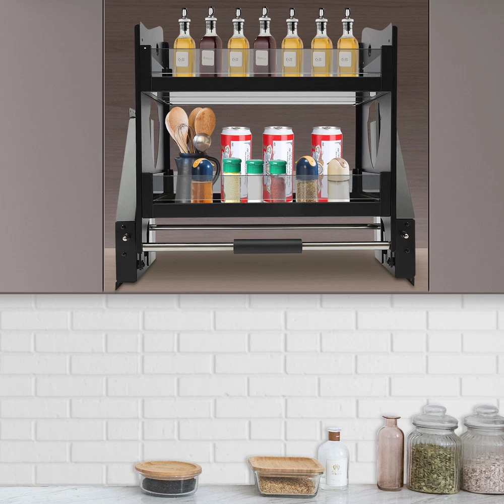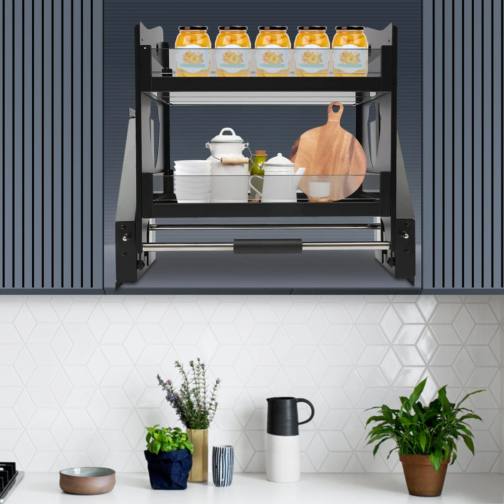 Upper Kitchen Pull-Down Cabinet Shelf Organizer 24-Inch Wall Storage