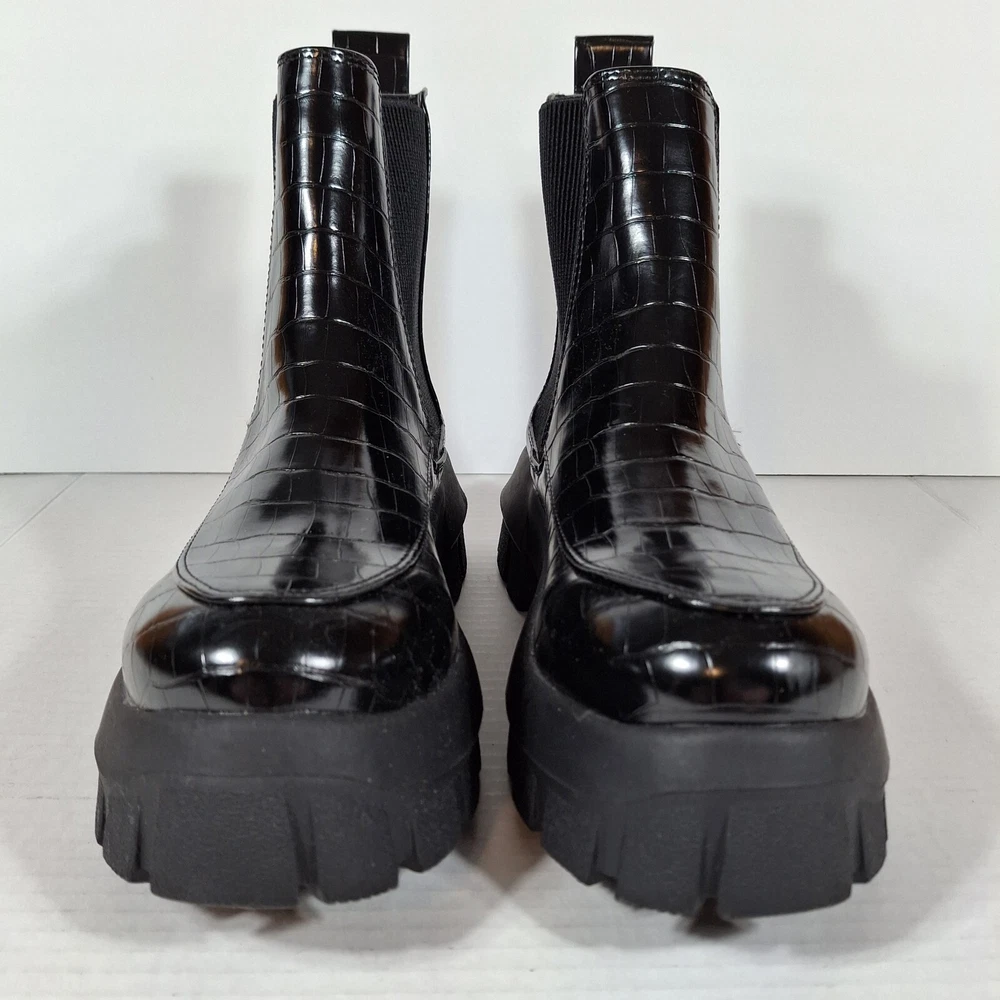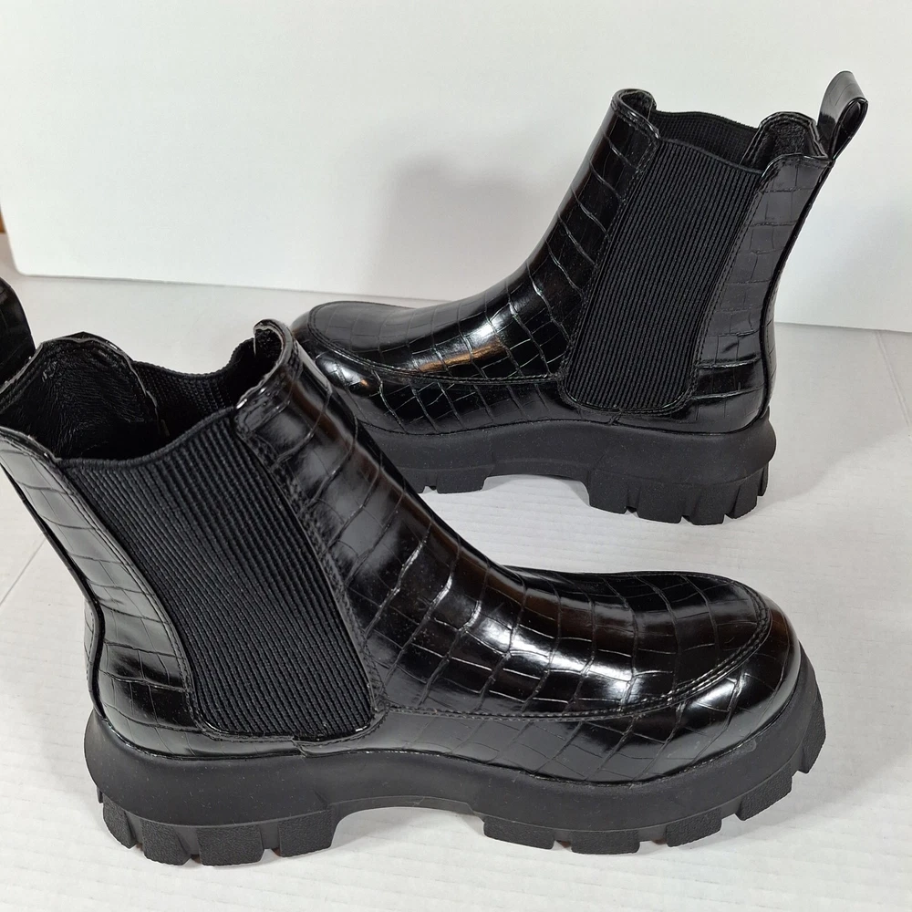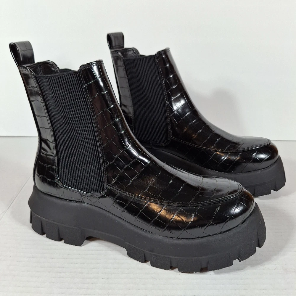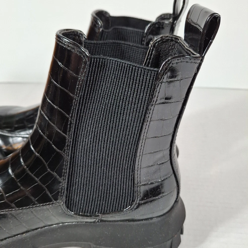 Urban Outfitters Eden Chelsea Boot 8 Black Crocodile Embossed Chunky Y2K Pull On