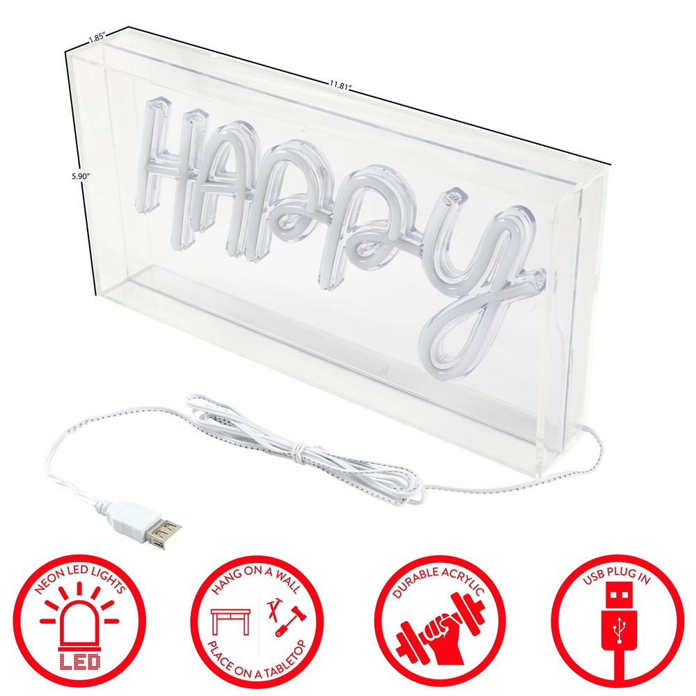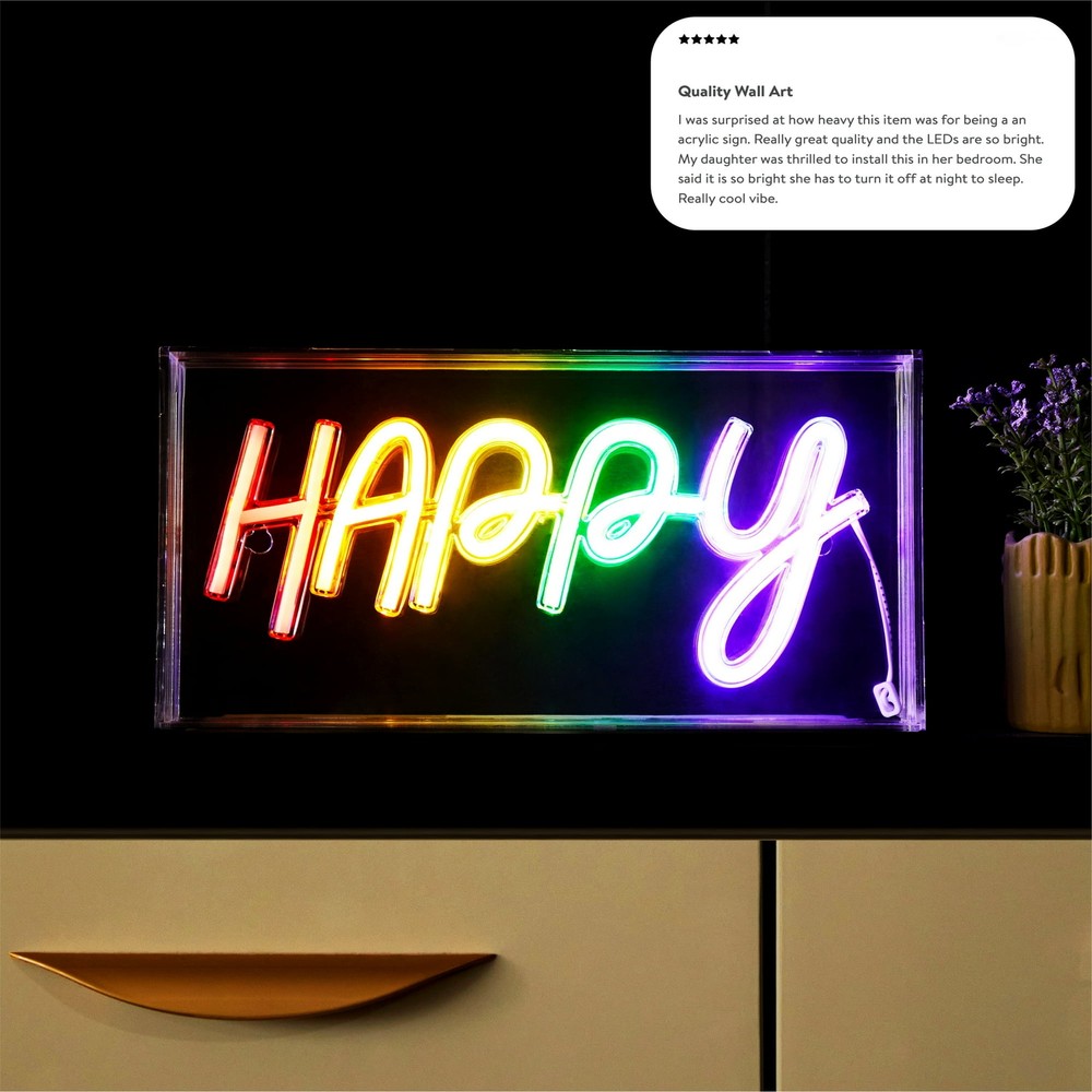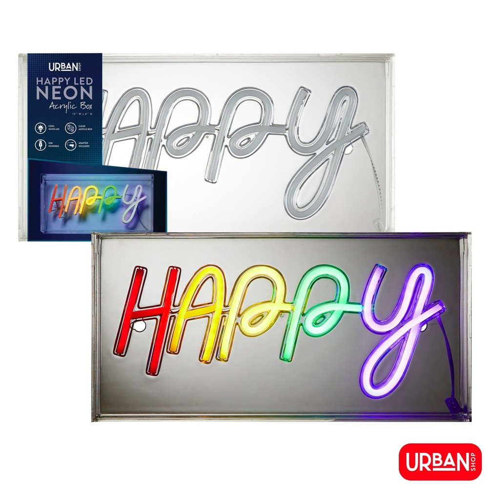 Urban Shop LED Neon Rainbow Happy Light-Up Acrylic Display Box