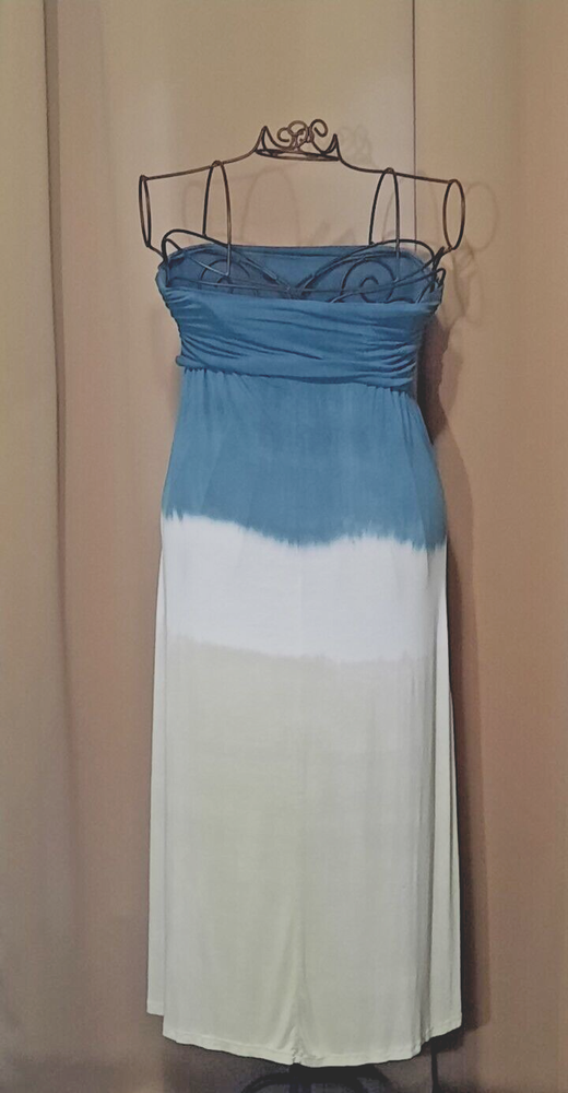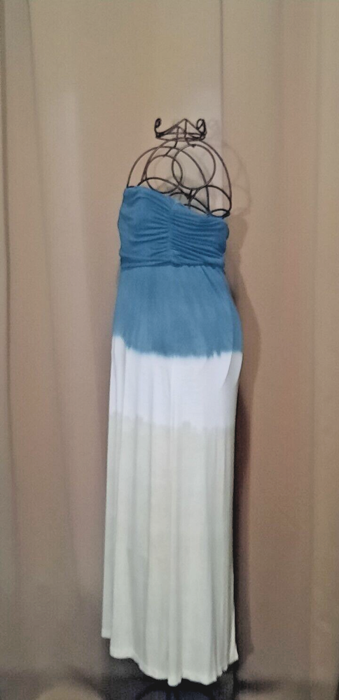 This stunning Urban X maxi dress is perfect for any occasion, whether it's a party, vacation, or just a casual day out. The dress features a unique tie-dye pattern , with soft and stretchy spandex and rayon material for a comfortable and flattering fit. The sleeveless design and layered accents create a festive and stylish look, while the ruched details and long dress length 43 " add a touch of elegance and sophistication. Whether you're going for a bohemian or hippie vibe, or just a sexy and designer look, this dress is the perfect choice. Available in size L, this dress is a must-have for any fashion-forward woman's wardrobe.