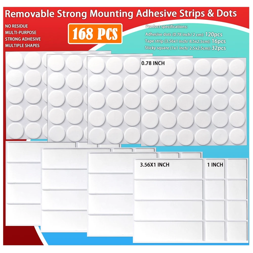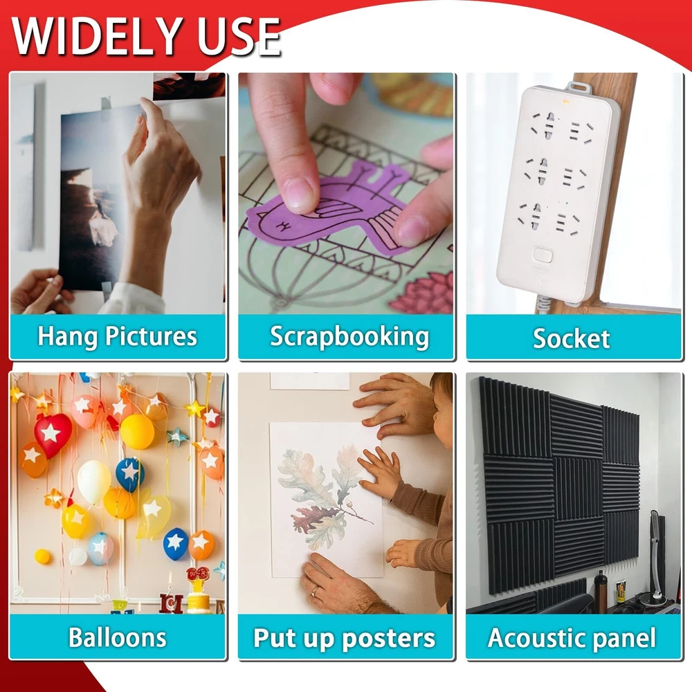 Strong two sided mounting adhesive tape: These adhesive strips, squares, and dots are very suitable for hanging and pasting small and medium sized objects. They are ductile and have excessive adhesion. The quantity is very large, and combined use can exert greater power Clear removable no residue: These acrylic double sided tapes are transparent and thin, and will not leave glue and traces when removed, and will not pollute your walls and objects. Easy to use, no scissors required, 2 sided tape heavy duty For hanging stuffs, making crafts, party decoration: Multipurpose adhesive tape, you can use it to hang pictures, posters, balloons, socket; Stick art crafts, mirrors, and carpets. Tape for home, office, school, party, wedding, decoration and organization Keep items secured: Provide fixation and protection for your small items, such as car accessories, charger, power sockets, light strips, and desk calendars. These small things often fall and move, so using this mounting squares to stick them is a good idea NOT for Painted Walls: This sticky strips adhesive strip are suitable for smooth and flat surfaces such as plastic, glass, metal, fabric, wood, ceramic tiles. It should be noted that removing it may damage your painted wall, so careful consideration should be given when using it on painted walls
