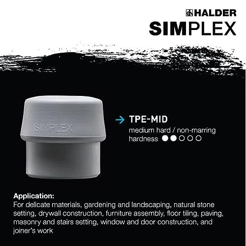 Halder USA - Simplex Mallet with Soft Blue Rubber and Grey Rubber Inserts (3013.03) SIMPLEX soft-face mallet with the insert combination of TPE-soft (blue, soft, no marring) / TPE-mid (grey, medium hard, no marring). Cast iron housing with integrated handle protection sleeve and excellent break resistance. High-quality, vibration-damping, and ergonomically shaped wooden handle; grip area with double coat of varnish (resistant to dirt). All parts can be replaced / retrofitted, resulting in great savings in cost and resources. Available in sizes of D30mm to D60mm. "The Halder Simplex Mallet is the signature hammer in the Halder line. This patented hammer has a "split housing' design that is made from heavy duty cast iron. This split housing allows it to be take apart and the components can be replaced when worn or damaged. It solidly locks in the variety of replaceable insert faces. The faces are made of several different durable materials; from soft rubber to medium hard plastic to hard nylon. Halder also offers aluminum and copper faces for hitting very hard surfaces such as hardened steel (copper faces are only compatible with Halder Simplex with reinforced cast iron housing; call for details). Shipping We offer FREE shipping on all orders! We ship within Three business days of payment, usually sooner. We use a selection of shipping services such as UPS, FedEx, USPS etc. We only ship to the lower 48 states, no APO/FPO addresses or PO Boxes allowed. Local pickups and combined shipping options are not provided at this time. International buyers – please note: Import duties, taxes, and charges aren't included in the item price or postage cost. These charges are the buyer's responsibility. Please check with your country's customs office to determine what these additional costs will be prior to bidding or buying. Order Cancellation Policy * Order Cancellation Policy ** You can return a product for up to 30 days from the date you purchased it. 1. The seller reserves the right to cancel the special case only due to eBay cancellation fee. 2. The decision of seller is the final. 3. The seller will respond to the cancellation request within 2 business days. Please wait for the result of cancellation. 4. In case the cancellation is not completed by some reasons, the buyer can follow the options below to get the refund. 4.1 The buyer can reject the item when it arrives. 4.2 The buyer can send the item back to the seller within 30 days If the buyer receives item (USA Shipment ONLY). The seller will provide the FREE return label to the buyer when the buyer opens " Return Item" case on eBay by using the reason as "Change my mind" ONLY. 5. When buyer has placed the order. The order will be processed and completed by automatic warehouse system within 5 minutes. In case that buyer sends the cancellation request after 5 minutes of placing the order, the request will be rejected. **Sending direct message to cancel the order is not allowed for every case.* Return Policy - If buyer would like to return the items for refund or replacement, please CONTACT SELLER to receive the free return label from seller. The refund or replacement will be processed with the tracking number of return label which is provided by seller only. The other ways of return which are not approved by seller will not be processed for the refund or replacement. Return You can return a product for up to 30 days from the date you purchased it. Any product you return must be in the same condition you received it and in the original packaging. Please keep the receipt. Payment We accept payment by any of the following methods: eBay Payments Please pay as soon as possible after winning an auction, as that will allow us to post your item to you sooner! Feedback Customer satisfaction is very important to us. If you have any problem with your order, please contact us and we will do our best to make you satisfied. Contact Us If you have any queries, please contact us via ebay. We usually respond within 24 hours on weekdays. Please visit our eBay store to check out other items for sale! Thank you for shopping at our store.