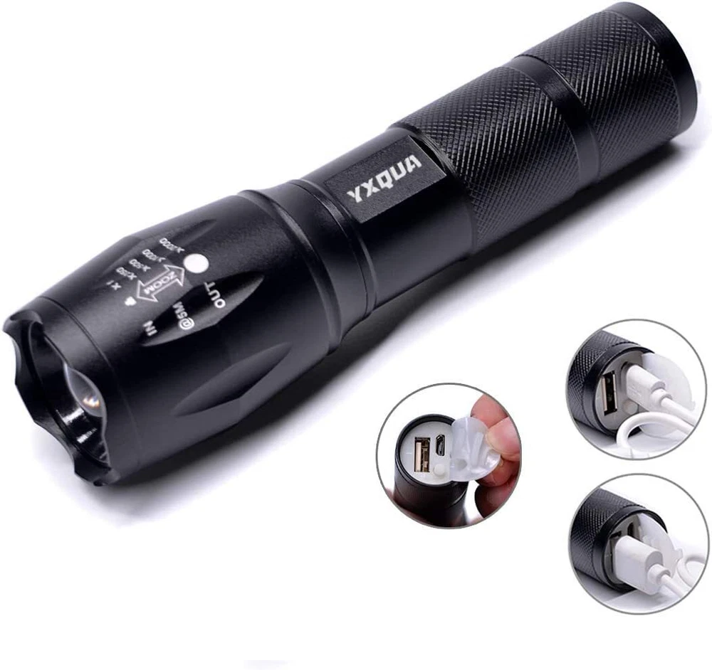 YXQUA USB Rechargeable Flashlights, 8381 High Lumens Lights, 3 Modes, Zoomable & Waterproof Super Bright Flash Light for Camping, Hiking, Emergency Hurricane(2 Pack Emergency Power Supply - USB Rechargeable Flashlight Built-in 2000MAH high-capacity rechargeable battery with the latest rechargeable design, once fully charged, it can work for up to 4 hours and can also be used as a power source to charge your phone for emergencies. Super Bright - YXQUA LED powerful flashlights is equipped with an upgraded chip that produces up to 1000 lumens of ultra-high output and a life span of up to 50,000 hours. Zoomable & 3 light modes - Three useful settings, high brightness; low brightness; strobe (SOS) with adjustable focus for close or long range, as a spotlight that throws a bright beam 600 feet ahead, or as a compact, small floodlight that brings light to people. Waterproof & Tough - The tactical flashlight is designed to be waterproof to IPX6 for use in heavy rain, and the military-grade aluminum body and 10-foot drop impact resistance can withstand rough handling. Portable Size - Non-slip, comfortable handle makes the flashlight always in your hand, the best pocket flashlight for outdoor activities, camping, hiking, fishing and home use. flashlight * Order Cancellation Policy ** You can return a product for up to 30 days from the date you purchased it. 1. The seller reserves the right to cancel the special case only due to eBay cancellation fee. 2. The decision of seller is the final. 3. The seller will respond to the cancellation request within 2 business days. Please wait for the result of cancellation. 4. In case the cancellation is not completed by some reasons, the buyer can follow the options below to get the refund. 4.1 The buyer can reject the item when it arrives. 4.2 The buyer can send the item back to the seller within 30 days If the buyer receives item (USA Shipment ONLY). The seller will provide the FREE return label to the buyer when the buyer opens " Return Item" case on eBay by using the reason as "Change my mind" ONLY. 5. When buyer has placed the order. The order will be processed and completed by automatic warehouse system within 5 minutes. In case that buyer sends the cancellation request after 5 minutes of placing the order, the request will be rejected. **Sending direct message to cancel the order is not allowed for every case.* Return Policy For the return case - If buyer would like to return the items for refund or replacement, please CONTACT SELLER to receive the free return label from seller. The refund or replacement will be processed with the tracking number of return label which is provided by seller only. The other ways of return which are not approved by seller will not be processed for the refund or replacement. SHIPPING Domestic Buyers - We ship within 3 business days of payment, usually sooner - We offer FREE shipping on all orders! - We only ship to the lower 48 states, no APO/FPO addresses or PO Boxes allowed - We have confidence in our products, but if you are not fully satisfied please contact us within 30 days of purchase and you will get full refund. International buyers – please note: Import duties, taxes, and charges aren't included in the item price or postage cost. These charges are the buyer's responsibility. - Please check with your country's customs office to determine what these additional costs will be prior to bidding or buying.