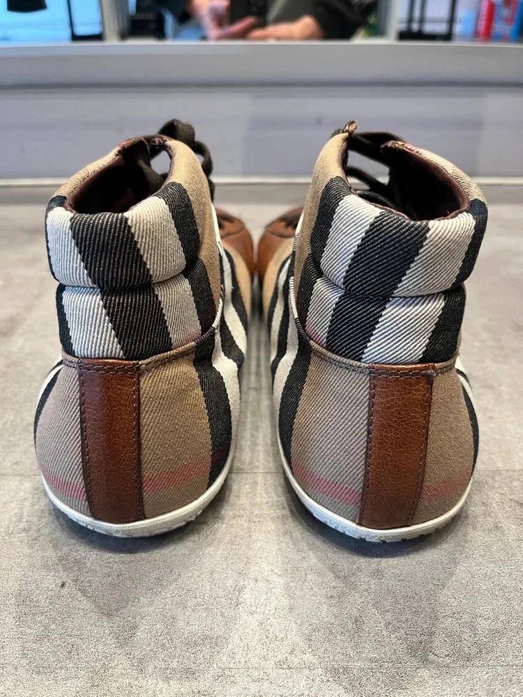 Used Burberry Brown Canvas High Top Leather Sneaker 0D06D6B3 Size 13 SHIPS FAST