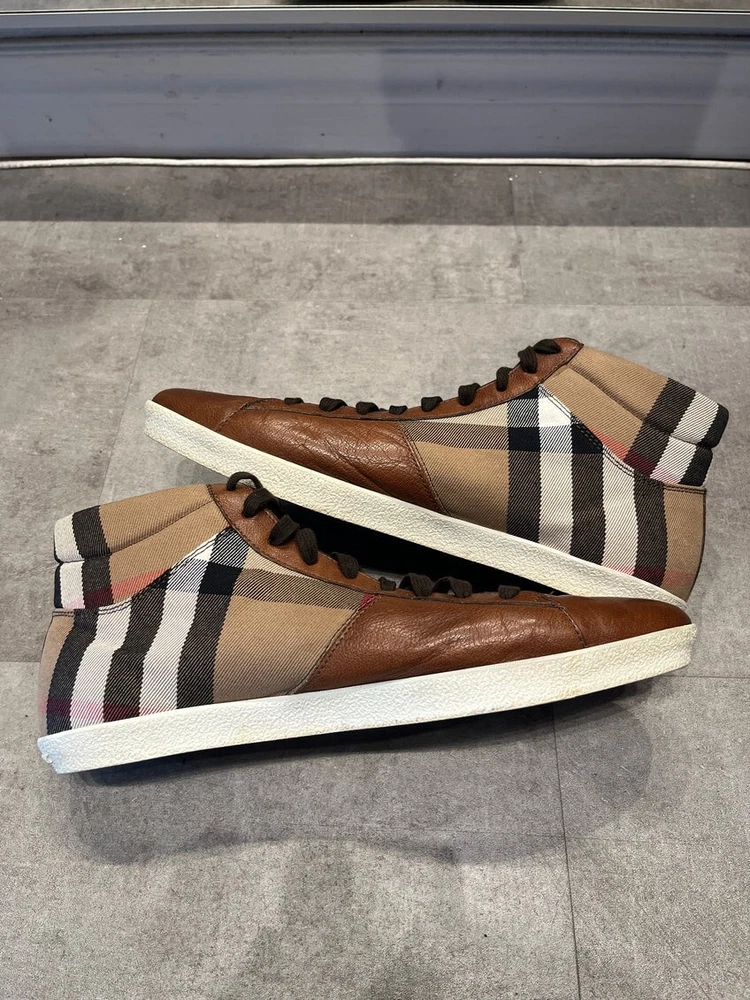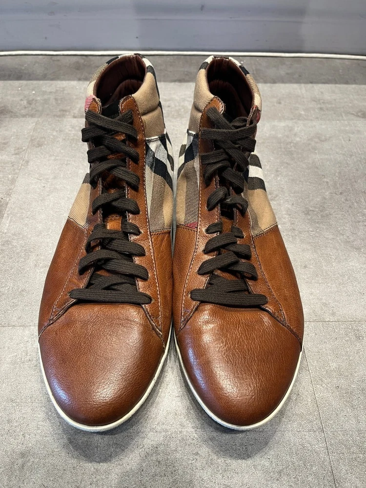 Seller Notes: “Preowned. Judge Condition Based Off of Photos.” Department: Men Brand: Burberry Type: Casual Pattern: Check Season: Winter, Summer, Spring, Fall EU Shoe Size: 40 Occasion: Activewear, Casual, Travel, Workwear US Shoe Size: 13 Color: Brown Outsole Material: Leather Upper Material: Leather Style: Sneaker