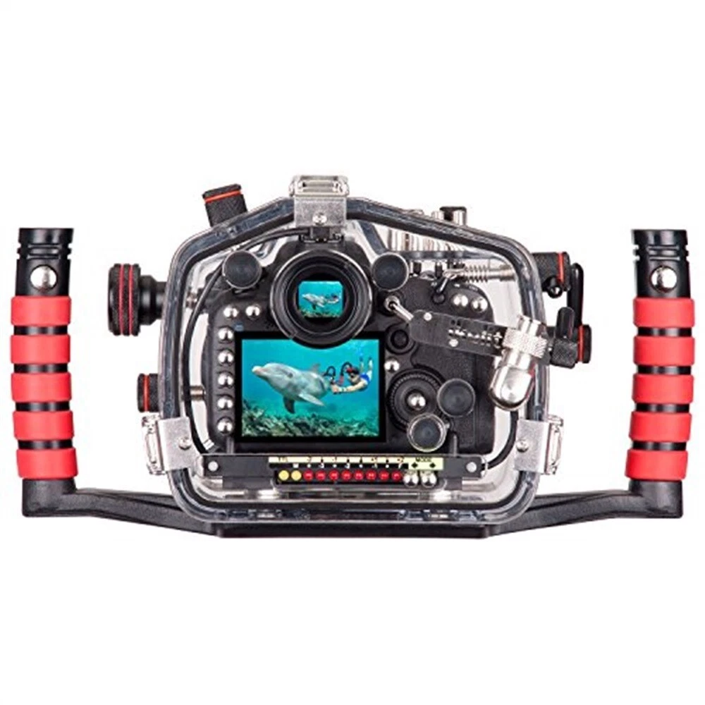 TTL Exposure: Other housings simply waterproof your camera. An Ikelite TTL housing improves your photos. TTL or "Through-The-Lens" flash metering means the camera controls flash duration to properly expose an image. Our built-in proprietary circuitry tells your camera that a TTL external flash is attached, allowing the camera to adjust exposure more accurately than with slave TTL strobes. Fiber optic slave flash units require the camera's flash to fire every time. This creates a shutter lag as you wait for the camera's flash to recycle in between shots, drains your camera's battery life, and builds up heat inside of the housing. Ikelite electronics translate direct electrical impulses from your camera, triggering your strobe and precisely adjusting its power without the need to fire the camera's flash. This eliminates the slave TTL strobe issues of signal interference, inconsistent exposure due to weak fiber optic transmission and false triggering caused by light rays bouncing off the water's surface or your buddy's flash going off. Exposure adjustments directly through the back of the housing put the perfect shot within reach every time. Tweak your TTL exposure or take total manual control without taking your hand off of your housing. Controls on the back of the housing acts as a remote control for compatible Ikelite DS-series strobes. Access plus/minus exposure compensation in TTL mode, plus manual power settings in half-stop increments. Lens Port System: This housing features our legacy Four Lock (FL) port system. Lens ports can be removed and replaced quickly and easily. This housing accepts a variety of ports to accommodate zoom, macro, and wide angle lenses. Lens port sold separately. Ergonomics: An over-sized knob smoothly engages our unique system of universal zoom gears. We provide two zoom sets with each housing, one for use with most popular larger diameter zoom lenses and a second designed for use with smaller diameter zoom lenses. Both sets are lightweight and easy to install with no modification to the lens required. A variety of dome and flat ports attach with four locking latches for maximum security and quick changes between dives. This housing includes a balanced aluminum tray with our signature quick release handles for easy attachment and removal of external lighting. An aluminum 1/4-20 threaded top mount provides an additional attachment point for lightweight accessories. Construction: Special polycarbonate blends allow us to create an extremely strong yet clear and lightweight enclosure. We believe there's no substitute for inspecting the actual o-ring seal once your housing is closed. Our signature clear construction lets you see that the housing is watertight and dry before you enter the water, and provides full view of the camera while you're diving. Polycarbonate is fundamentally corrosion-resistant for easy maintenance year after year. Like every Ikelite product, our housings are designed, built, and tested in the USA. We use locally sourced, top-grade materials. Our housings are built by hand and individually tested for fit, function and waterproof integrity. The average assembly technician is a certified scuba diver and has over 16 years of experience building Ikelite products. We back our products with over 50 years of experience and the most accessible and responsive customer service staff in the dive industry. This housing requires the addition of a compatible lens port for waterproof operation. Lens port not included.