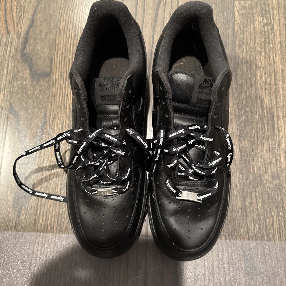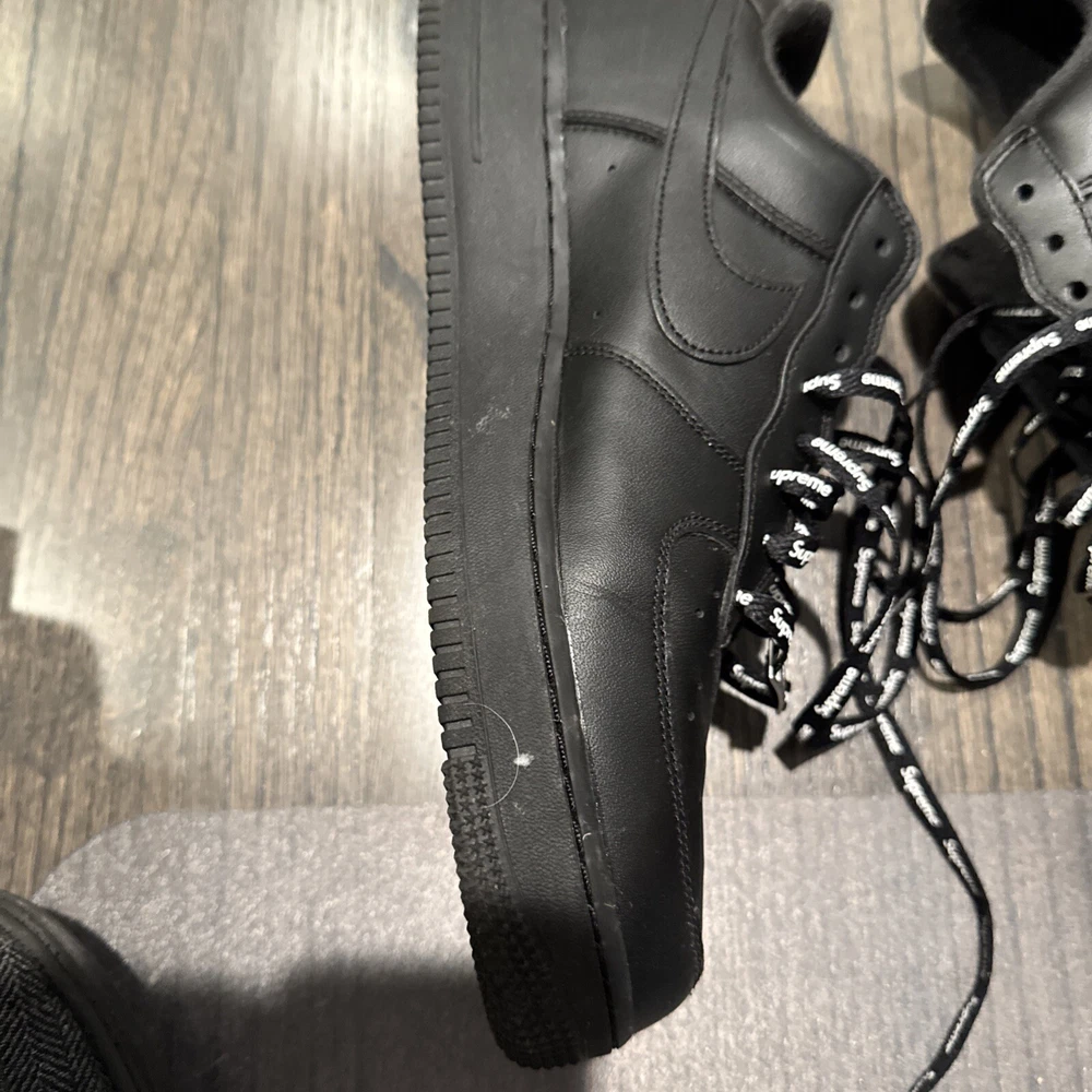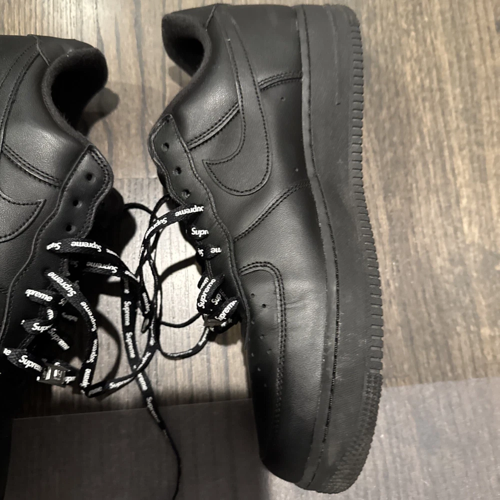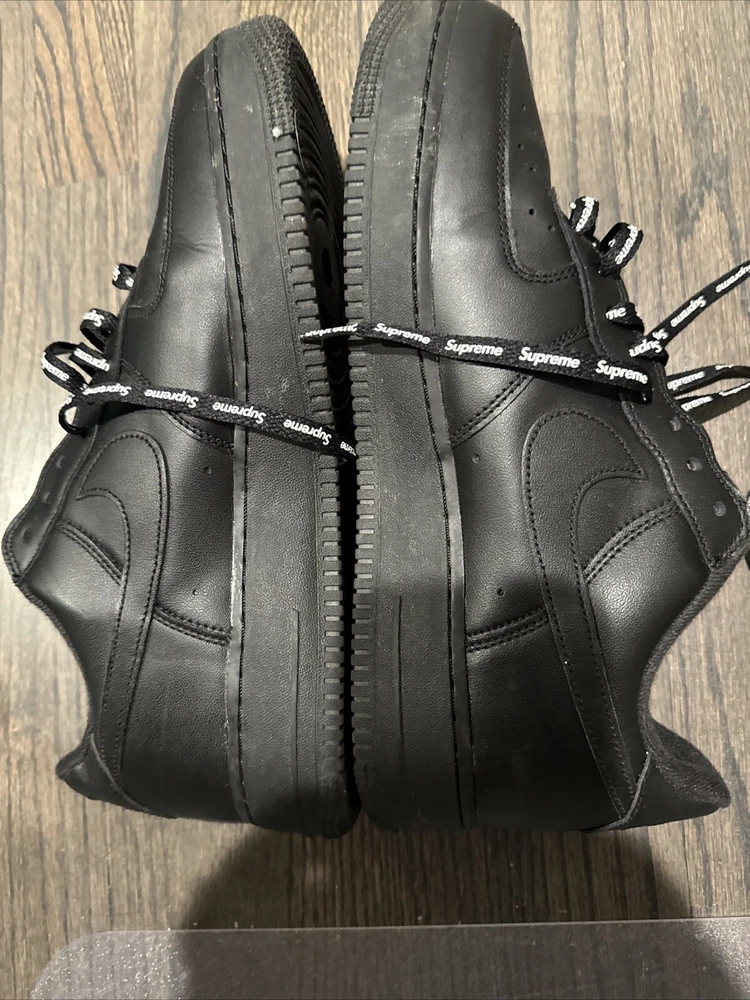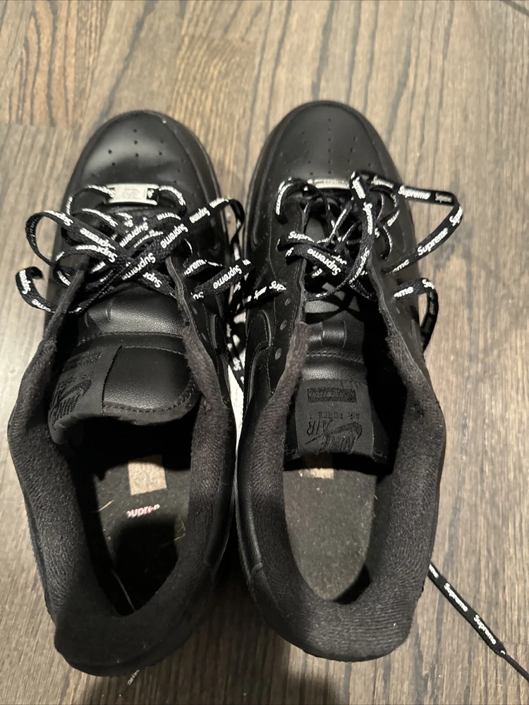 Elevate your sneaker game with these Nike Air Force 1 Low SP Supreme Black CU9225-001 in size 11. These sneakers are perfect for any athletic activity, from boxing to running. The low top shoe shaft style and sleek black color make them a stylish addition to any wardrobe. The Nike Air Force 1 model has a rich history, and this 2020 release is no exception. With a focus on performance and activity, these sneakers are sure to impress. The style code CU9225-001 and product line Nike Air Force add to the value of these shoes. Don't miss out on this opportunity to add a great pair of sneakers to your collection.