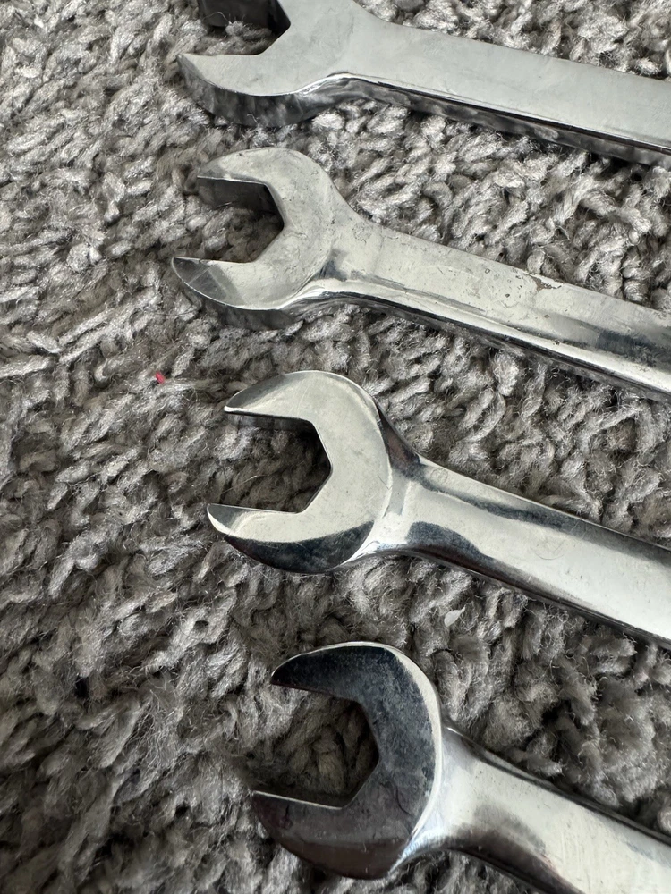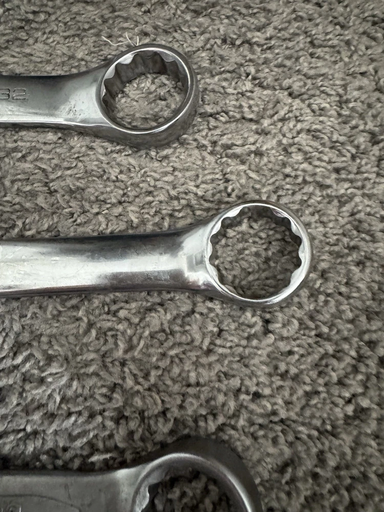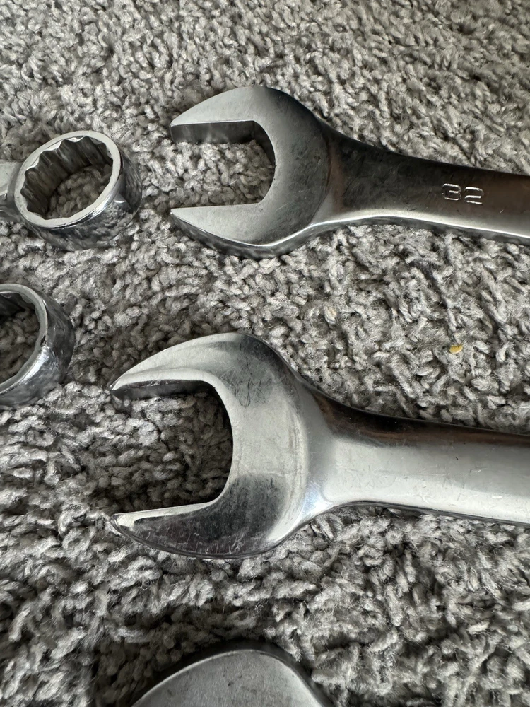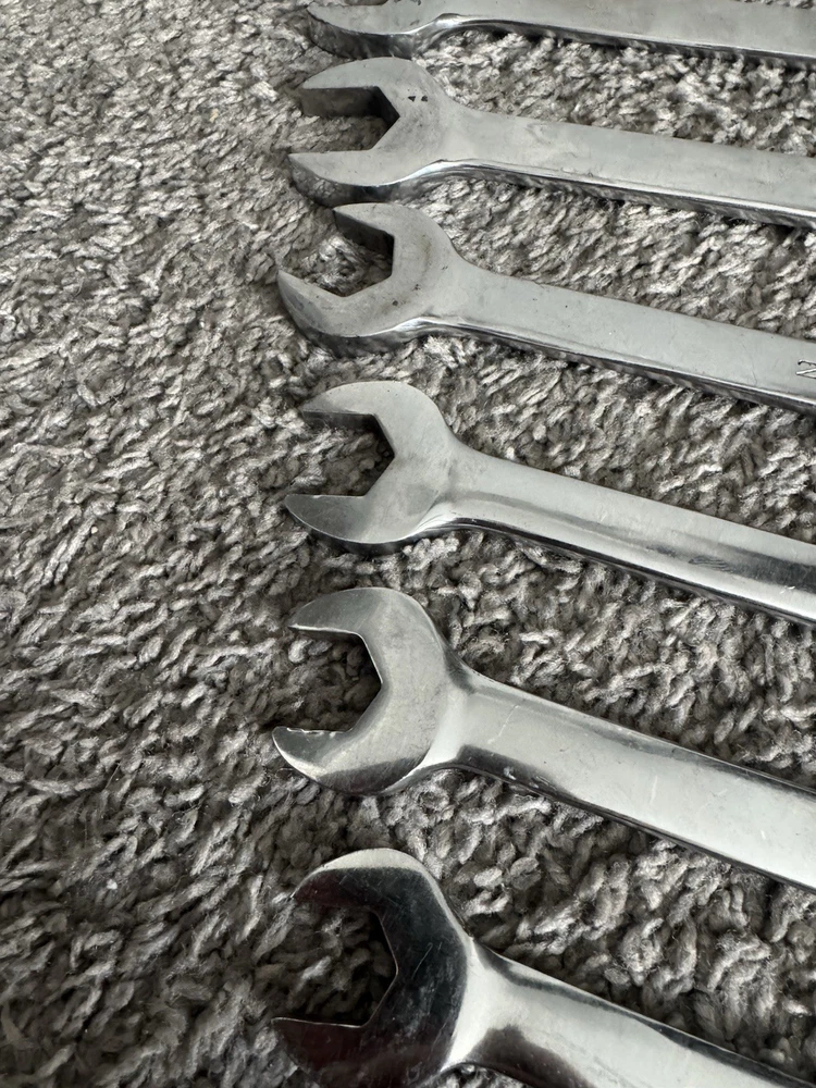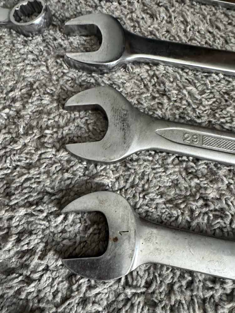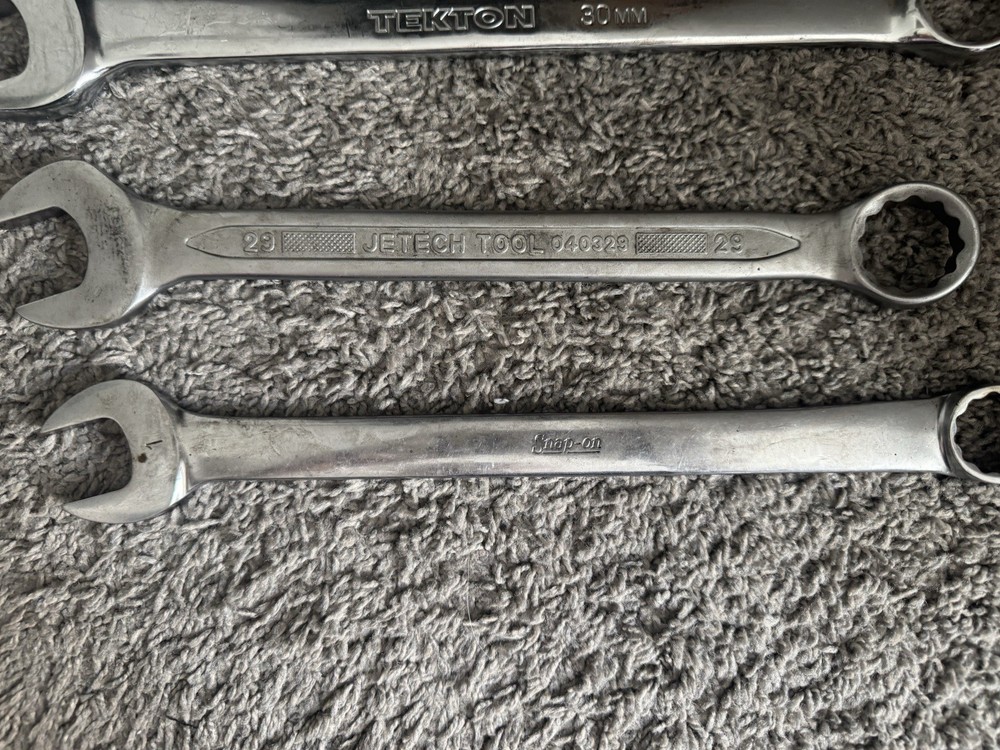 Used wrenches. Have long handles wrenches that are Pittsburgh branded. 26mm, 24mm, 21mm, 19mm, 17mm, 15mm, 14mm, 12mm, 11m. Have regular wrenches in 32mm, 30mm, 29mm, and 1”. All comes together, not separate.