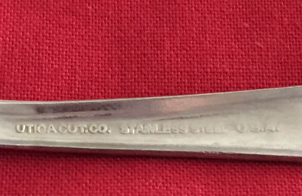 Manufacturer: Utica Pattern: Pretty Type: Stainless Steel Piece: Salad Fork Length: 6"