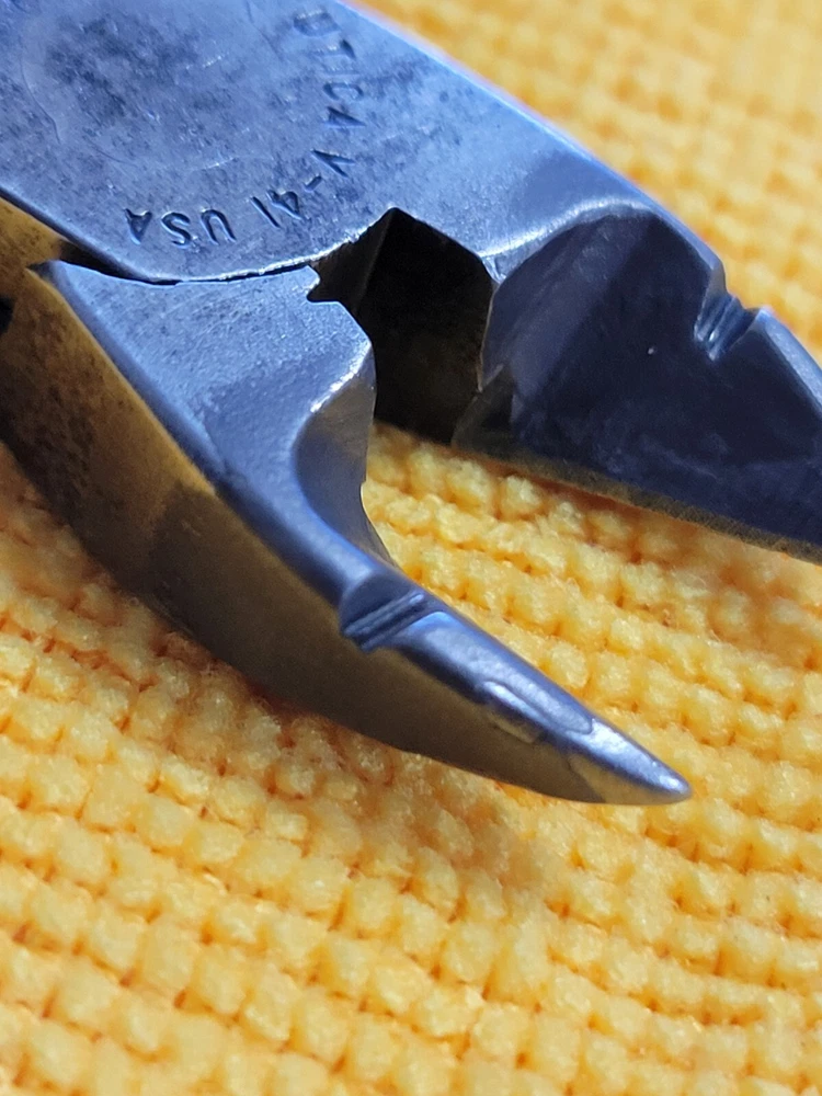 Crafted for precision and durability, these Utica Tools Side Cutting Pliers/Cutters are a must-have for any professional or DIY enthusiast. The 5-1/4" model V-41 is designed to deliver a superior cutting experience, ideal for handling wire and cable with ease. Made in the United States, these pliers reflect a commitment to quality craftsmanship.The robust construction paired with ergonomic design ensures comfort and longevity. Whether you're in the field or in a workshop, these Utica pliers are built to provide reliable service. Their versatility and the renowned Utica brand reputation make them a valuable addition to your tool collection. I gave these a quick wipe down and cleaning. I did not attempt to personally grind, file, sand or sharpen in any way.