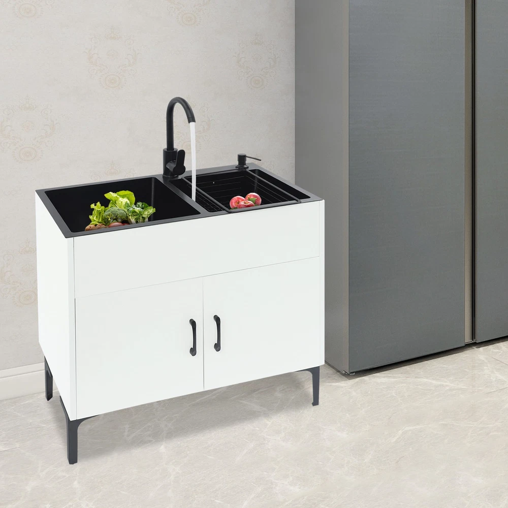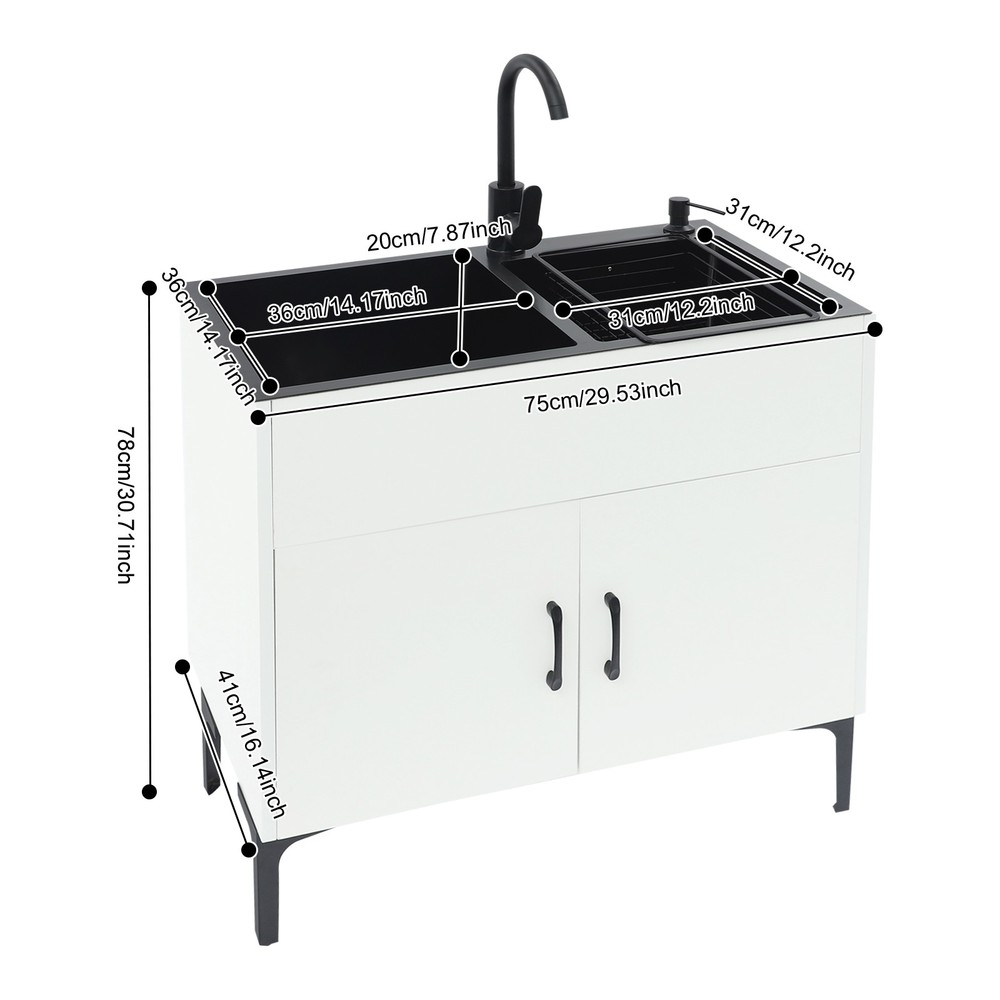 Utility Laundry Sink with Cabinet & Faucet for Kitchen/Bathroom/Restaurant/Hotel Application It is widely used in homes, farms, garages, laundry rooms, pet grooming stations, restaurants, bars, hotels, cafes, etc. Specification Color: White Style: Modern Shape: Rectangular Material: Stainless Steel, Bamboo Process: Nano Coating Assembly Required: Yes Mounting Type: Freestanding Load-bearing Capacity: About 25-30kg/55-66 lbs(For Reference) Sink Size: 36*36*20cm/ 14.17*14.17*7.87in, 31*31*20cm/12.2*12.2*7.87in Overall Size: 75*41*78cm/29.53*16.14*30.71in Sink: Gross Weight: 9.45kg/20.83 lbs Net Weight: 7.95kg/17.53 lbs Package Size: 78*45*25cm/30.71*17.72*9.84in Cabinet: Gross Weight: 14.8kg/32.63 lbs Net Weight: 13.7kg/30.2 lbs Package Size: 77*47*13cm/30.31*18.5*5.12in Package Included 1* Laundry Sink 1* Cabinet 1* Faucet 1* Drain Basket 1* English Instruction Manual Other Accessories for Assembly Notes Please make sure the size of this product meets your needs before ordering. Please note that the sink&accessories and the cabinet will be shipped in two separate packages. Please allow the slight color difference caused by the shooting light and 1-3cm error due to manual measurement, and make sure you do not mind before ordering. Payment Delivery details Terms of sales About us Contact us Payment We accept ebay payment 。 Fees such as import duties, taxes are not included in the item price or shipping costs. These charges are the buyer's responsibility. Delivery details Shipping: 2-9 working days to: USA Terms of sales We maintain high standards of excellence and strive for hundred percent customer satisfaction. Feedback is very important to us. We hope that you contact us immediately before you give neutral or negative feedback, so that we can address your concerns. It is impossible to address issues if we do not know about them! About us Your satis faction is our ultimate goal. We work hard to earn your trust and future business. Our certified technicians have tested each item before shipping. The unit comes with 1 year limited warranty on all manufacturing defects. a) If you receive a defective item, you may return it or ask for a discount. Please contact us within 14 days after you receive the package. b) What you returned must be intact and in its original packaging as re? u. Customer is responsible for shipping costs of the returned item. c) We will cover the cost of shipping back t with the shipping rate indicated in the registration page. We will send you a new unit or refund the full payment you paid. Thank you. Contact us Business Hour Business Hour: Monday To Friday: 8:30 AM to 5:00 PM (Beijing China time) Due to time zones, our reply to your questions may not be immediately. But within above working time, we will reply your email within 24 hours. If it's non-workdays, please kindly be patient and wait till Monday. Please contact us with ebay message. Please feel free to contact us if you have any questions. Monday To Friday: 8:30 AM to 5:00 PM (Beijing China time) Due to time zones, our reply to your questions may not be immediately. But within above working time, we will reply your email within 24 hours. If it's non-workdays, please kindly be patient and wait till Monday. Please contact us with ebay message. Please feel free to contact us if you have any questions. On Feb 21, 2026 at 19:50:34 PST, seller added the following information:
