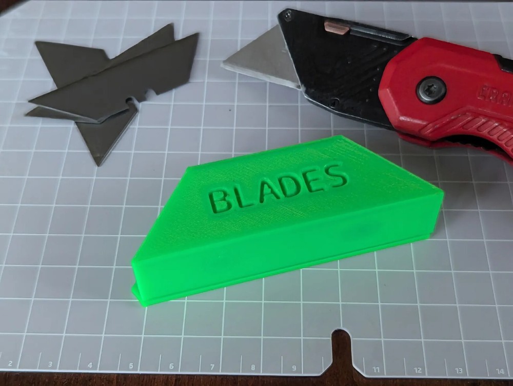 Keep your extra utility knife blades safely stored with this compact and secure razor blade container! Designed for easy access and organization, the lid features snap-lock bumps that securely hold it in place, preventing accidental openings. Ideal for workshops, toolboxes, or DIY enthusiasts, this container helps keep your blades organized and protected. Small, lightweight, and easy to carry, it’s a must-have for anyone using utility knives regularly. Made from durable PLA plastic for long-lasting use. Designer: @Andy_2841070 Get yours today for safe and convenient blade storage! Follow our shop for more smart tool accessories.