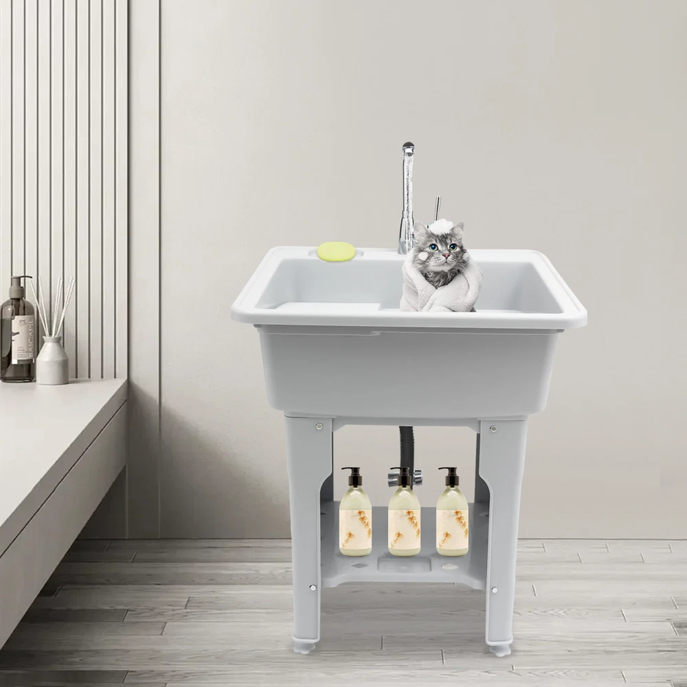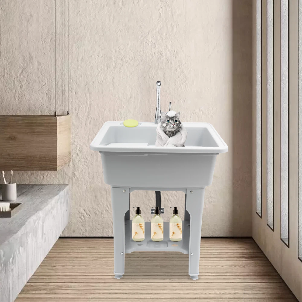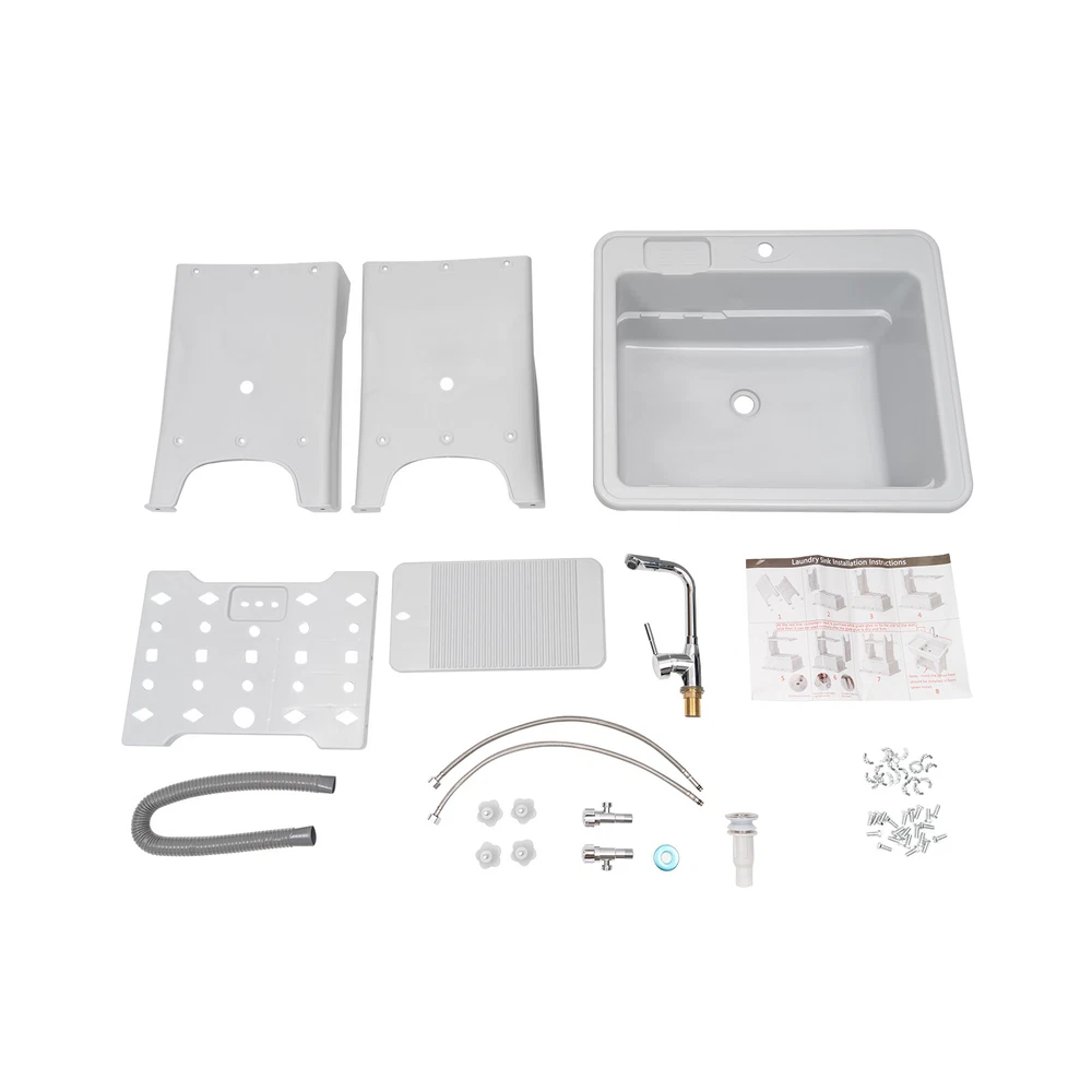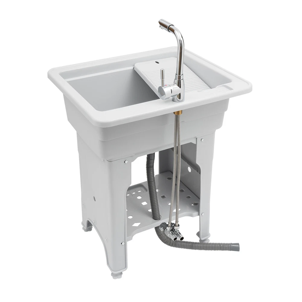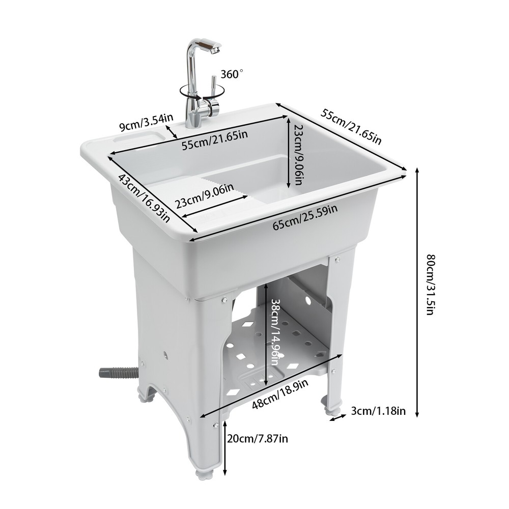 Welcome to alwaytty01~ Welcom to alwaytty01~ Laundry Sink, Spacious Utility Sink, Utility Sink with Storage Shelf, Slop Sink Wash Station Description This multifunctional laundry sink is made of high-quality PP material with strong load-bearing capacity and good stability. Hole-free installation and hand-screwed mounting parts make installation easier. A complete range of accessories is available to meet your washing needs, while the classic gray look and clean lines fit any home decor style, adding a simple and elegant tone to your bathroom. Key Features ??Build to Last: The laundry sink is mainly made of PP, with high hardness, weather resistance , wear resistance and impact resistance , so it can be adopted in some humid environments such as toilets and bathrooms. ?? Multi-functional Use: It is not only a large laundry sink( 21.65*16.93*9.06 in ch) but also a storage rack for washing products and a pet bath for grooming and bathing small and medium-sized dogs at home. ?? Ergonomic Design: The ergonomic total height of 31.5 inches allows you to stand and wash clothes without bending down, reducing the pressure on the lumbar spine. ?? Big Load Capacity: With its high-quality material, rectangular structure, stiffener, and base fixed feet, it can bear up to 441 lbs of weight, showing its strong stability. ?? Nice Partner: The faucet with 2 hoses controls hot and cold water, and the 360° swivel feature allows it to cover every corner of the sink for easy cleaning. Meanwhile, the removable washboard can be used with the faucet for washing clothes. ?? Fancy Decoration: The classic grey appearance and simple lines can adapt to any home decor style and add a simple pure color to your space. ?? Simple Installation: Without drilling holes when installing, you just need to follow the detailed English installation instruction to tighten the screws to complete the installation, which greatly saves time! ?? Easy to Clean: With its smooth surface, detachable faucet nozzle, simple construction, and convenient faucet, you can easily clean it even if you leave it outdoors and it accumulate s dust . ?? Customer Service: We aim to provide quality products and services. If you have problems, please feel free to contact us. We will reply and solve the problem for you as soon as possible. Details Soap Slot: The soap slot above the laundry chute has a non-slip pattern on the inside to effectively hold soap in place. The lower shelf's soap slot is hollowed out to filter residual moisture. Hollow Shelf: The lower shelf can be used for laundry detergent or liquid laundry, and its hollowed design can quickly filter resid ual moisture from wash items, making it less likely to harbor bacteria . Water-retaining Edge: The water-retaining edge prevents internal water splashing, thus keeping the laundry room dry and tidy. Application It is applicable to laundry, bathrooms, sundry rooms, garages, basements, balconies, courtyards, gardens, etc. It can be used as a cleaning tank, pet bath, or storage rack. Specification Material: PP, Alloy, and Stainless Steel Color: Gray Assembly Required: Yes Faucet Opening: Single Hole Mounting Type: Freestanding Style: ‎Modern Shape: ‎Rectangular Product Care Instructions: Wipe with a Damp Cloth Water Leakage Device: Flip Type Maximum Bearing Capacity: 200kg/441 lbs Gross Weight: 9.4kg/20.72lbs Width of Washboard: 23cm/9.06in Soap Slot Width: 9cm/3.54in Internal Size: 55*43*23cm/21.65*16.93*9.06in Shelf (L * H): 48 *38cm/18.9 * 14.96in Foot Height: 20cm/7.87in Adjustable Raised Foot Height: 3cm/1.81in Inlet Pipe: 60cm/23.62in Outlet Pipe: 80cm/31.5in Interface Size of Water Inlet Pipe: 1/2 in Product Size: 65*55*80cm/ 25.6* 21.65 *31.5in Package Size: 65*58*29cm/ 25.6*22.83*11.42in Package Included 1 * Laundry Sink 1 * English Instruction 1 * Washboard All Accessories for Installation Notes Please allow the slight color difference caused by the shooting light and the 1-3 cm error due to manual measurement, and make sure you do not mind before ordering. Welcom to alwaytty01~ Payment Delivery details Terms of sales About us Contact us Payment We accept ebay payment 。 Fees such as import duties, taxes are not included in the item price or shipping costs. These charges are the buyer's responsibility. Delivery details Shipping: 2-9 working days to: USA Terms of sales We maintain high standards of excellence and strive for hundred percent customer satisfaction. Feedback is very important to us. We hope that you contact us immediately before you give neutral or negative feedback, so that we can address your concerns. It is impossible to address issues if we do not know about them! About us Your satis faction is our ultimate goal. We work hard to earn your trust and future business. Our certified technicians have tested each item before shipping. The unit comes with 1 year limited warranty on all manufacturing defects. a) If you receive a defective item, you may return it or ask for a discount. Please contact us within 14 days after you receive the package. b) What you returned must be intact and in its original packaging as re? u. Customer is responsible for shipping costs of the returned item. c) We will cover the cost of shipping back t with the shipping rate indicated in the registration page. We will send you a new unit or refund the full payment you paid. Thank you. Contact us Business Hour Business Hour: Monday To Friday: 8:30 AM to 5:00 PM (Beijing China time) Due to time zones, our reply to your questions may not be immediately. But within above working time, we will reply your email within 24 hours. If it's non-workdays, please kindly be patient and wait till Monday. Please contact us with ebay message. Please feel free to contact us if you have any questions. Monday To Friday: 8:30 AM to 5:00 PM (Beijing China time) Due to time zones, our reply to your questions may not be immediately. But within above working time, we will reply your email within 24 hours. If it's non-work