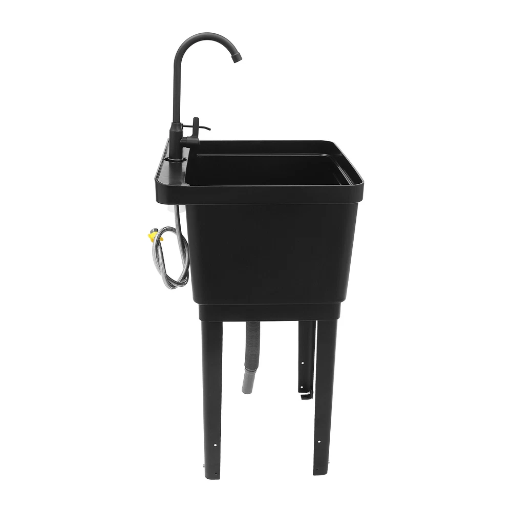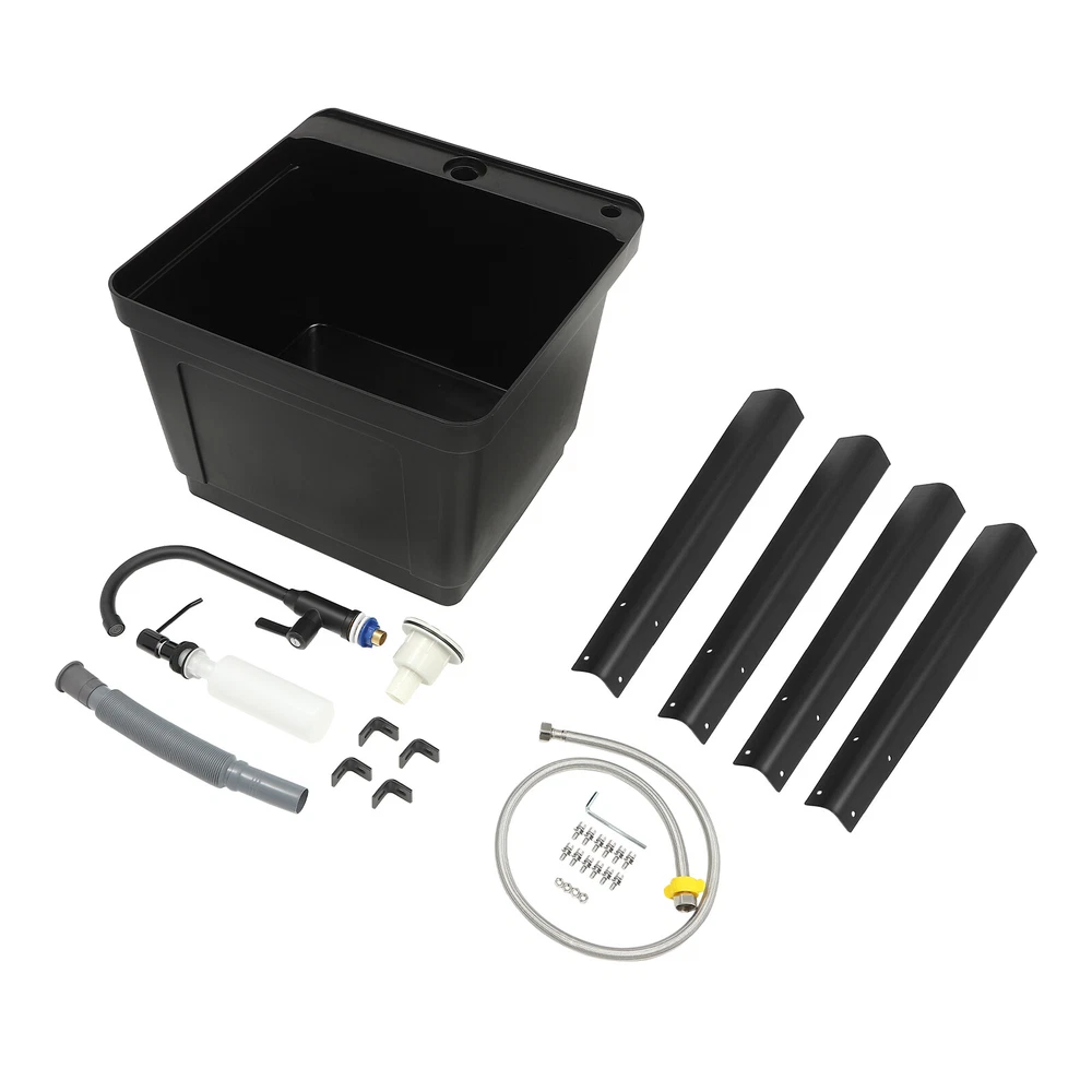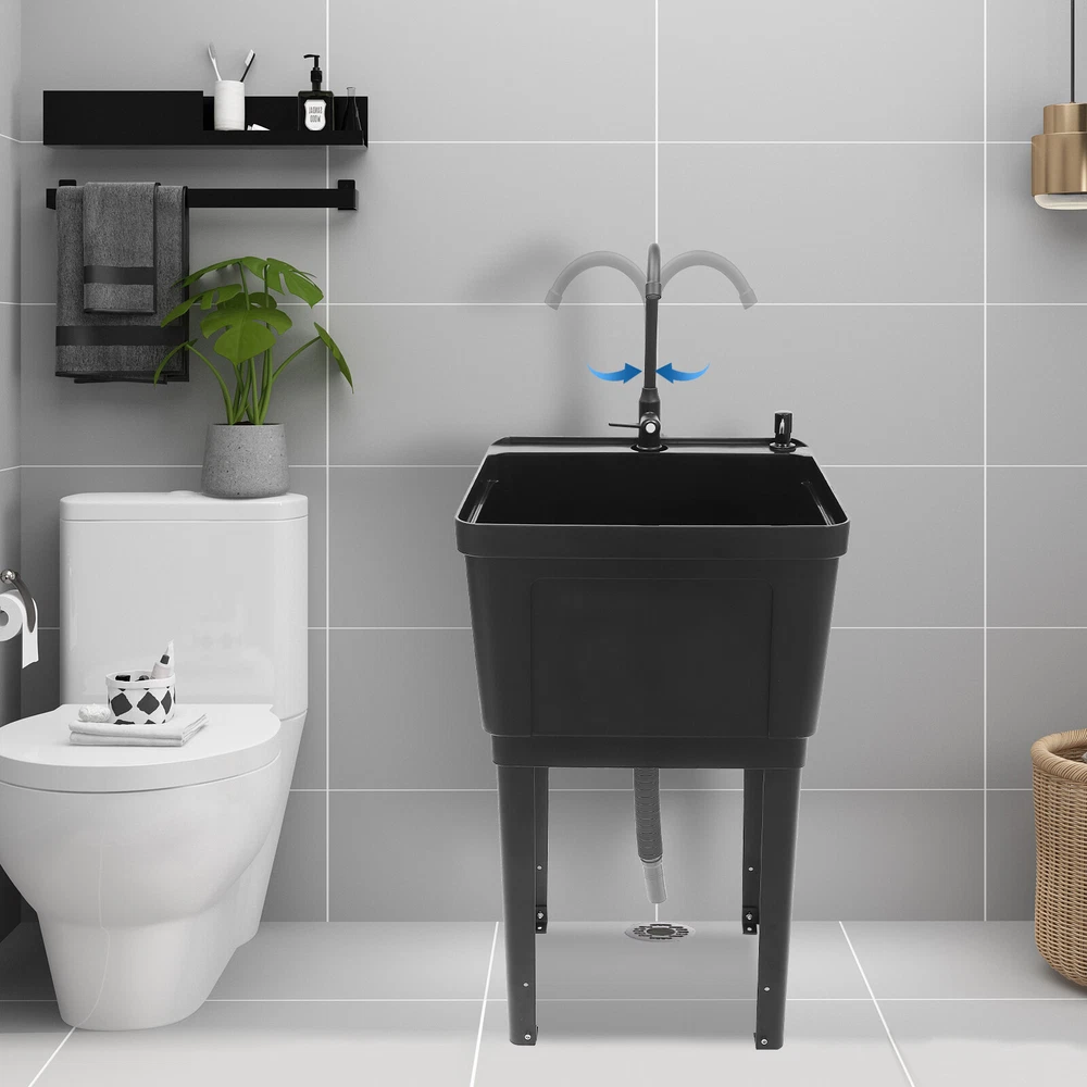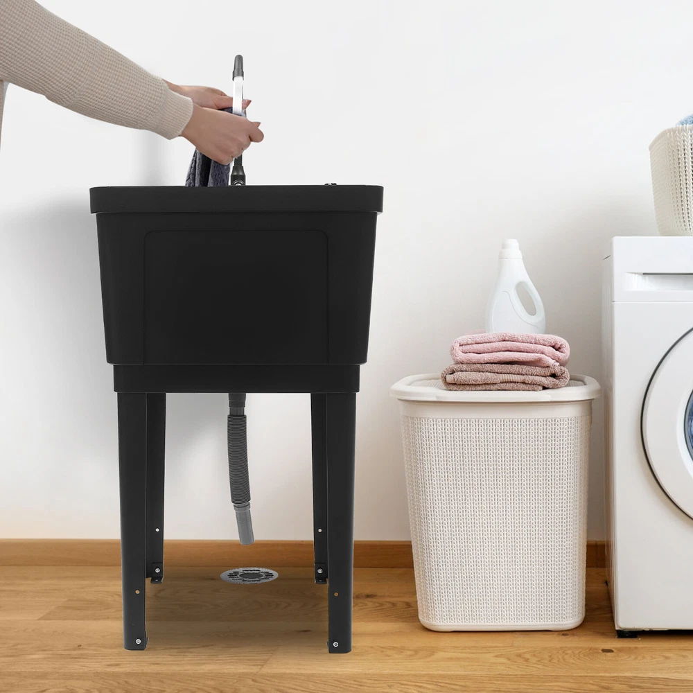 Utility Sink Laundry Tub Wash Bowl Basin Laundry Sink With Faucet Washboard USA Description With the 360° rotatable faucet and high-quality material, this free-standing laundry sink is a good cleaning assistant. Its enlarged and deepened sink not only alleviates the splash of water but also increases the use of space. At the same time, the simple structure and complete accessories allow you to quickly install it. The modern appearance and thoughtful designs make this item an ideal choice for minimalist kitchens, laundry rooms, bathrooms, and so on. Key Features Build to Last: The premium zinc alloy, PP, iron, and the professional electroplating process make this product wear-resistant, corrosion-resistant, sturdy, and less prone to rusting, so it can withstand the test of time well. Strong Stability: The four sturdy iron support legs with the right angular design, rectangular structure, and strong screws fixation make the product stable, so you can use it to clean your clothes or pets confidently, without worrying about collapse. Large Cleaning Space: The large inner size of the sink(19.3*16*11.81 inches) allows you to clean large amounts of clothes and wash pet cats and dogs inside. Details Ample Bottom Space: You can put large bottles of laundry detergent, small baskets, washbasins, and other items in the bottom space to make smart use of space. Soap Dispenser: You only need to gently press it to use the soap solution with one hand, which is very time-saving, labor-saving, and convenient for you to shower your pets. Practical Faucet : This 360° rotatable high faucet with a comfortable handle allows you to easily adjust the water flow, achieve dead-end cleaning , and provide you with enough washing space and flexibility. Application It is suitable for cleaning clothes, pets, pots and pans, fruits, vegetables, meat, etc. in restaurants, laundries, stores, utility rooms, laboratories, canteens, cafes, gardens, warehouses, bars, dessert shops, garages, and other commercial places. Specifications Color: Black Material: PP, Iron, Zinc Alloy, Plastic Style: Modern Shape: Rectangular Process: Electroplating Assembly Required : Yes Mounting Type: Freestanding Faucet Opening: Single Hole Base Type: Legs Number Of Pieces: 1 Number of Sinks: 1 Number of Handles: 1 Faucet Adjustable Angle: 360° Water Inlet Pipe: 100cm/39.37in Max. Drain Pipe Length: 80cm/31.5in Sink Inner Size: 49*40.5*30cm/19.3*16*11.81in Overall Product Size(Not Included Faucet): 50*48*84cm/19.68*19*33.07in Package Size: 61*59*37cm/24*23.23*14.57in Gross Weight: 9kg/19.84 lbs Package Included 1 * Free Standing Laundry Sink 1* Faucet 1* Soap Dispenser 1* Water Inlet Pipe 1* Drain Pipe 1* Allen Key All Accessories for Assembly Notes Please allow the slight color difference caused by the shooting light and 1-3cm error due to manual measurement, and make sure you do not mind before you order. Welcome to autumnzhang002~ 💛 If you have any question , please contact us , and we will reply you as soon as possible. Welcome to autumnzhang002~ 💛 If you have any question , please contact us , and we will reply you as soon as possible. Payment Delivery details Terms of sales About us Contact us Payment We accept ebay payment 。 Fees such as import duties, taxes are not included in the item price or shipping costs. These charges are the buyer's responsibility. Delivery details Shipping: 2-9 working days to: USA Terms of sales We maintain high standards of excellence and strive for hundred percent customer satisfaction. Feedback is very important to us. We hope that you contact us immediately before you give neutral or negative feedback, so that we can address your concerns. It is impossible to address issues if we do not know about them! About us Your satis faction is our ultimate goal. We work hard to earn your trust and future business. Our certified technicians have tested each item before shipping. The unit comes with 1 year limited warranty on all manufacturing defects. a) If you receive a defective item, you may return it or ask for a discount. Please contact us within 14 days after you receive the package. b) What you returned must be intact and in its original packaging as re? u. Customer is responsible for shipping costs of the returned item. c) We will cover the cost of shipping back t with the shipping rate indicated in the registration page. We will send you a new unit or refund the full payment you paid. Thank you. Contact us Business Hour Business Hour: Monday To Friday: 8:30 AM to 5:00 PM (Beijing China time) Due to time zones, our reply to your questions may not be immediately. But within above working time, we will reply your email within 24 hours. If it's non-workdays, please kindly be patient and wait till Monday. Please contact us with ebay message. Please feel free to contact us if you have any questions. Monday To Friday: 8:30 AM to 5:00 PM (Beijing China time) Due to time zones, our reply to your questions may not be immediately. But within above working time, we will reply your email within 24 hours. If it's non-workdays, please kindly be patient and wait till Monday. Please contact us with ebay message. Please feel free to contact us if you have any questions.