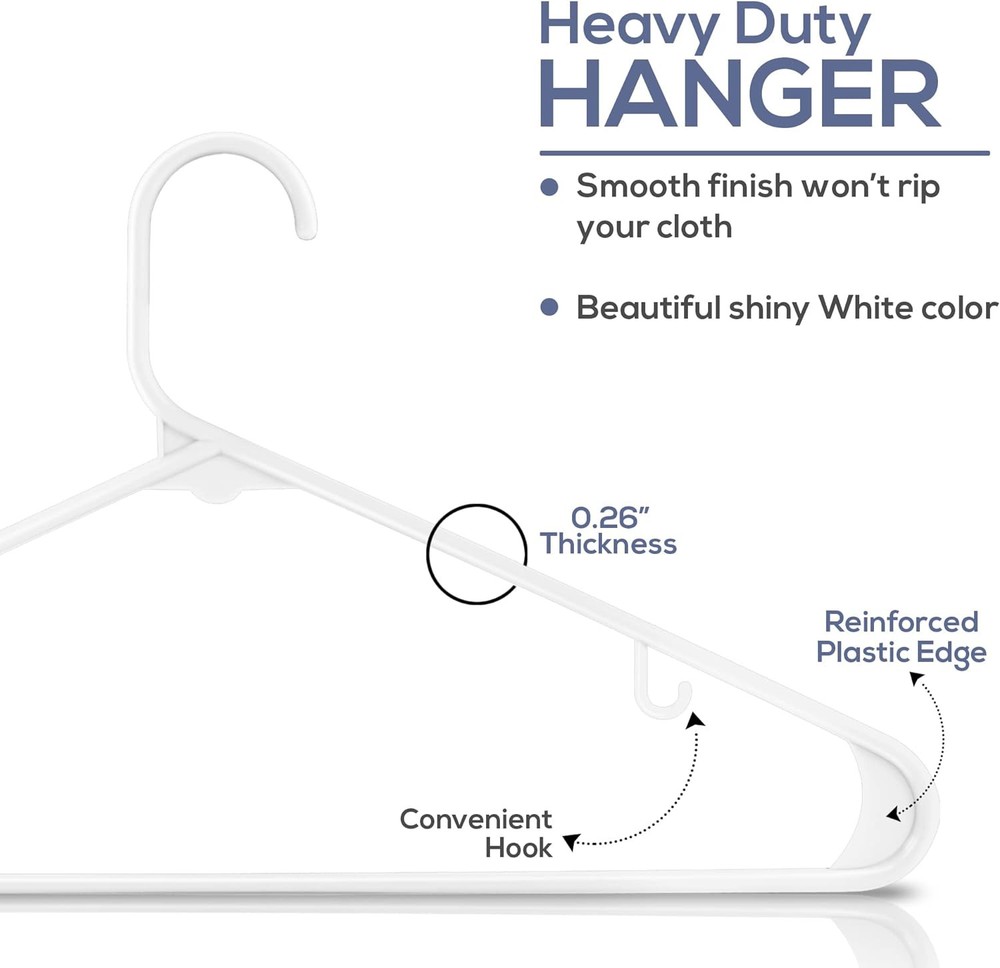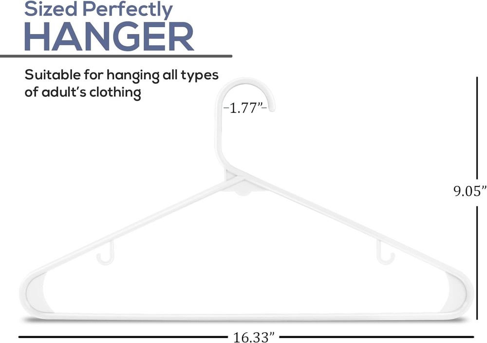 Utopia Home Plastic Hangers 50 Pack - Clothes Hanger with of 50, White Description Features: Plastic Hangers Pack - Pack of plastic hangers with each hanger measuring 16.33 x 0.26 x 9.05 Inches. Durable Coat Hangers - Made of strong and durable plastic that will last for long. Slim & Sleek Clothes Hangers - Slim and sleek design assists in maximizing closet space to hang a good number of clothes at a time while giving a neat and tidy look to it. Built-In Hooks - Each Clothes hanger has two hooks to keep your tops & clothing accessories handy Maximum Usefulness - Great for hanging shirts, t-shirts, blouses, Skirts, Coats and more. Perfect Skirt Hangers. Product Details: Color: White Brand: Utopia Home Material: Plastic Product Dimensions: 16.33"W x 9.05"H Special Feature: Clothes Hanger, Plastic Hangers, Durable, Heavy Duty, Space Saving Hangers Recommended Uses For Product: Clothing Number of Pieces: 50 Number of Items: 50 Shape: Rectangular Finish Type: Plastic Size: Pack of 50 Maximum Weight Recommendation: 1E+1 Pounds Item Thickness: 0.26 Inches Manufacturer: Utopia Home UPC: 810013787436 Item Weight: 4.11 pounds Country of Origin: Pakistan Item model number: UH0529 Is Discontinued By Manufacturer: No Handling We will ship all orders within 3 business day of payment. Delivery We take pride in offering fast and reliable delivery for your orders! We are committed to getting your products to you as quickly as possible. Generally, we would like to inform you that all orders will be delivered to you within 1-3 business days after processing.However, in some cases, delivery times may vary depending on the buyer's location. Especially in remote or rural areas, the expected delivery time may be extended. In such situations, we do our best to ensure that your order reaches you as quickly as possible.If there are any delays, we will be happy to contact you to explain the situation. Our goal is to enhance your satisfaction with our fast delivery times. We work diligently to ensure that your order arrives safely.Trust us and enjoy our speedy delivery! Return Policy All items qualify for returns within 30 days of receipt. Buyer is responsible for return shipping on any item that is not damaged. Feedback We take our reputation seriously, we buy and sell online, so we understand the value of trust. If you are unsatisfied with your order, please contact us and we will work with you to resolve it to your satisfaction.