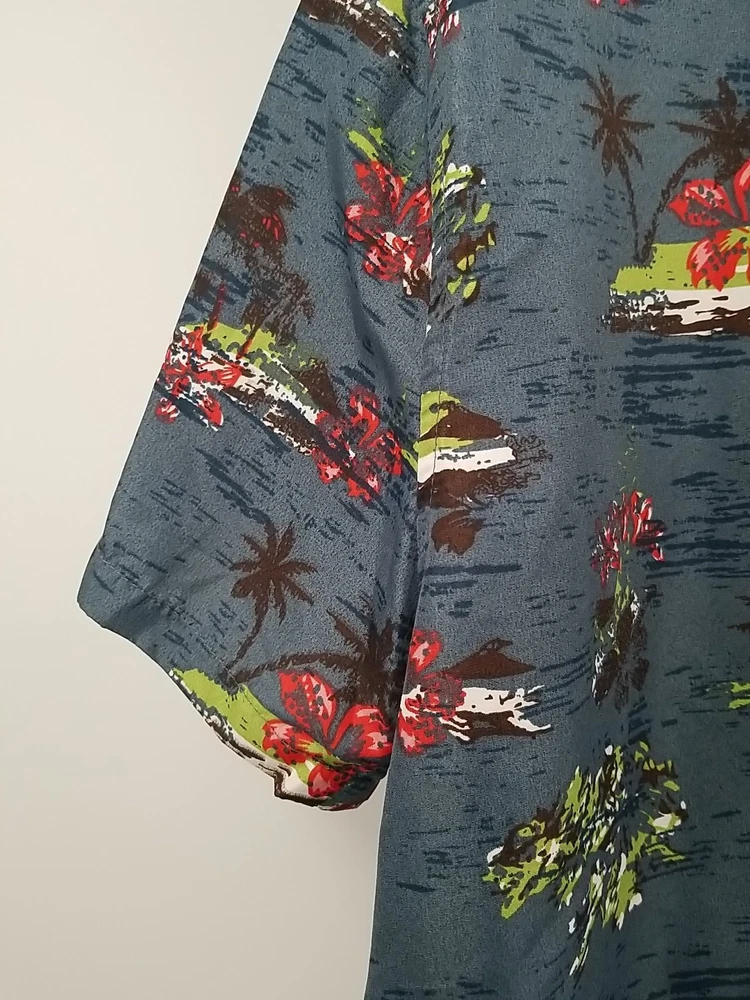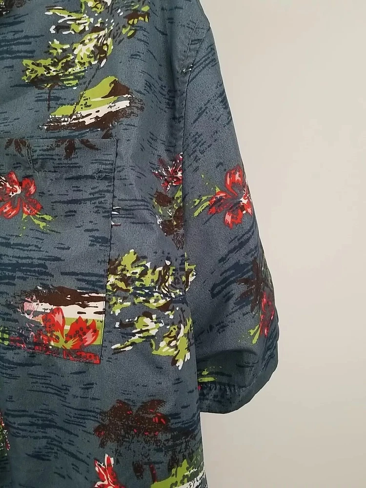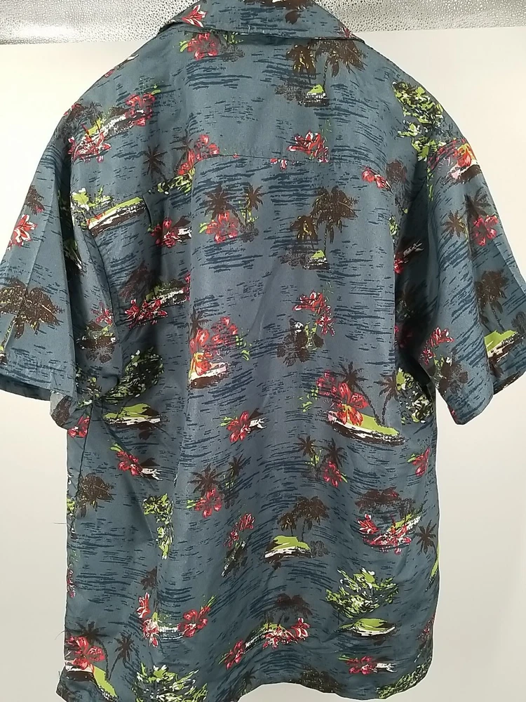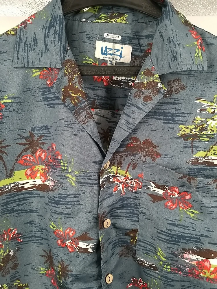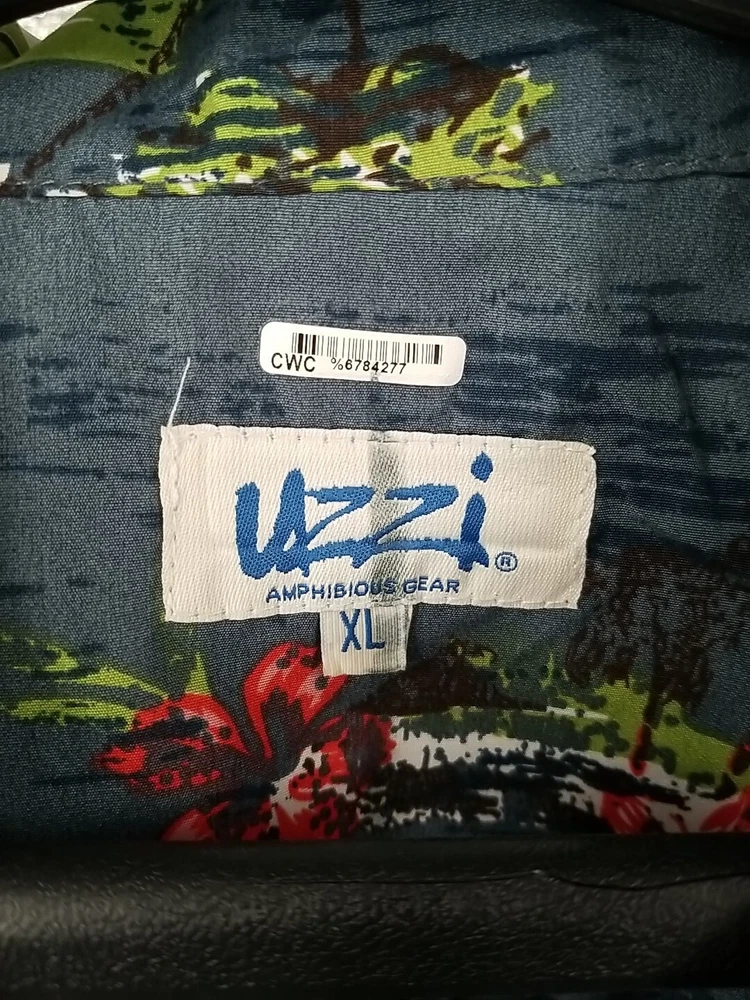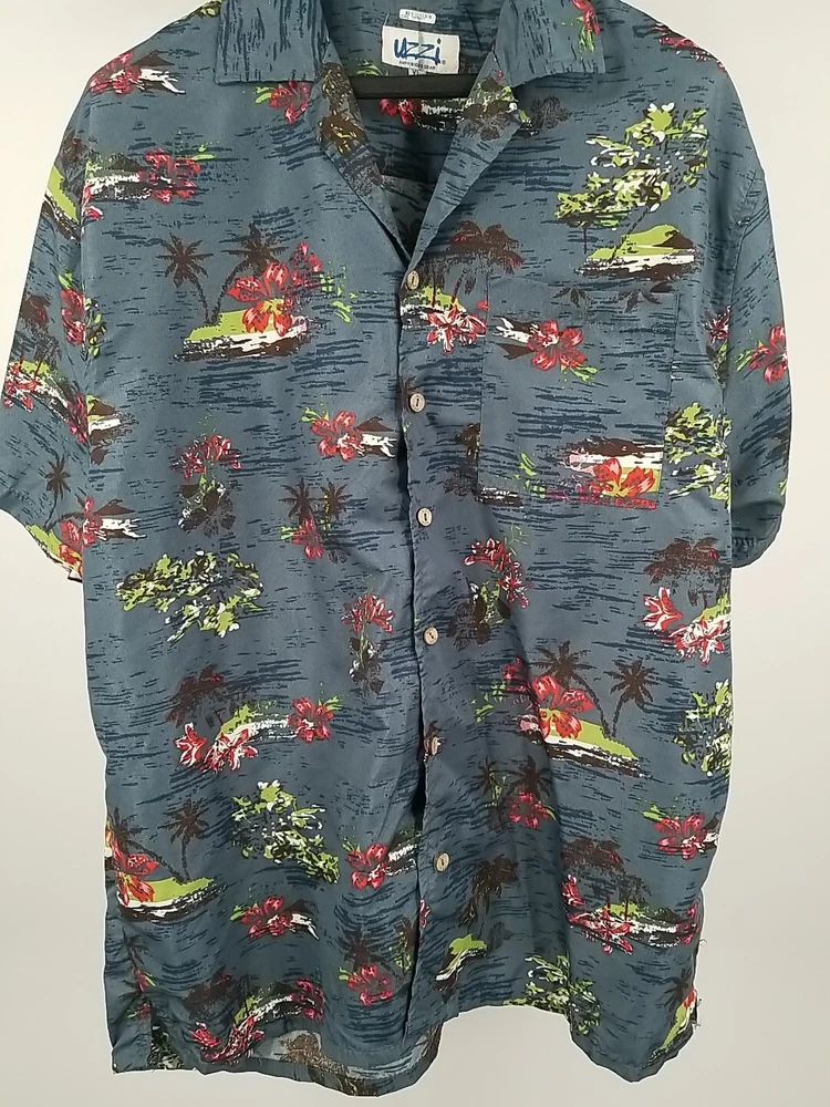 This Uzzi Amphibious Gear Hawaiian shirt is a versatile addition to your wardrobe. It features a collared neckline with a spread collar style and a button-up closure. The shirt is made of lightweight, wrinkle-free performance fabric that provides easy care and UV protection. It also has moisture-wicking properties to keep you dry and comfortable in any season. The shirt comes in a multicolor tropical pattern and has short sleeves. It has pockets for added convenience. This regular fit shirt is made of polyester and is machine washable. It is perfect for casual occasions with its Hawaiian and Aloha themes. In preowned condition,see pics for details. May have washable mark on and/or by tag. Measurements are approximate. Top to bottom 32 inches Pit to pit 24 inches