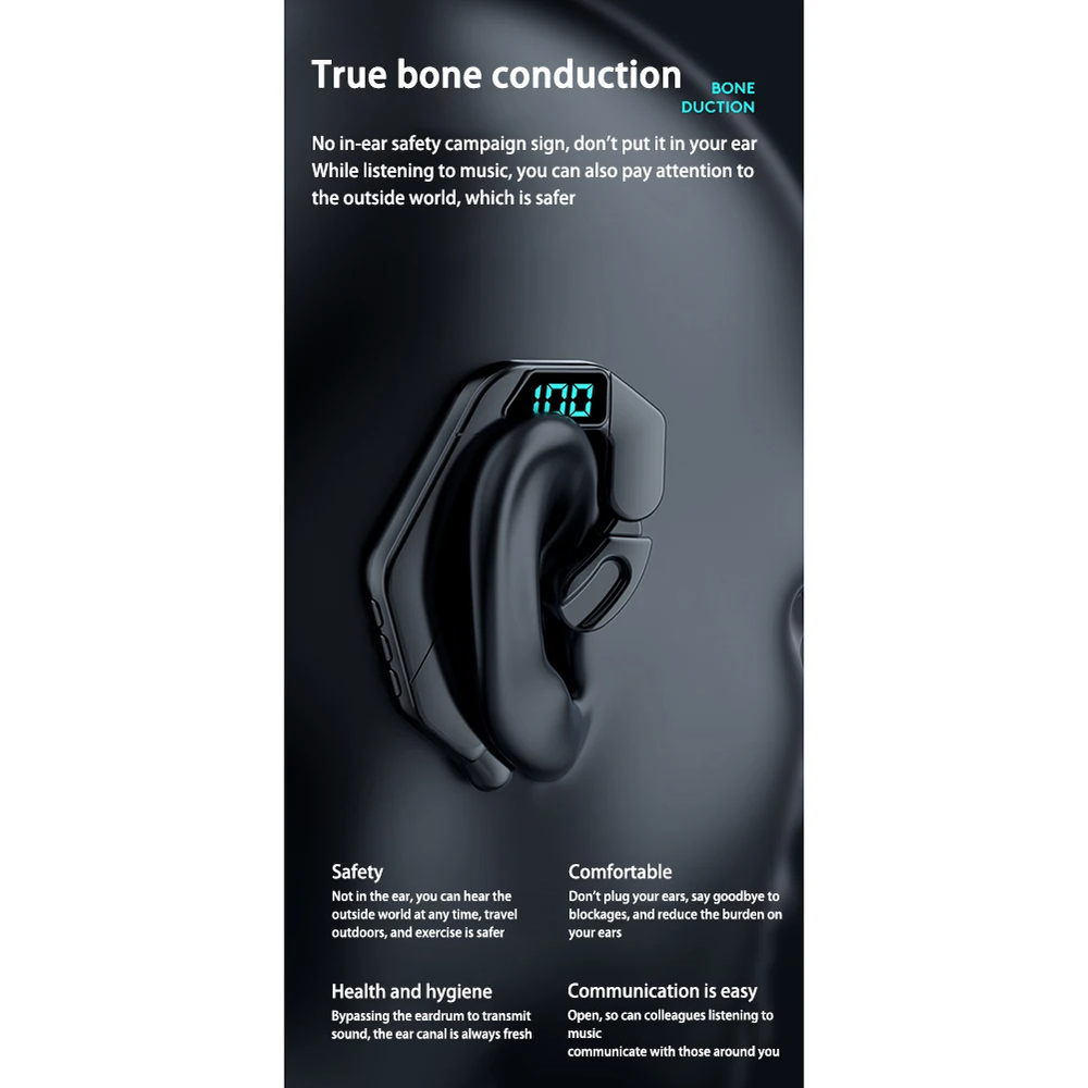 Description: Name: V19 Bluetooth-compatible headset; Bluetooth-compatible version: V5.2; Speaker: open speaker; Battery: 300MAH; Battery life: about 12 hours; Charging time: 2 hours; Bluetooth-compatible distance: about 15 meters; Duration of listening to songs: 48H; Standby time: 68H; Full time: 1H; Supported functions: music playback, pause. Answer the call, reject it. battery display, automatic reconnection, calling siri voice assistant, etc., caller number. Packing list: Headphones x 1 Data cable x 1 Instructions x 1 Paper box x 1 Note: Due to manual measurement, please allow 1-3 cm error, thank you Due to screen and other objective reasons, there may be a certain color difference, please understand.