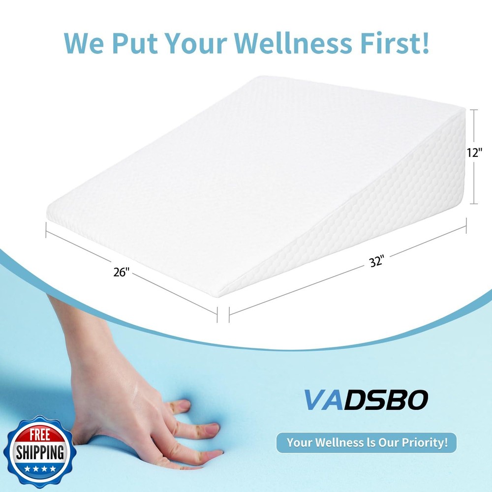 VADSBO Wedge Pillow, Bed Wedge Pillows for Sleeping, Snoring, Back Support, After Surgery, Foam Triangle Pillow, Removable Washable Cover (White, 12in) Features PREMIUM MATERIAL: Our wedge pillow is made from a solid 30D high-density foam that offers durable support and quick rebound. The foam adapts to your body’s contours, providing tailored comfort and relaxation. Its resilient structure ensures long-lasting use 15° ERGONOMIC DESIGN: The bed wedge pillow features a scientifically designed 15° incline, providing 5-inch height support. This triangle wedge pillow ensures maximum comfort and proper alignment for reading, sleeping, leg support, and knee support MACHINE WASHABLE PILLOWCASE: Our triangle bed wedge pillow comes with a premium air-layered fabric pillowcase that’s both soft and breathable, offering comfort and easy maintenance. The U-shaped opening design ensures effortless cleaning. Note: The foam inside is NOT machine washable MANY PURPOSES: This versatile pillow offers gentle support for a restful sleep and can be used in multiple ways. Whether for reading, watching TV, working, or sleeping, it provides head, back, and knee support. Ideal for relaxing or for pregnant women, it ensures comfort and relaxation throughout the day ABOUT VADSBO: Your satisfaction is our top priority. If you encounter any issues with our product, please contact us first—we’re committed to resolving any concerns quickly and efficiently. Our 24/7 customer service team is here to assist, ensuring a positive experience Shipping Free & Fast Shipping: We offer free shipping to most of the USA with a normal delivery time of 3-7 days. However, due to the current situation, additional delivery time (up to 3 weeks) may be required for some items. Alternative Carriers: We may use alternative carriers (e.g., USPS, FedEx, UPS) to ensure your package arrives safely and on time. Due to the use of multiple carriers, we are unable to provide a tracking number automatically. Handling Time: Orders are processed and shipped within 1-2 business days of receiving cleared payment. Shipping Restrictions: Shipping to Alaska, Hawaii, Puerto Rico, Guam, and other US territories may incur shipping charges or delivery restrictions. Please contact us before ordering, or your order can be refunded/cancelled. State Restrictions: Certain items may not be shipped to California due to state regulations. Contact for Tracking Updates: If you require tracking updates or have any concerns about the delivery of your order, please feel free to contact us, and we will be happy to assist you. Return Policy 30-Day Hassle-Free Returns: If you are not completely satisfied with your purchase, you can return the item for free within 30 days of receiving it for a full refund or exchange. Easy Return Process: Contact us, and we will provide you with a prepaid return shipping label and detailed instructions. No Restocking Fee: There are no restocking fees for returns. However, the buyer is responsible for return shipping costs if the return is not due to a seller"s error. Refund Processing: Refunds will be processed within 1 business day of receiving the returned item in its original condition. Feedback Your feedback is extremely important to us. We strive to provide the best products and customer service possible. If you are satisfied with your purchase, please take a moment to leave us a positive review. If you have any concerns or issues with your order, please contact us before leaving negative feedback. We are committed to resolving any problems and ensuring your satisfaction. Contact Us If you have any questions or concerns, please feel free to reach out to our customer support team. You can contact us through the eBay messaging system. We are available Monday to Friday, 9:00 am to 5:00 pm EST, and we will do our best to respond to your inquiry within 24 hours. Thank you for supporting our small family business!