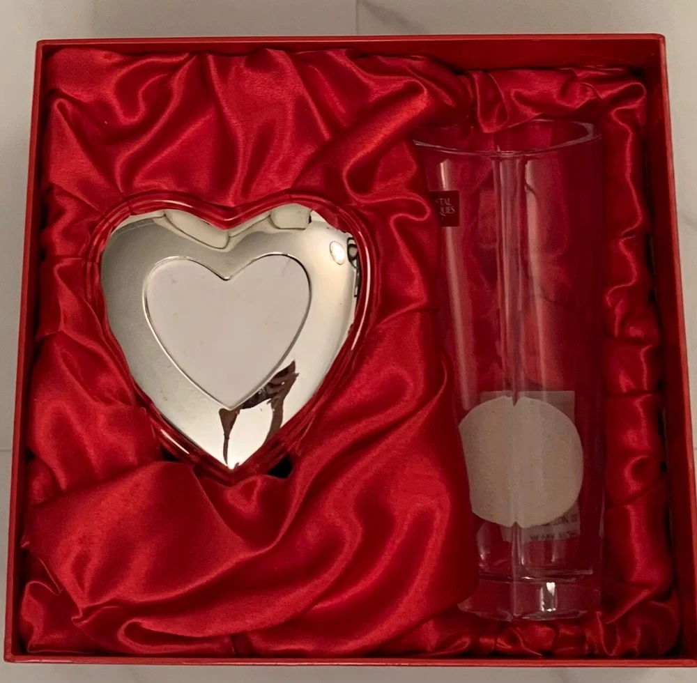 VALENTINES DAY GIFT BASKET/ BOX FOR HER . Christal vase and picture frame are included. Variety PAPYRUS Valentine’s Day Greeting Card listed separately.