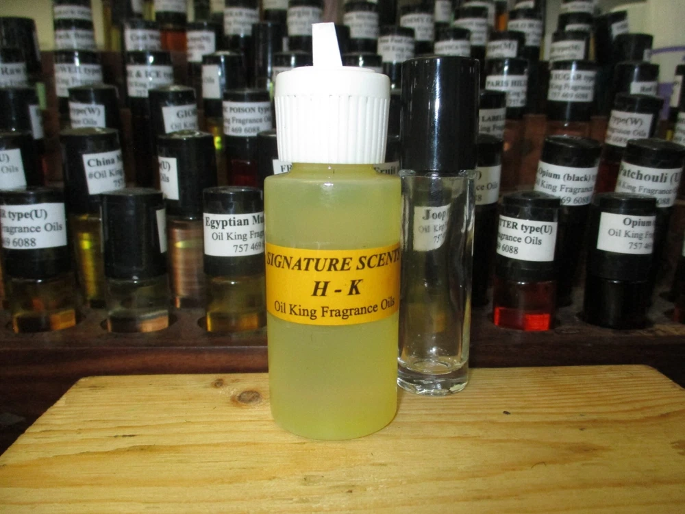 OIL KING FRAGRANCE OILS. Hello Friend. Thank you for your Interest. For Sale: Your Choice of One 1oz. Plastic Spout Bottle of a SIGNATURE SCENT " H " and a 1/3 oz. Roll-on Vial. Pure Superior Quality Fragrance Oil. For Crafts, Burning or Body. Strong Scent that Last Long. SIGNATURE SCENTS . "Top Tier Popular Oil Fragrances." *The Fragrances Types on this List have no Connection to any Trademark or Designer Perfume Manufactures. They are Not Original or Imitations of Designer Perfumes. They are Our Version of Fragrance Oils. Color of Oil May Be Different From Photo.