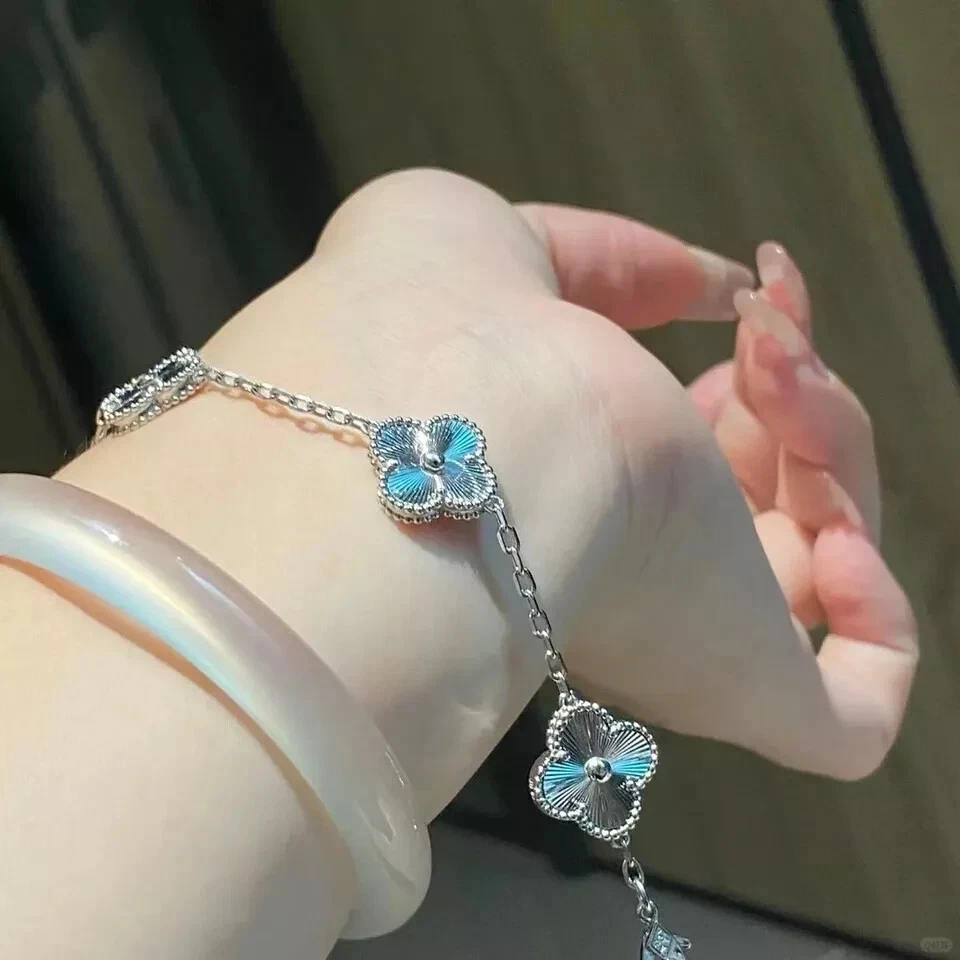 VAN CLEEF & ARPELS 18K White Gold 5 Motifs Guilloche Vintage Alhambra Bracelet