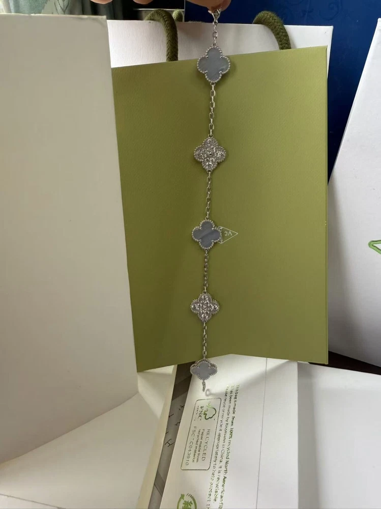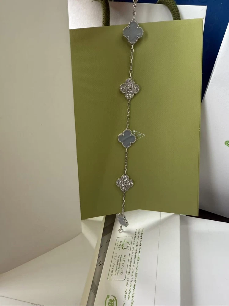 VAN CLEEF & ARPELS 18K White Gold 5 Motifs Guilloche Vintage Alhambra Bracelet