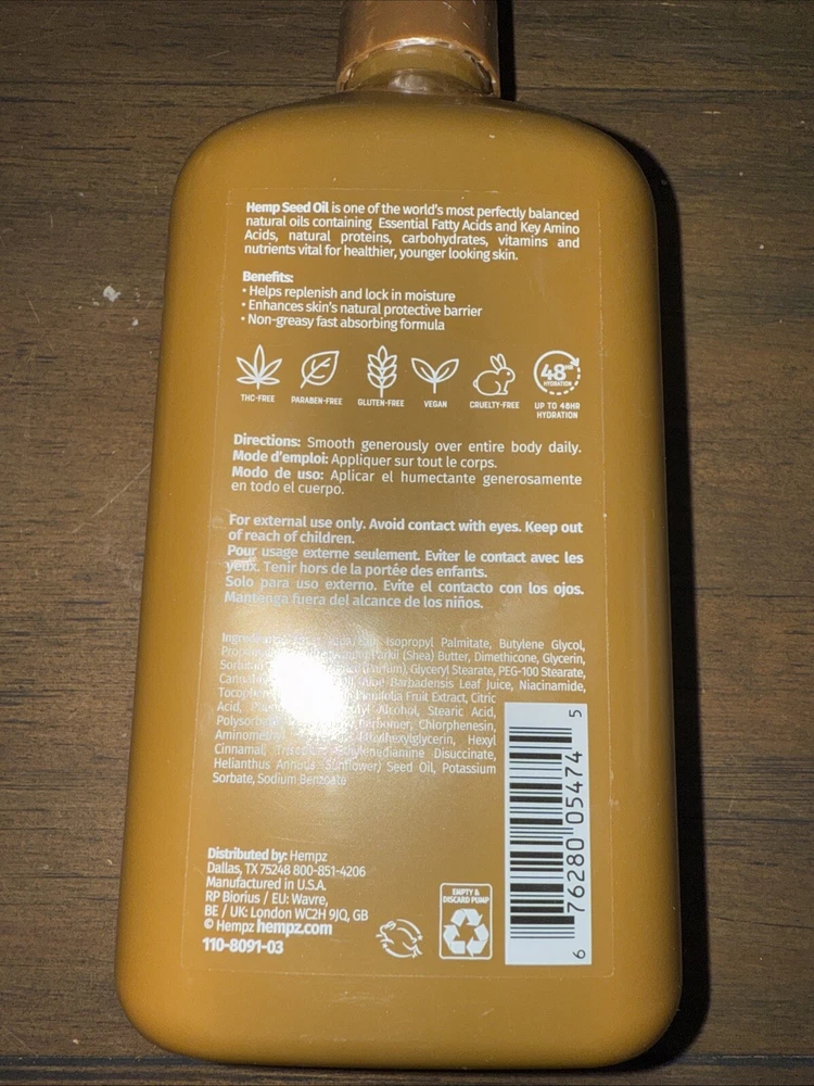 VANILLA LUX HERBAL BODY MOISTURIZER WITH NIACINAMIDE 17OZ HEMPZ-NEW.