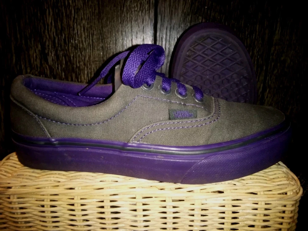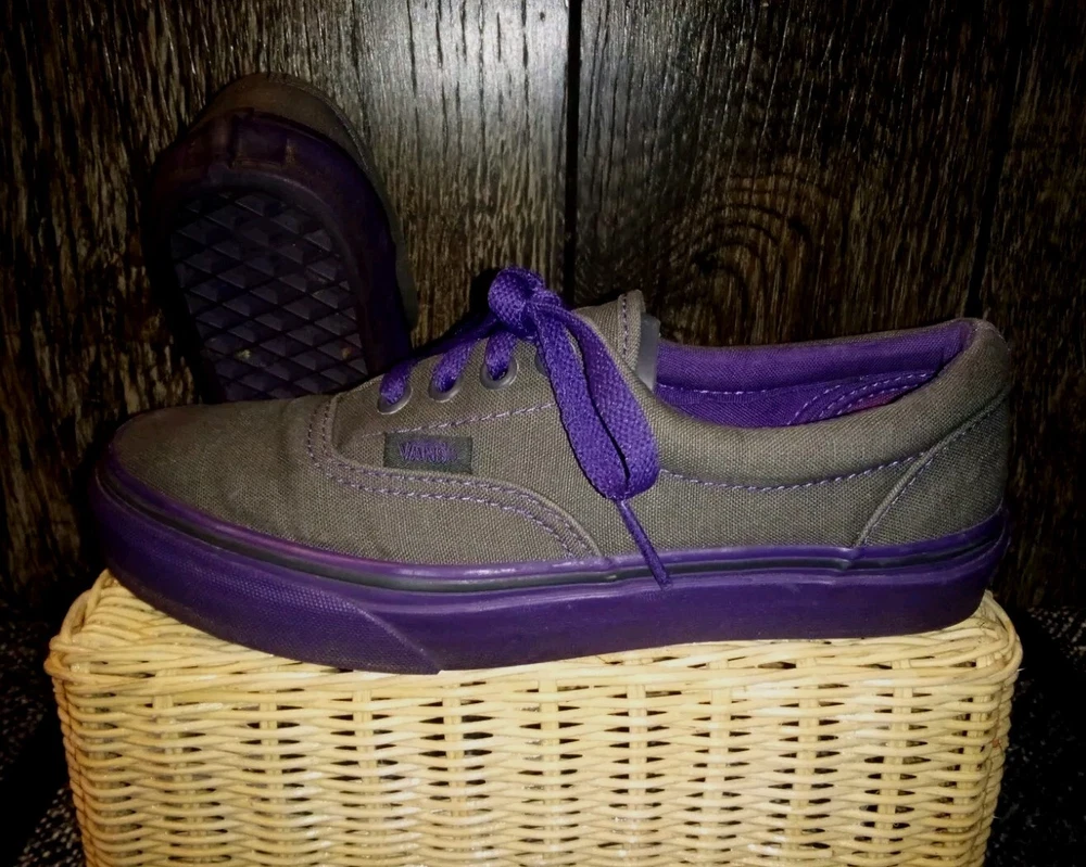 Elevate your shoe game with these stylish VANS Authentic sneakers for women. These shoes feature a sleek gray color with purple accents, including lace-up closure with eyelets and the iconic VANS logo. The canvas upper material provides a comfortable and breathable fit, while the cushioned foam insole and rubber outsole offer superior comfort and traction. These low-top sneakers are perfect for any occasion, whether it's for walking, school, or skateboarding. The VANS Authentic sneakers are a must-have addition to any wardrobe, combining a classic design with a colorful and athleisure theme.