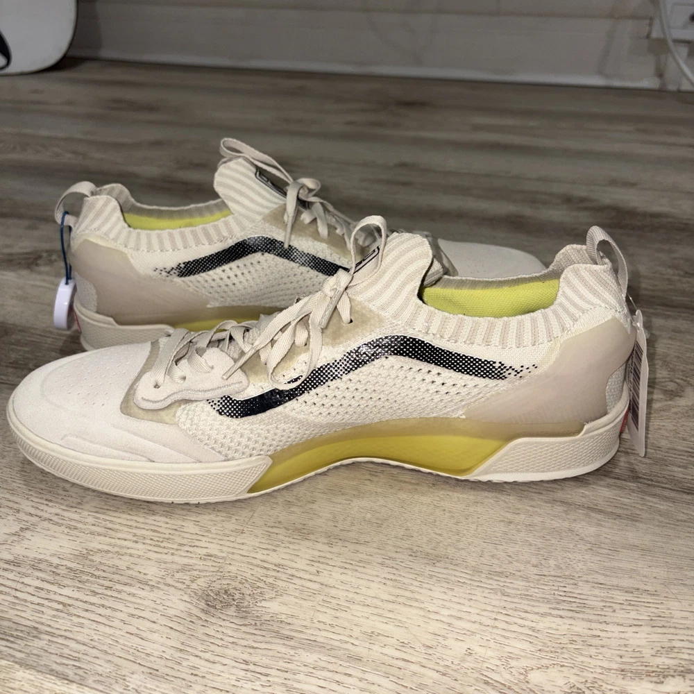 The VANS Ave 2.0 Cream Men’s Size 11.5 sneakers are a stylish and comfortable choice for casual wear. These lace-up shoes feature a cream color with an ivory hue, perfect for a versatile and on-trend look. The rubber outsole provides durability and traction, making them suitable for skateboarding activities. Made with a knit upper material and a low top shoe shaft style, these sneakers are a great addition to your athletic shoe collection. The VANS Ave 2.0 model offers a blend of style and functionality for all-day wear.
